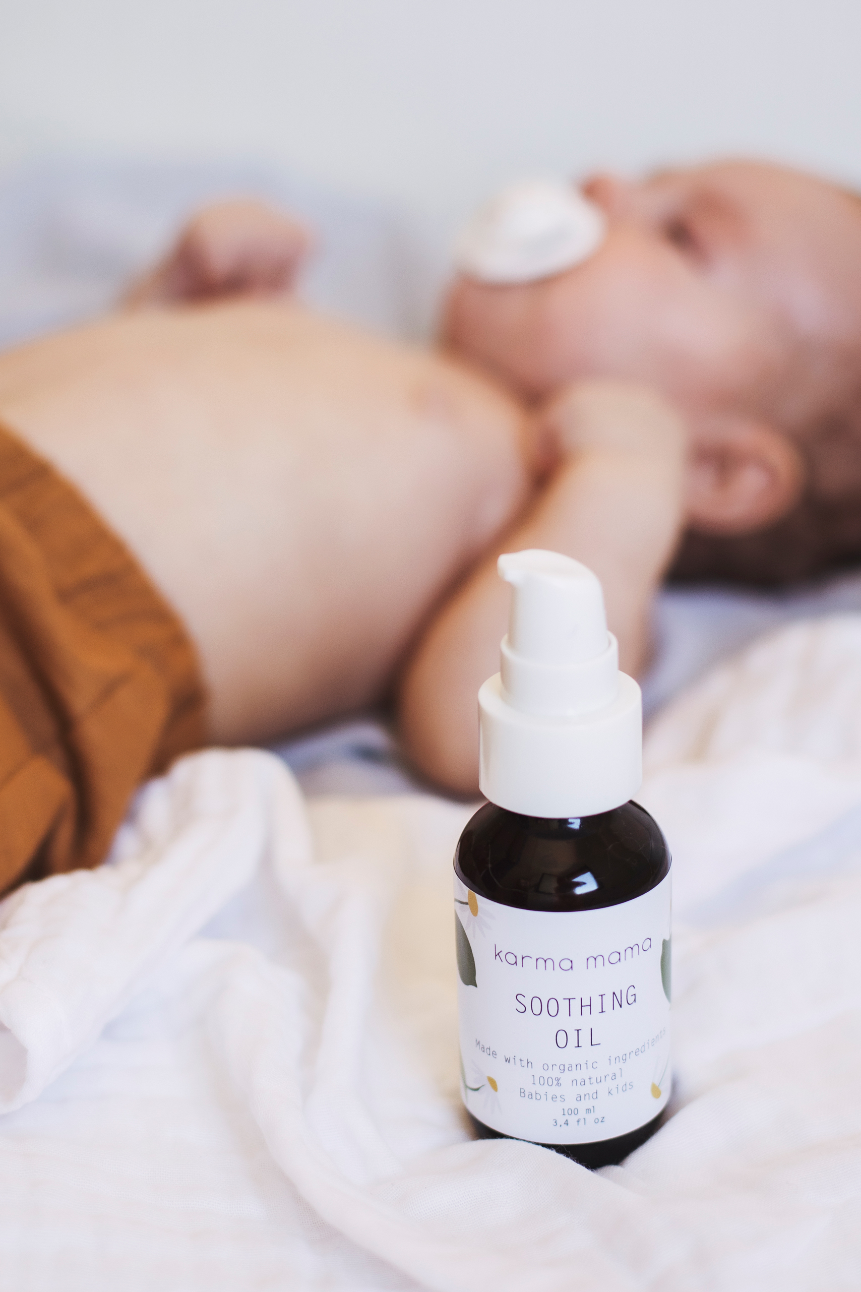 Das Baby & Kinder Beruhigendes Öl wurde speziell aus reinen und wertvollen Bio-Ölen hergestellt um besonders weiche und sensible Babyhaut sanft zu pflegen. Die Mischung aus nativem Kokosnussöl, Jojobaöl und ätherischem Kamillenblütenöl ist reich an natürlichen Antioxidantien und intensiv pflegenden Fettsäuren. Dieses Öl hat antibakterielle, pilzhemmende und entzündungshemmende Eigenschaften und spendet der Haut viel Feuchtigkeit und sorgt für super zarte Babyhaut. Anwendungstipp: Wirkt besonders beruhigend nach dem Bad oder für eine sanfte Massage. Inhalt: 100ml