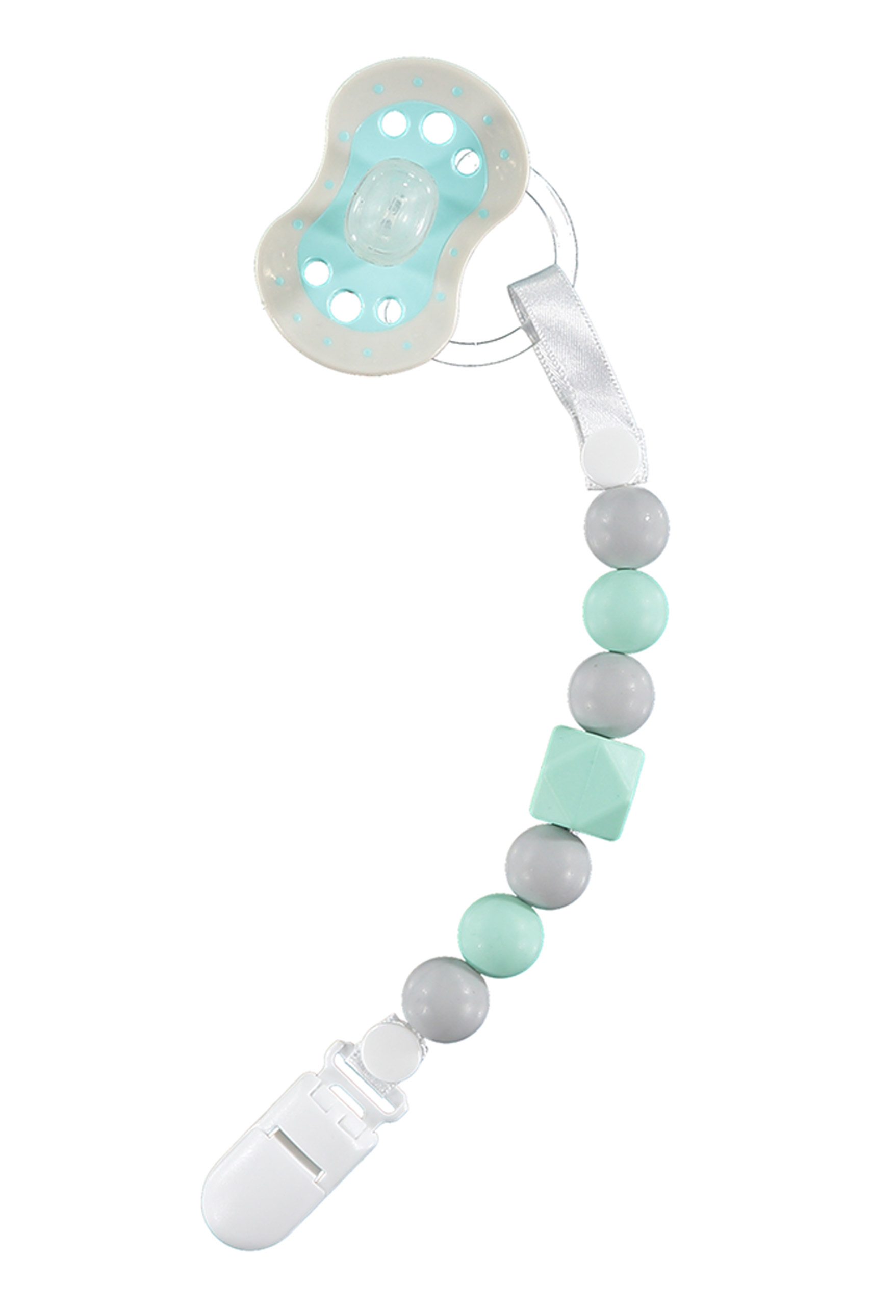 Zahnungs-Schnullerkette mit Silikonperlen mint/grau