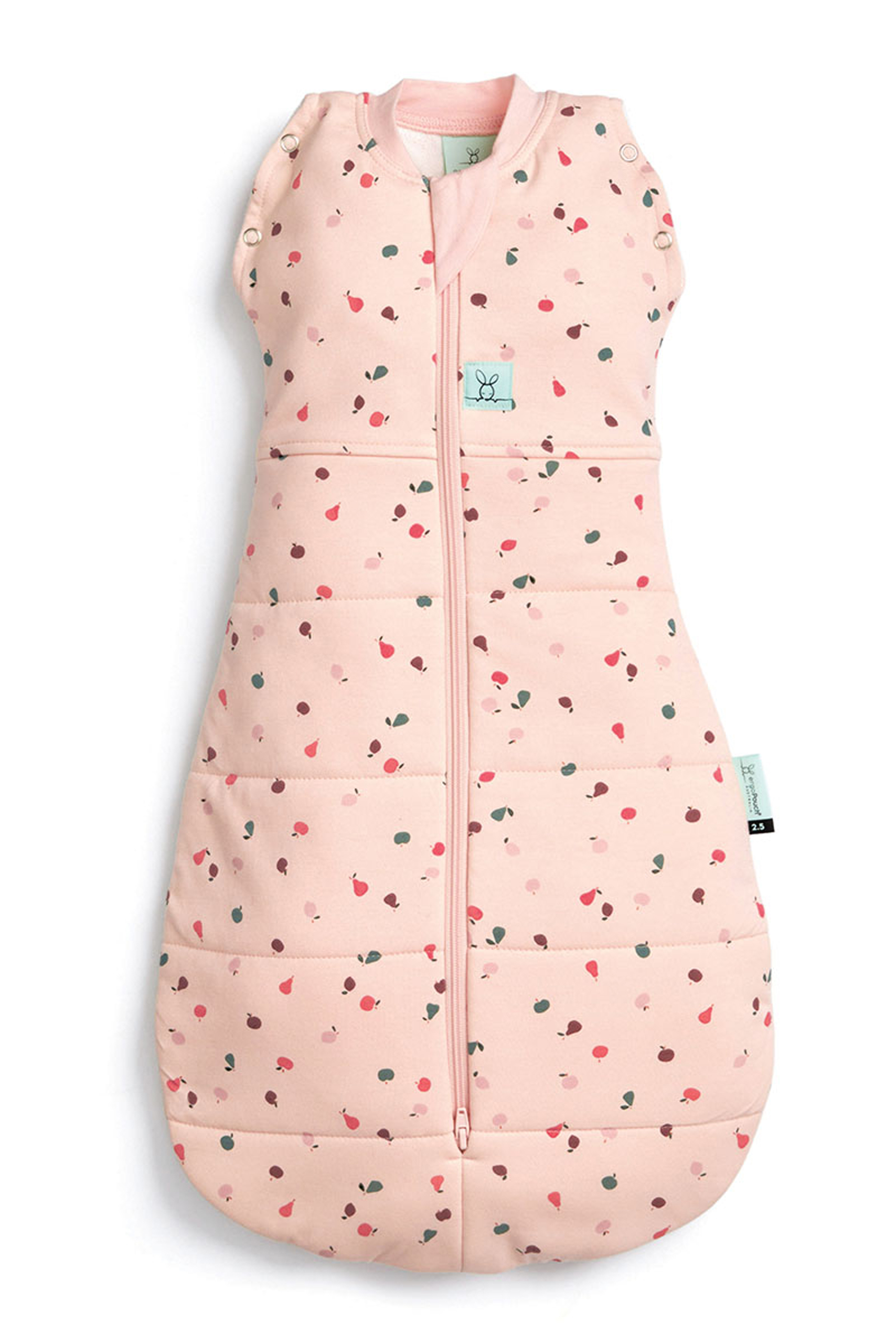 Organic Winter Schlaf- und Pucksack aus 100% hochwertiger Biobaumwolle in 2,5 TOG mit niedlichem Früchte Print. Die wärmende Wattierung und optimale Bewegungsfreiheit machen den Schlafsack zu einem optimalen Begleiter für dein Baby in der kühleren Jahreszeit. Durch die seitlichen Knöpfe an den Ärmeln kann dein Baby mit den Armen im aber auch außerhalb des Pucksacks schlafen. Durch das Pucken fühlt sich das Baby in den ersten Wochen nach der Geburt sehr geborgen und soll dadurch länger und ruhiger schlafen. Frage am besten deine Hebamme nach den Vorteilen des Puckens.