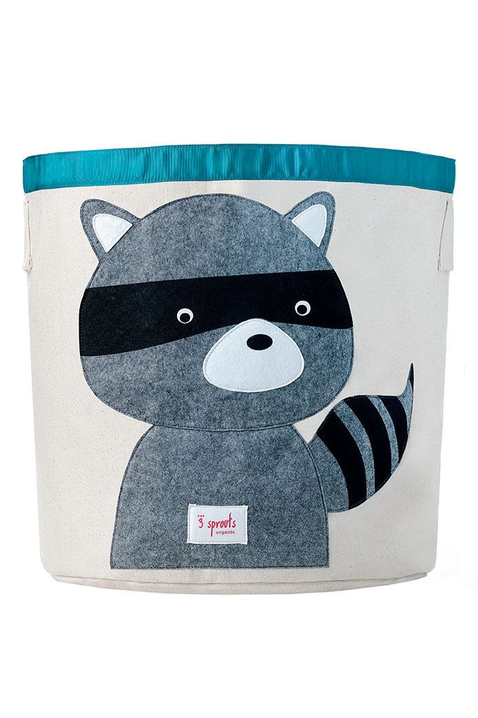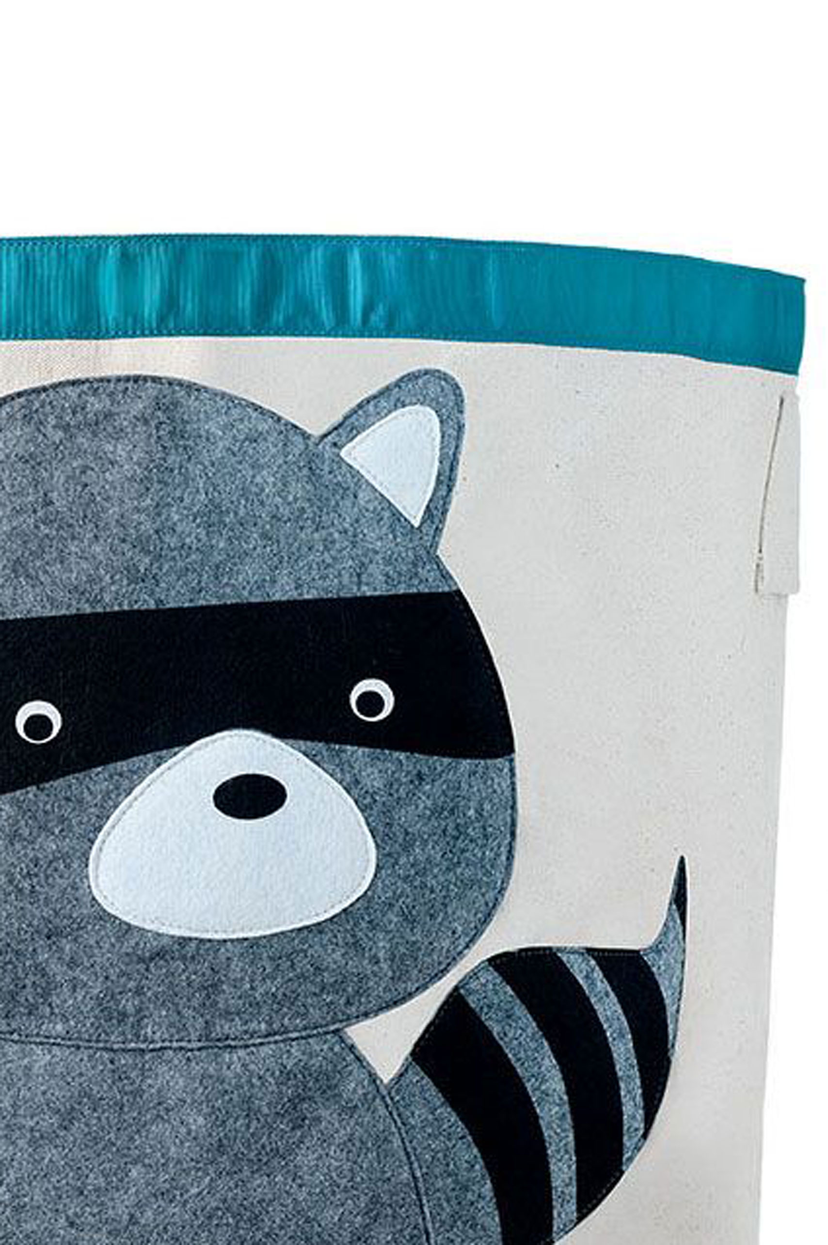 Aufbewahrungskorb in natur mit großer Waschbär-Applikation. Zum Verstauen von Spielzeug, Wäsche oder sonstigen Dingen. Damit macht Aufräumen Spaß.Maße: ca. 43x50cm.