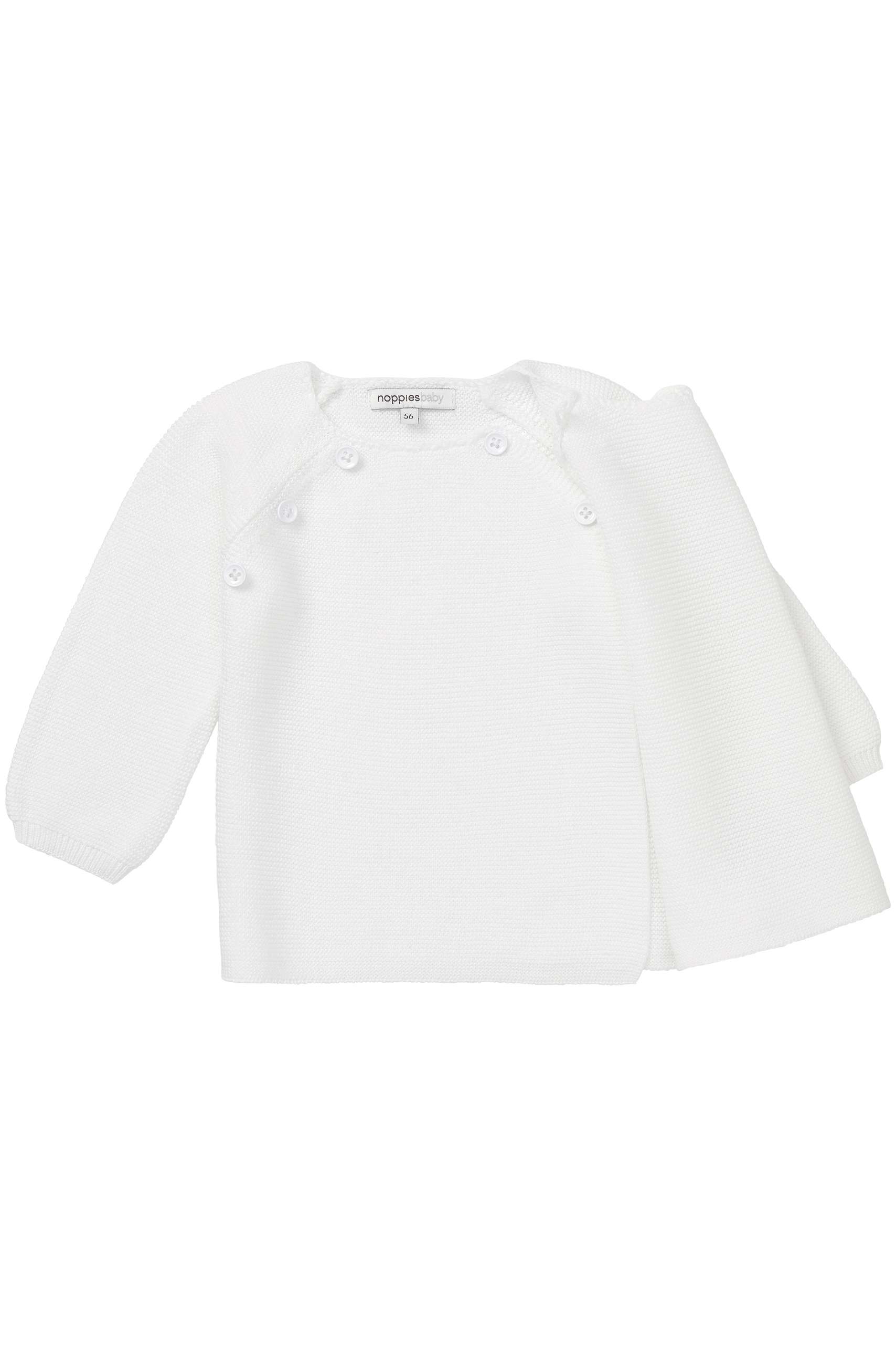 Wickel-Pullover für Babys aus reiner, besonders weicher Bio-Baumwolle. Das Wickeldesign des dehnbaren Jäckchens und drei Knöpfe erleichtern das An- und Ausziehen. Ein Süßes und wärmendes Obterteil für kleine Jungen und Mädchen. Passt perfekt dazu: die Organic Baby-Strickhose weiß. Farbe: weiß