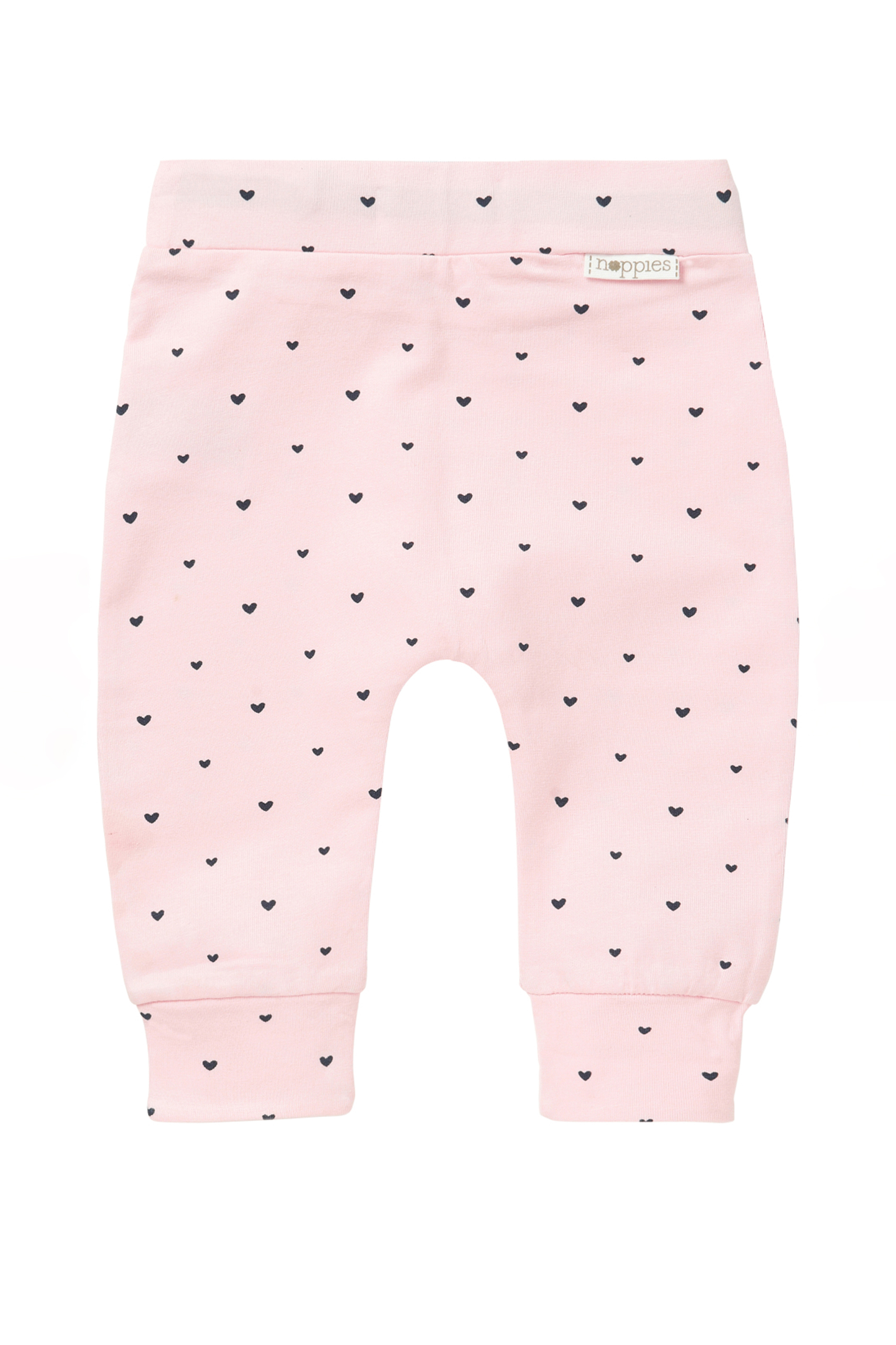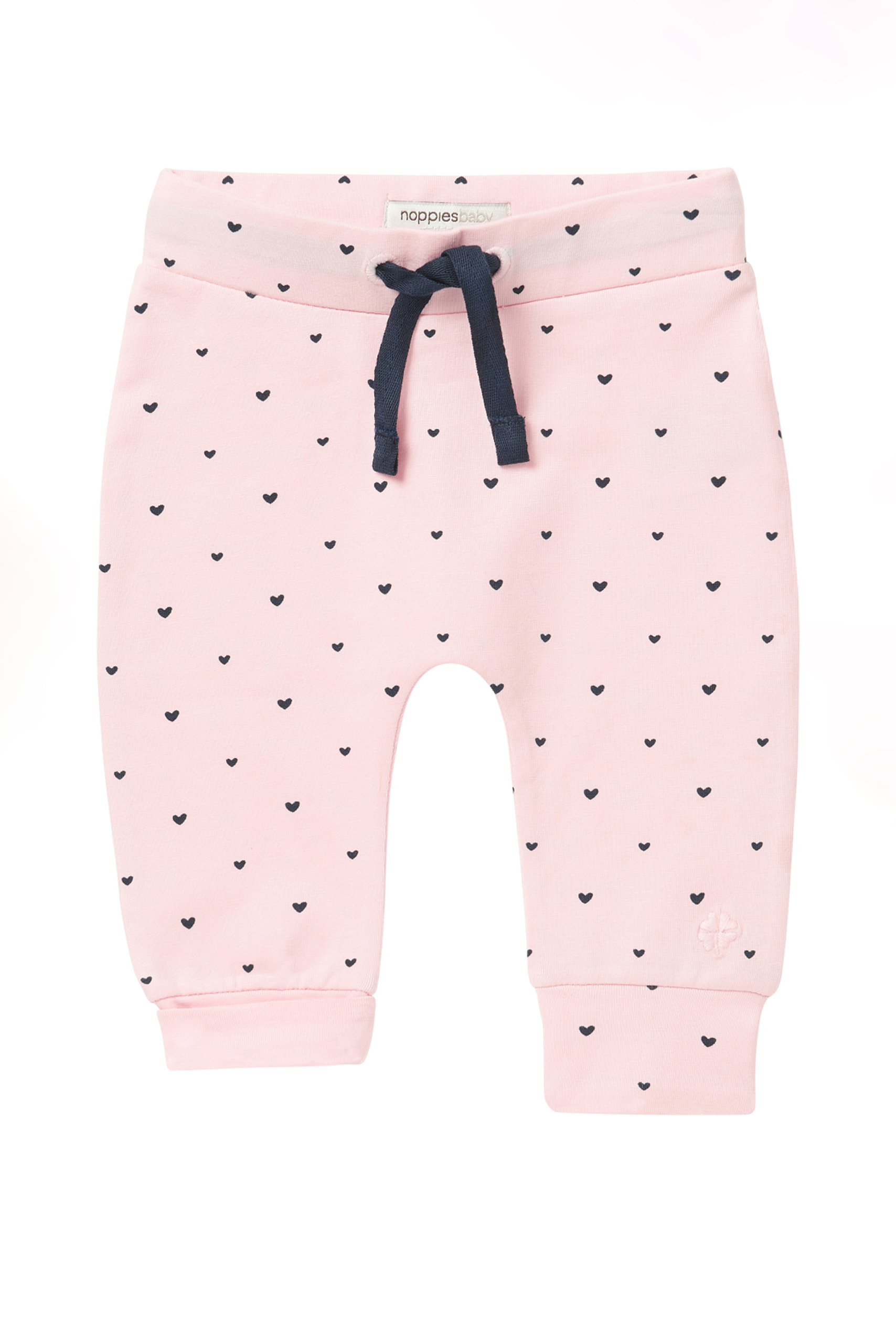 Babyhose mit Herzchen aus besonders weicher, GOTS zertifizierter Bio-Baumwolle. Der breite Bund kann über einen Tunnelzug mit kontrastfarbiger Schleife reguliert werden. Farbe: rosa