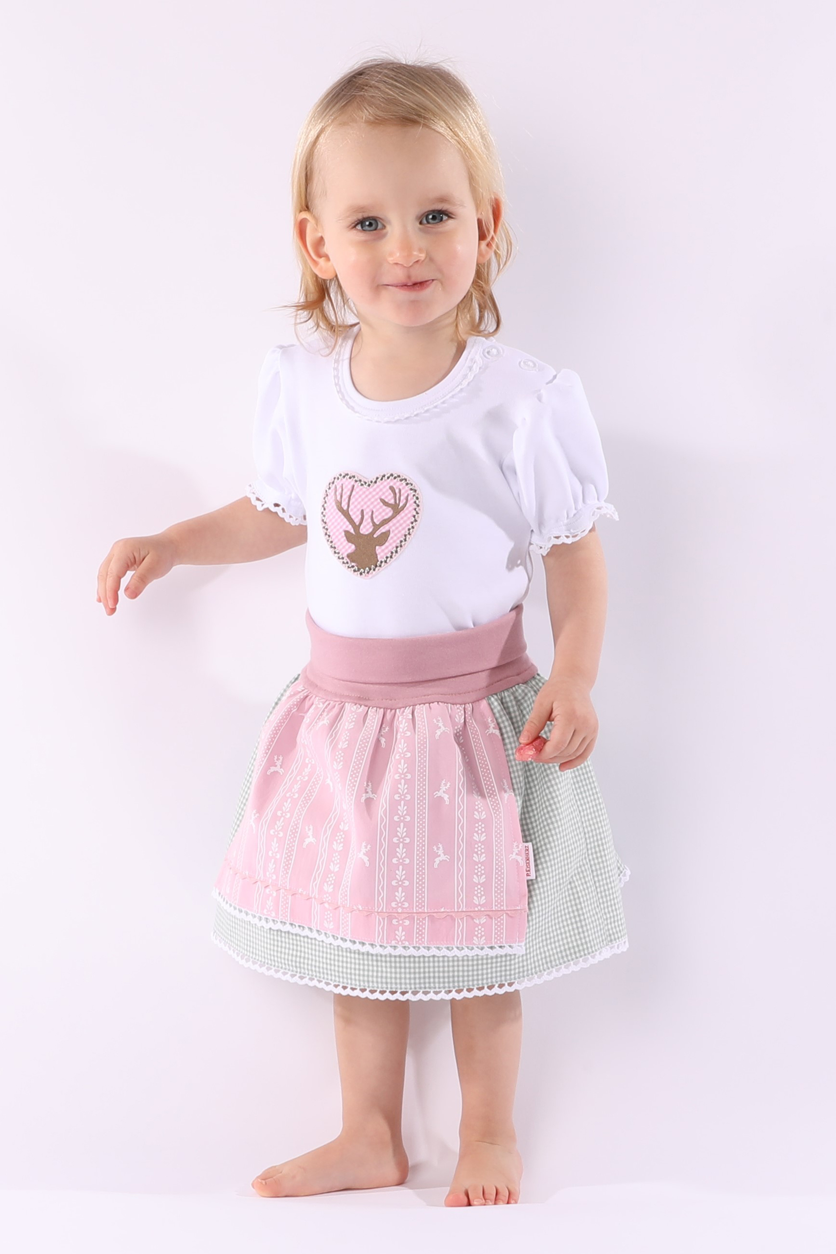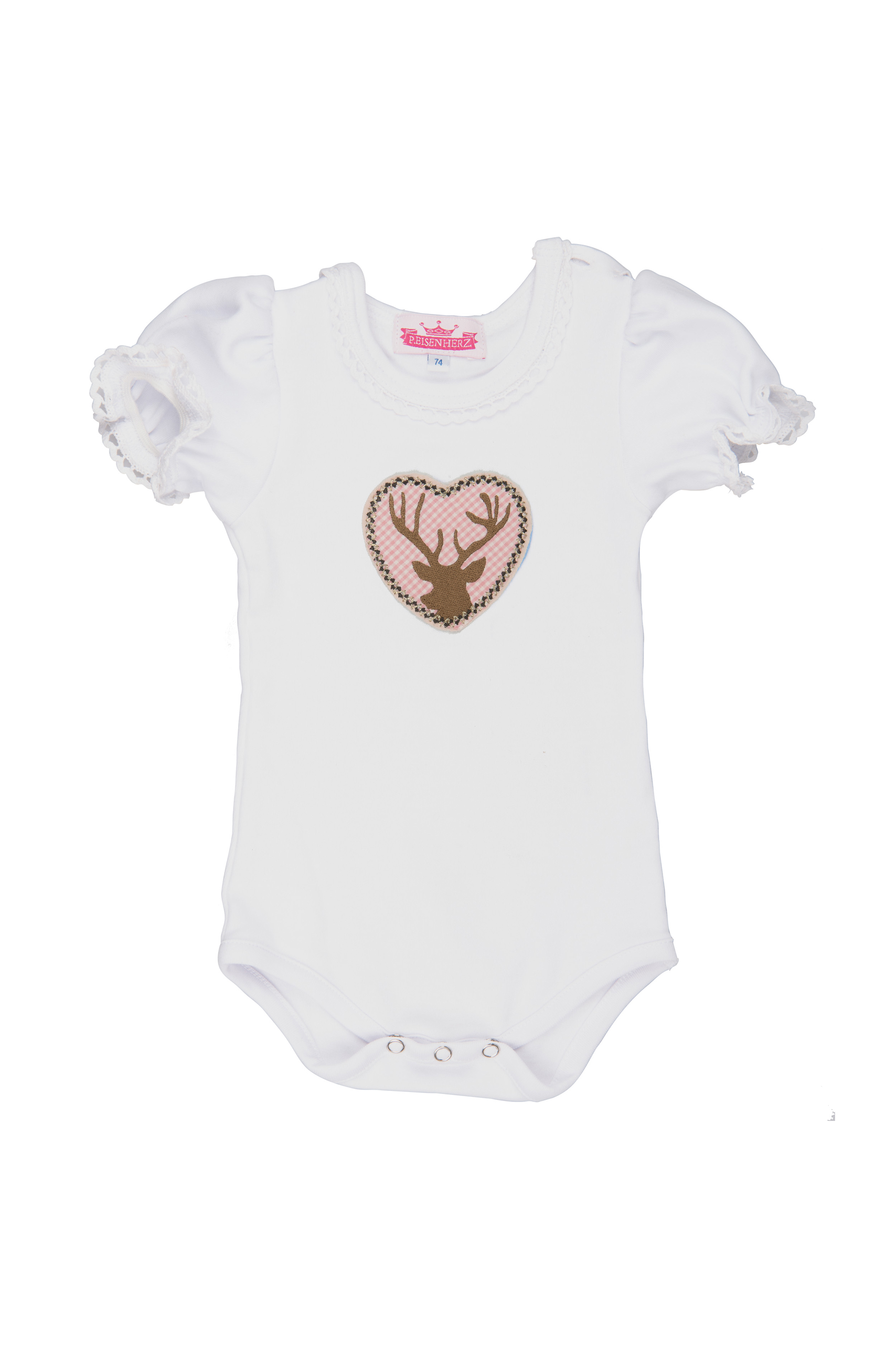 Trachten Body mit Puffärmeln und Hirschapplikation rosa