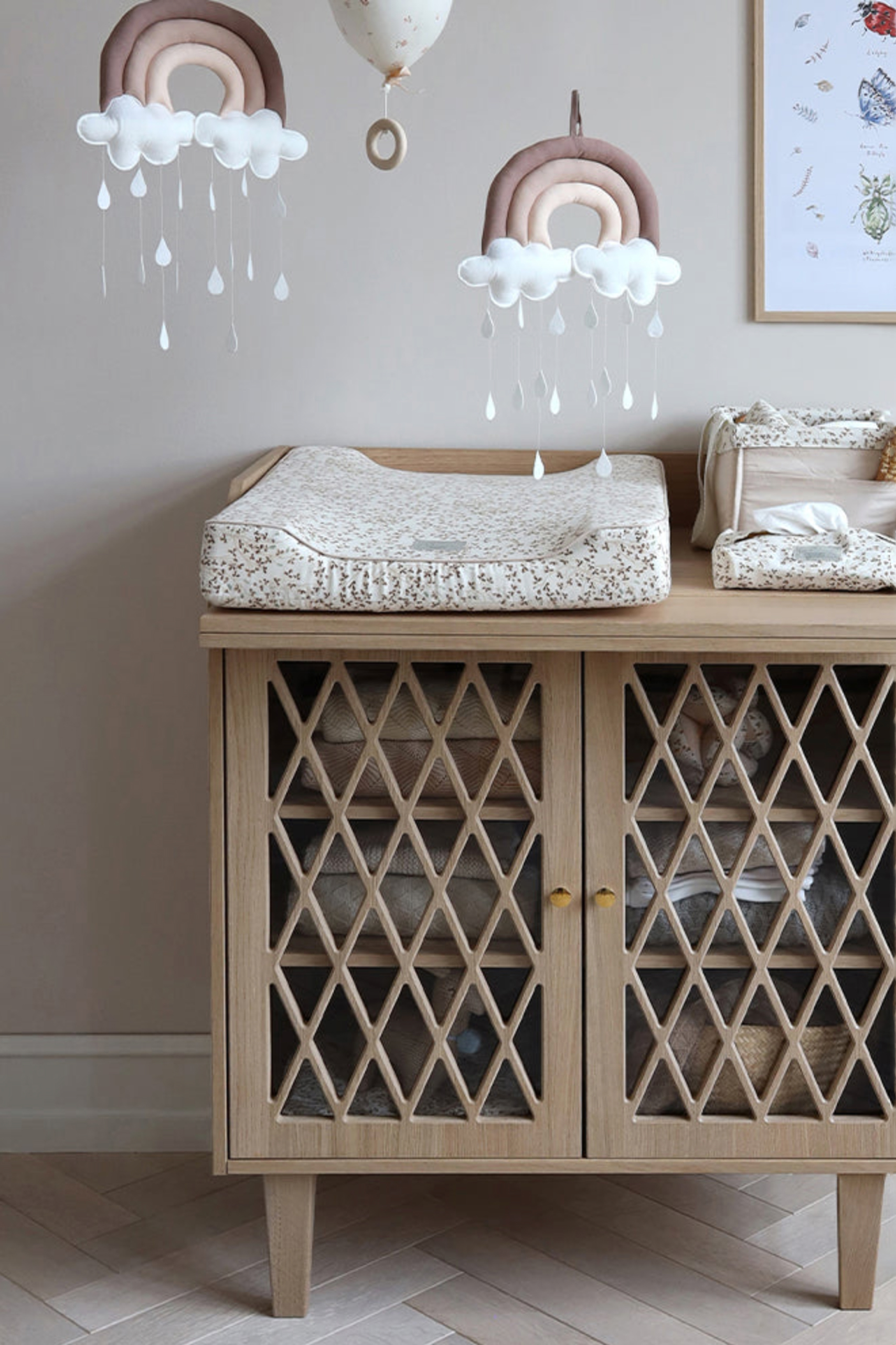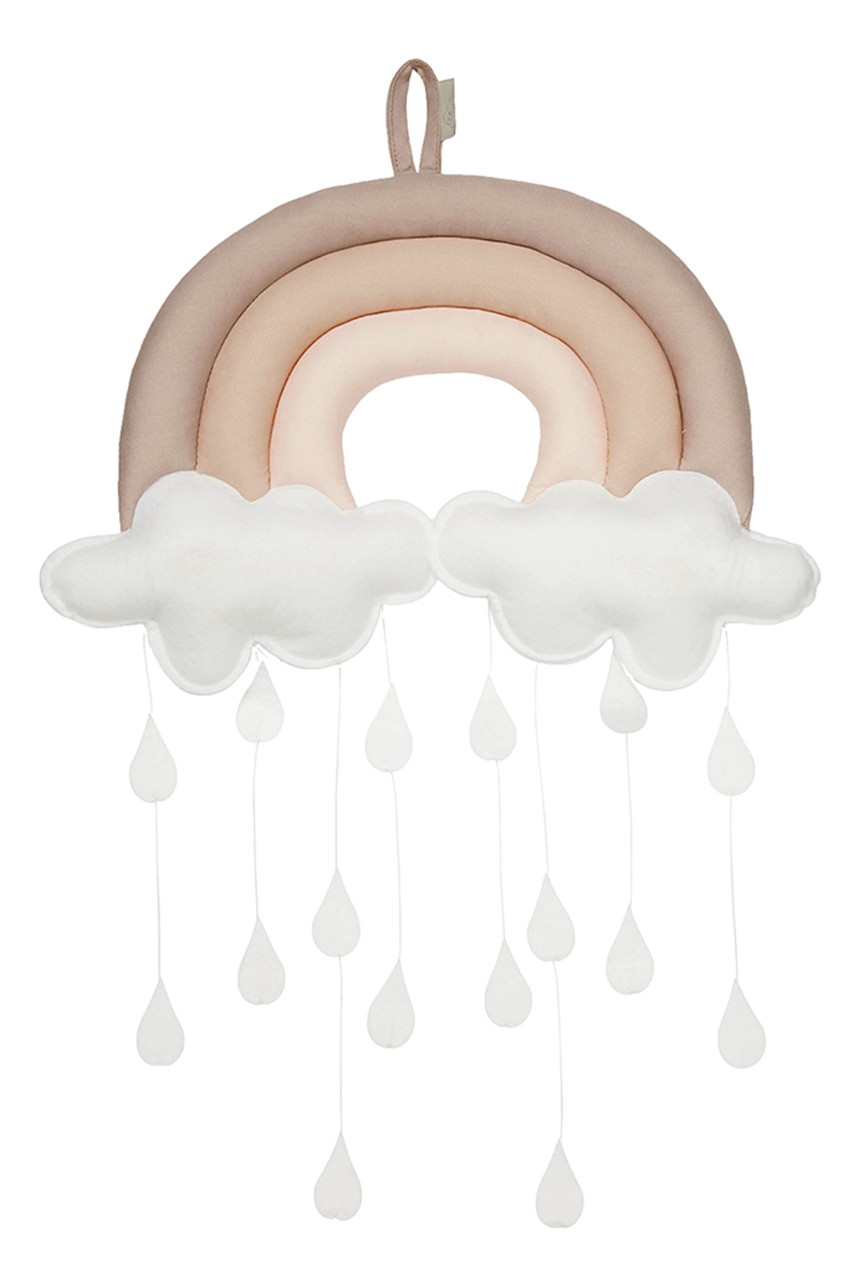 Handgemachtes Organic Baby Mobile in Form von einem Regenbogen mit Wölkchen und niedlichen Regentropfen. Das Mobile passt in jedes Kinderzimmer und kann einfach von der Decke, über dem Bettchen oder dem Wickeltisch aufgehängt werden. Dank einer hübschen Geschenk-Verpackung, eignet sich das Mobile wunderbar auch als Geschenk für eine Baby-Party oder zur Geburt. Bitte beachten: Das Mobile ist handgemacht und kann daher leicht von den Fotos abweichen. Farbe: sand