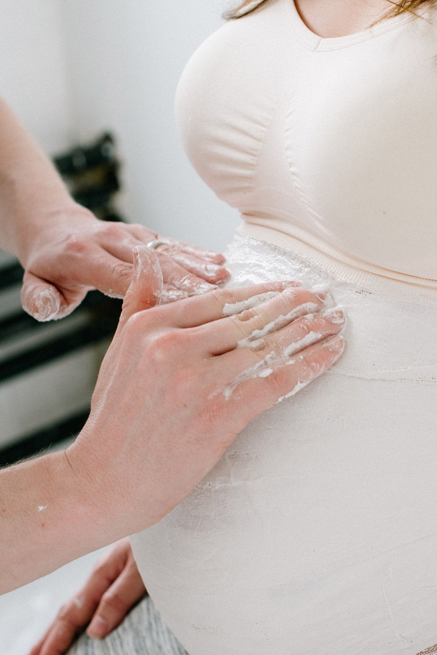 Bauchkunst: Eine der tollsten Erinnerungen an die unvergesslichen Monate deiner Schwangerschaft schaffst du mit diesem Babybauch-Abdruck-Set. Die Gips-Bauchmaske am besten am Ende der Schwangerschaft erstellen, wenn der Bauch wunderbar rund ist! Das Set beinhaltet: 5 Rollen Gipsbinden, Creme, Abdecktuch, Handschuhe, Schleifpapier. Der Bauchabdruck kann bereits nach 5-10 Minuten Trockenzeit abgenommen werden und härtet nach etwa 24 Stunden aus.