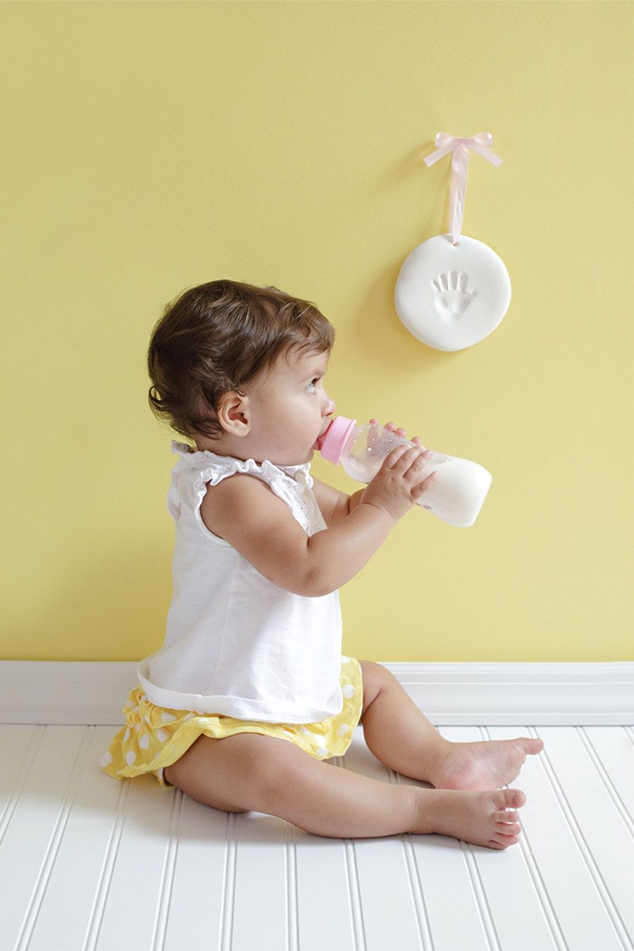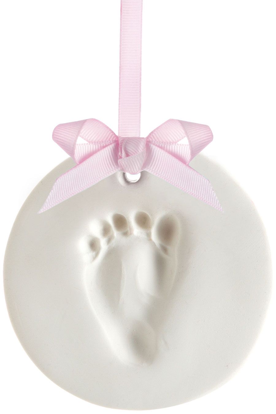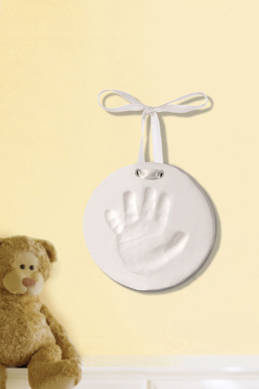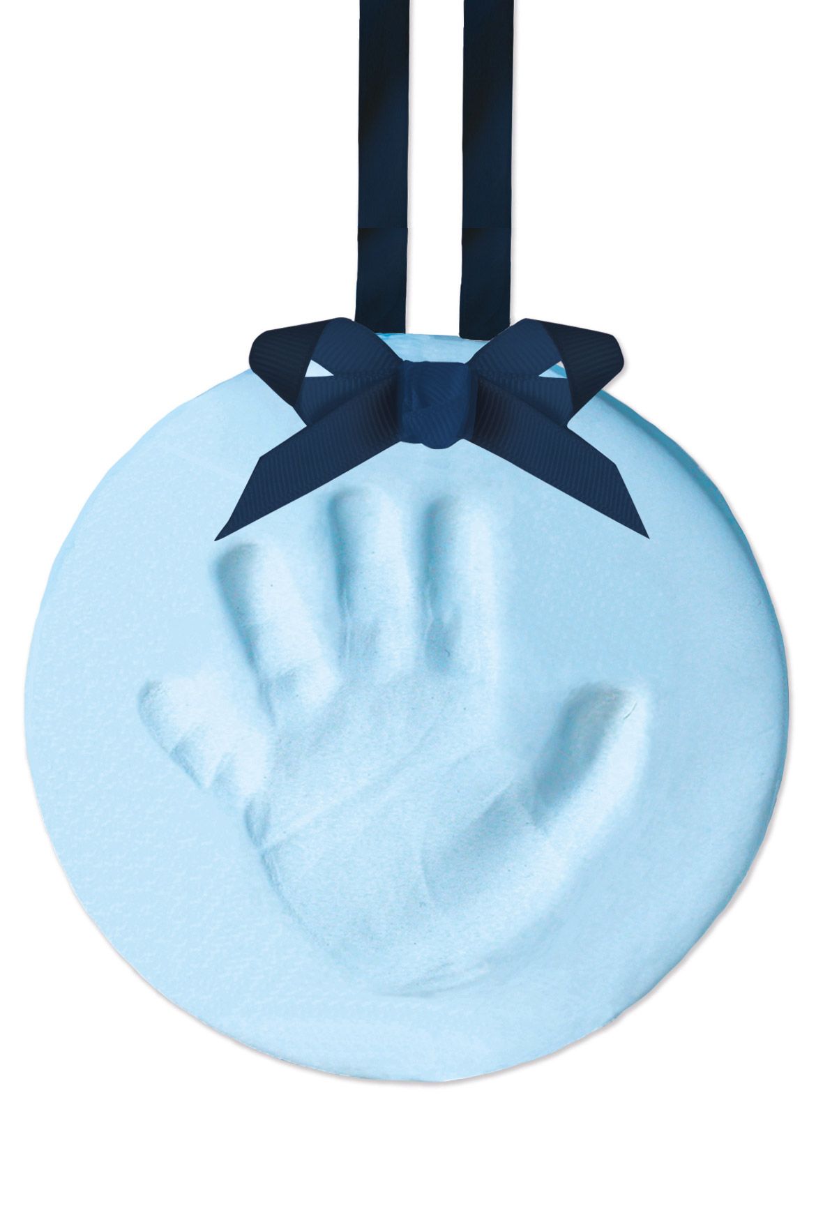 Ein wundervolles Andenken und ein schönes Geschenk für Verwandte und Freunde: komplettes Set zum Erstellen eines Hand- oder Fußabdrucks deines Babys. Der Anhänger kann dann mit dem mitgelieferten Satinband aufgehängt werden. Die Erstellung des Abdrucks ist dank der innovativen 'Soft Air' Abdruckmasse ein Kinderspiel: das schadstofffreie Material trocknet einfach an der Luft - kein Rühren, kein Backen, kein Schmutz - und fertig! Beinhaltet: Abdruckmasse 'Soft Air', Rollholz und Lineal, Satinbänder in blau, pink und weiß. Maße: ca. 17 cm Durchmesser x 4 cm. Farben: weiß, rosa, blau