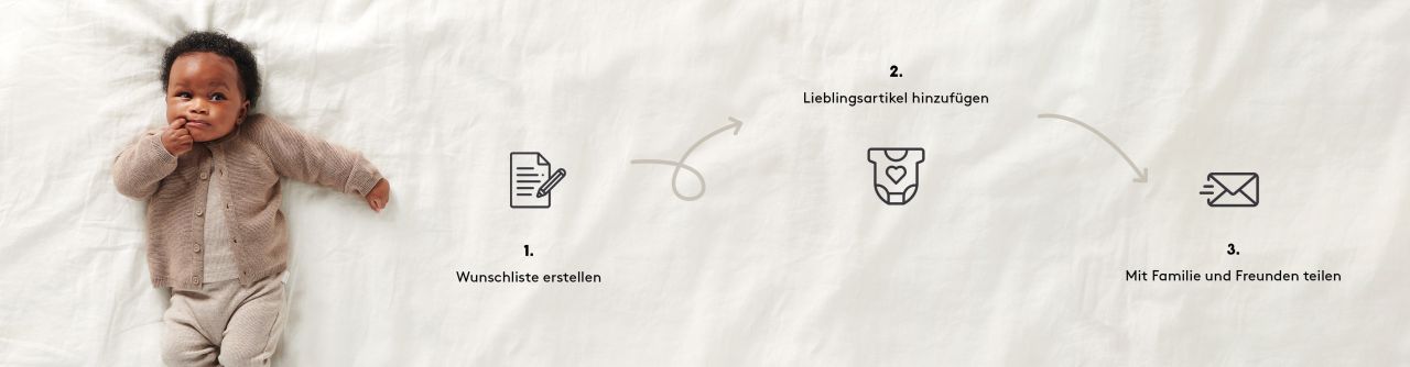 Freunde und Familie möchten dein Glück teilen und dich reich beschenken. Um ihnen das Schenken so einfach wie möglich zu machen, erstelle dir ganz einfach eine Wunschliste und teile sie mit deinen Liebsten! So bekommst du nur deine Lieblingsartikel und keine Geschenke doppelt. Aber erst musst du dich bitte registrieren oder einloggen: