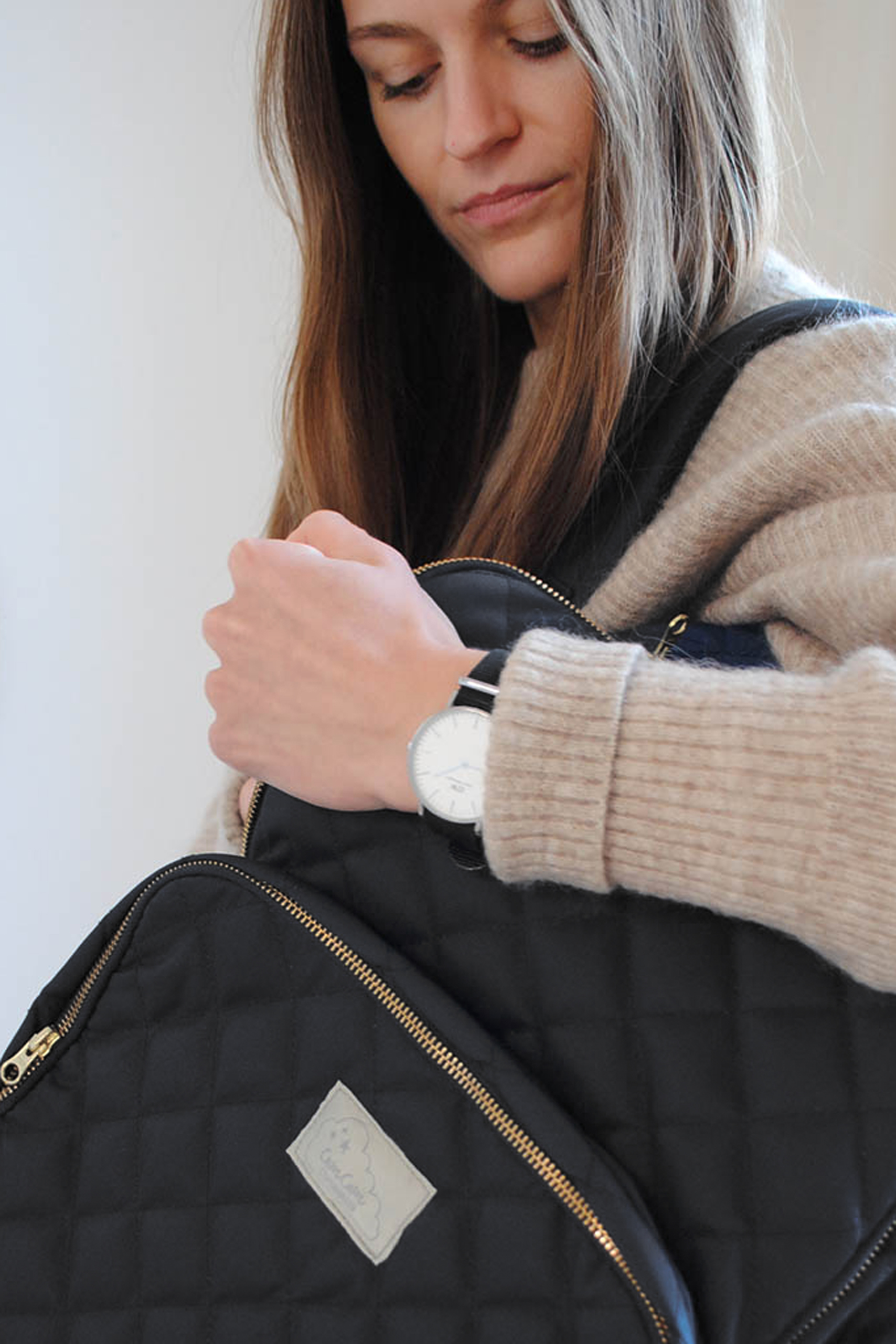 Entdecke den Wickelrucksack auch in navy und taupe