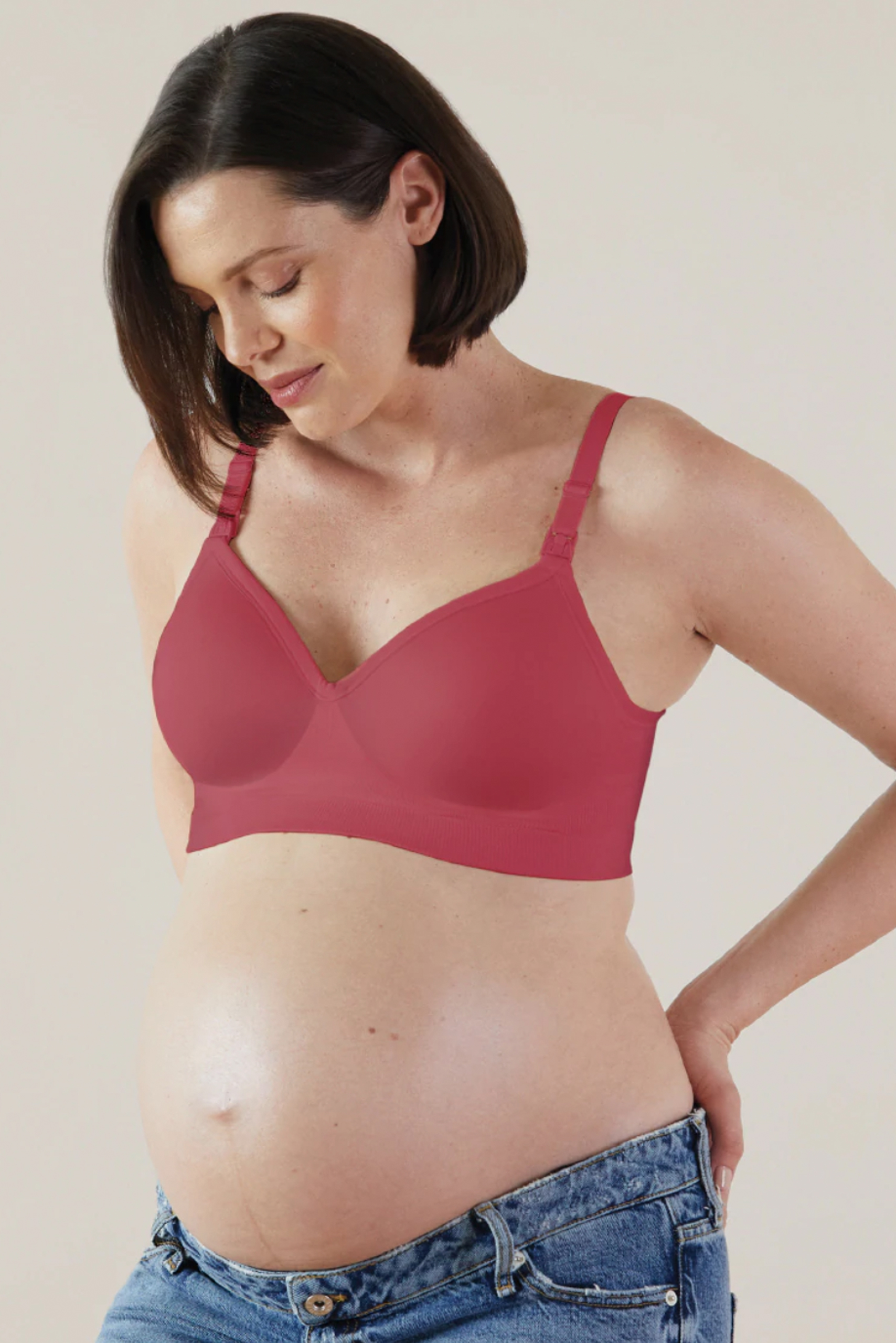 Der Eco Plunge Still BH ohne Bügel zaubert dank modernen, tiefem V-Ausschnitt und fest integrierter, gemoldeter Cups ein tolles Dekolleté und sorgt für angenehmen Halt. Der hochwertige, weiche, nahtlose 4-Wege Stretch passt sich deinem Körper perfekt an während der gesamten Schwangerschaft und Stillzeit und sorgt für einen hohen Tragekomfort. Zum Stillen kannst du die praktischen Still-Clips ganz einfach mit einer Hand öffnen und den BH herunterklappen, wodurch du maximalen Hautkontakt mit deinem Baby erhältst. Der Still BH wurde nach dem Oeko-Tex® Standard 100 getestet und zertifiziert. Farbe: berry