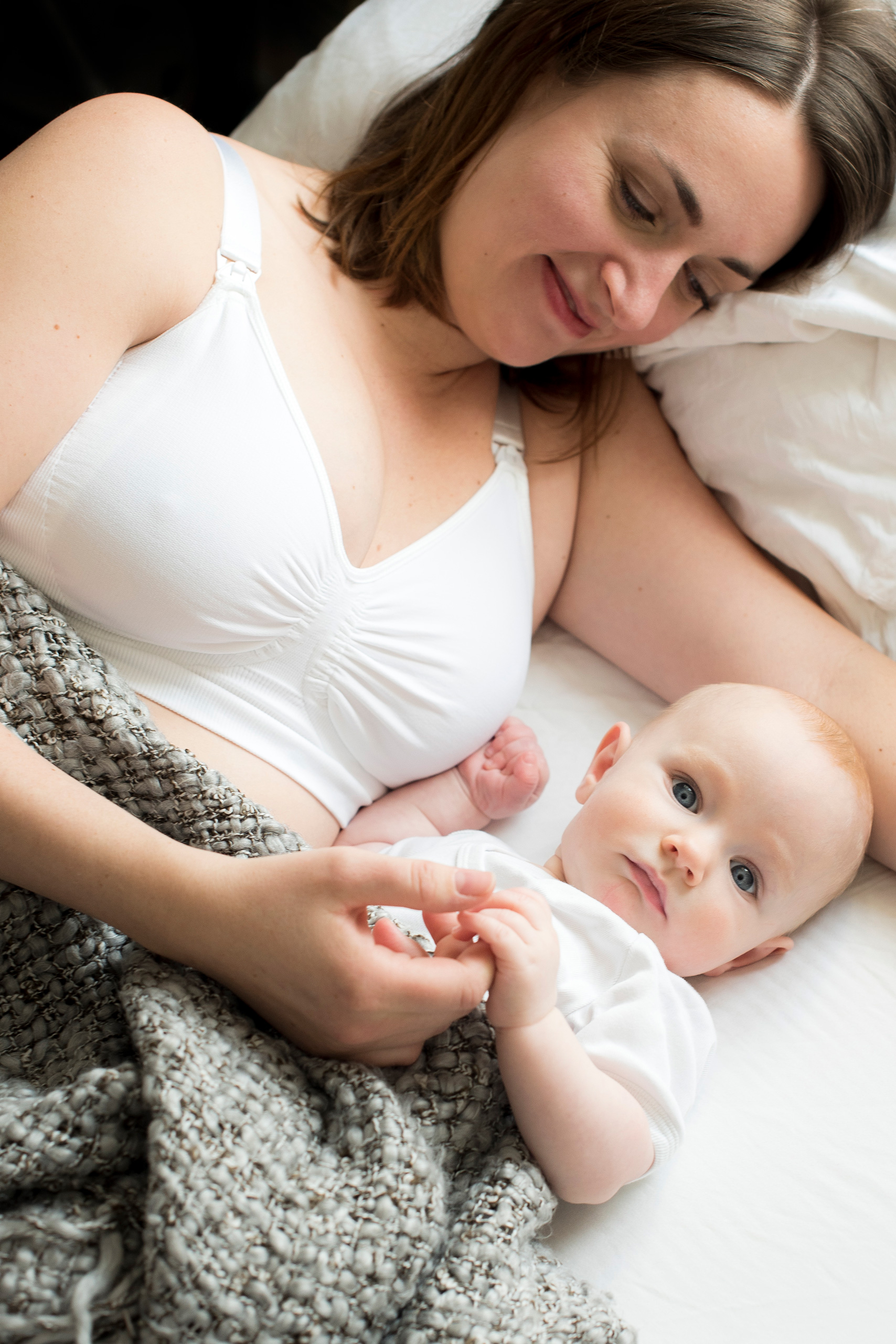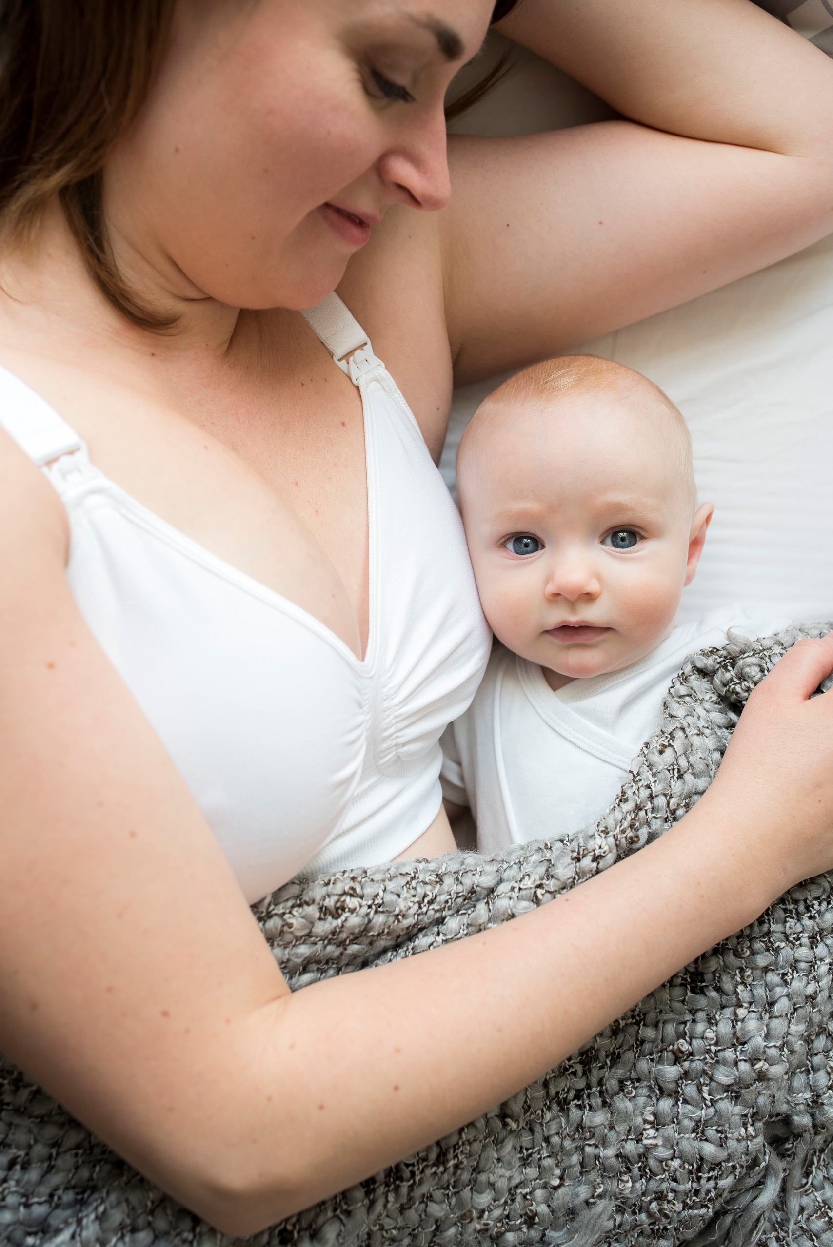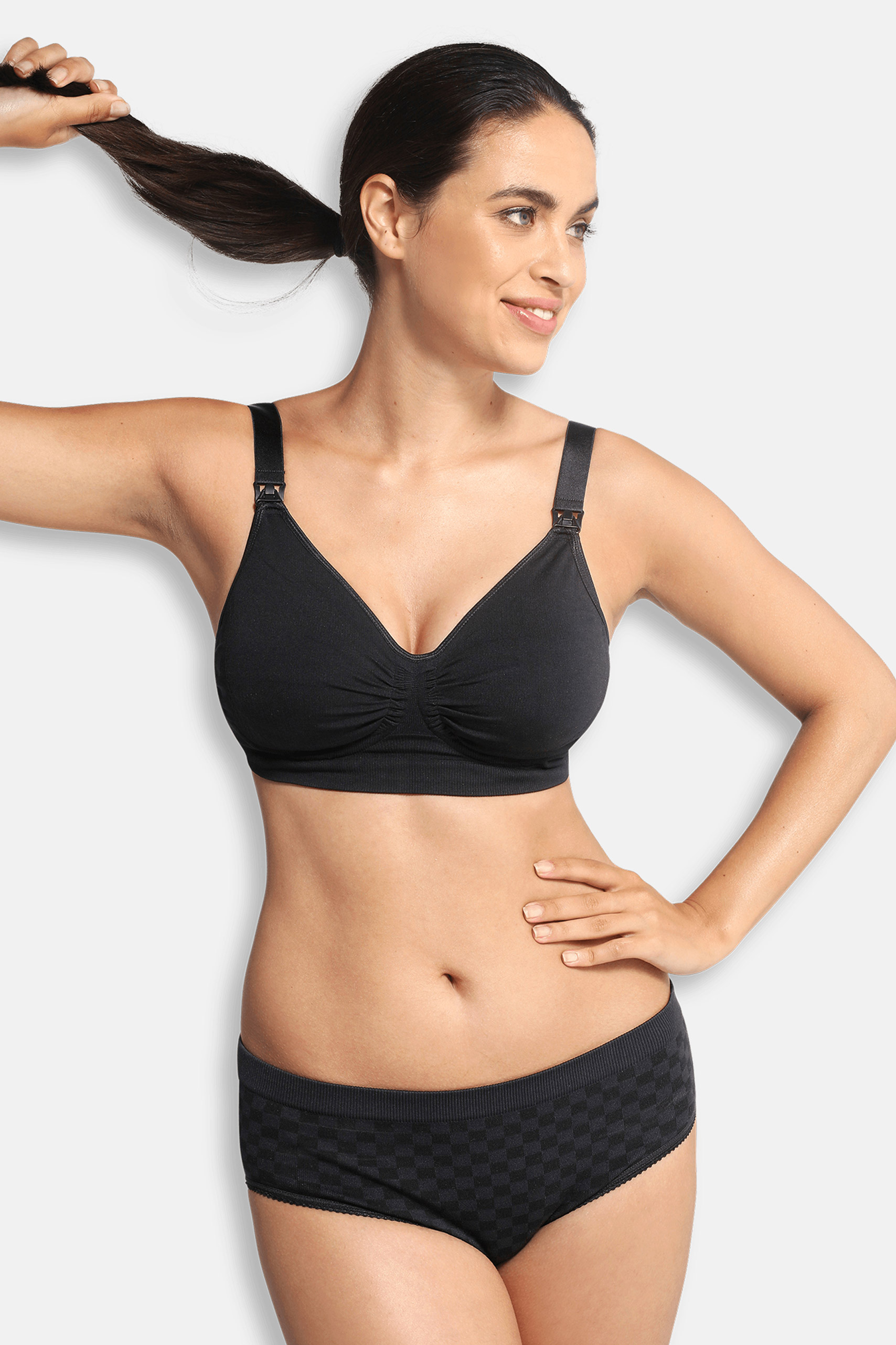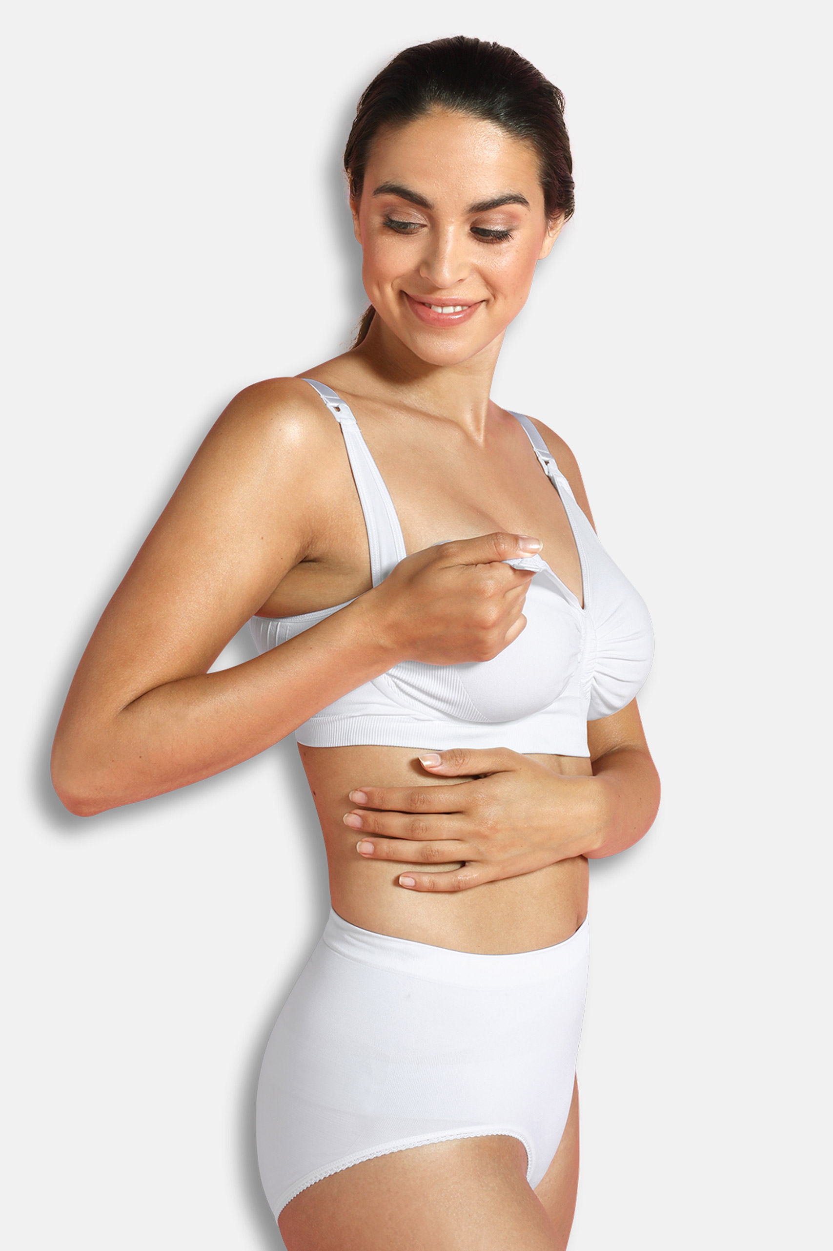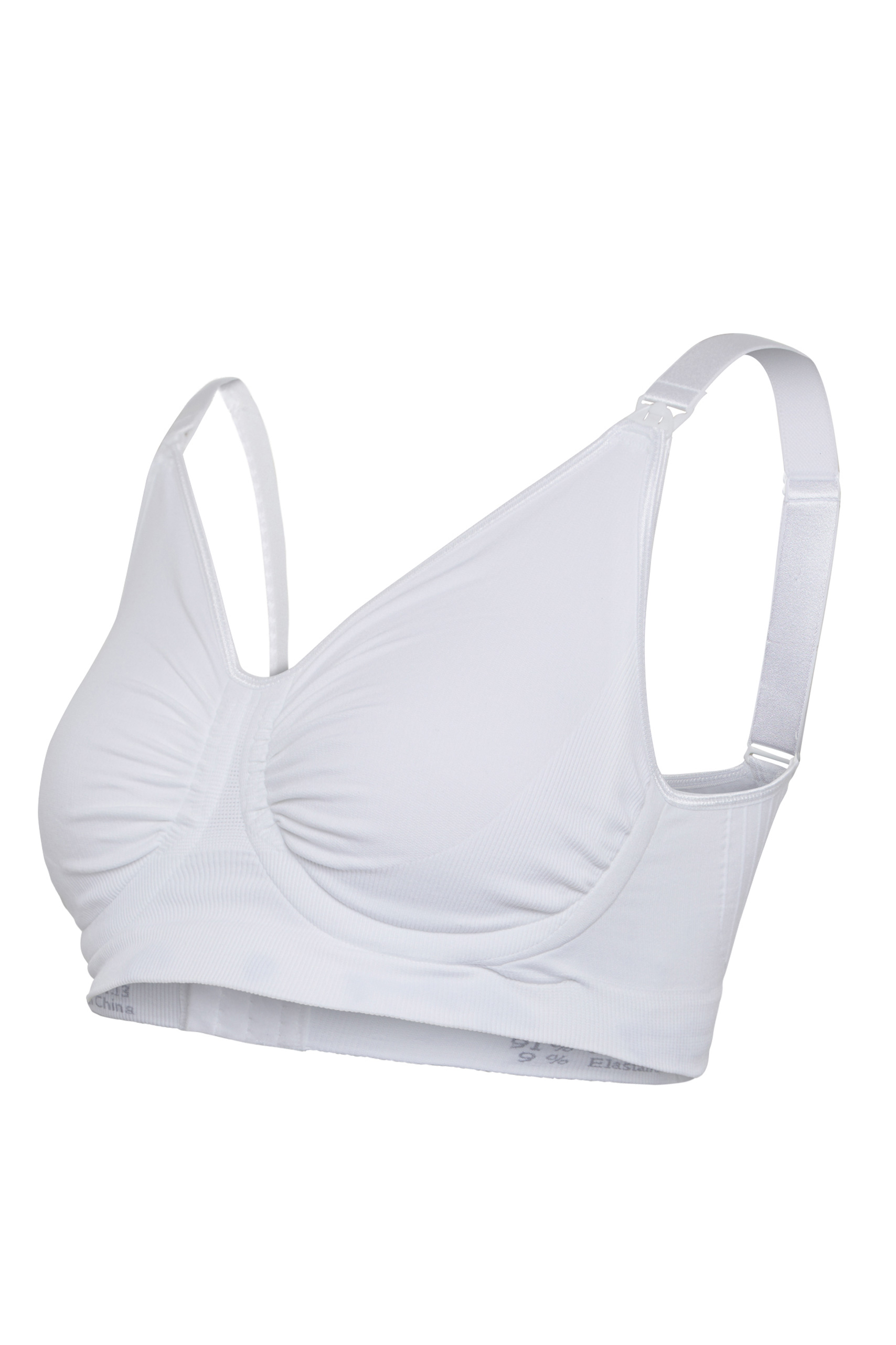 Komfortabler Seamless Still BH mit zusätzlichem Halt durch spezielle Gel-Bügel, die soft und flexibel sind, um ein Drücken wie bei herkömmlichen Metallbügel zu vermeiden. Der BH wird deshalb von Stillberaterinnen empfohlen! Passt sich der wachsenden Brust bis zu 2 Cup-Größen an und kann einhändig an den Still-Clips geöffnet werden. Farben: weiß, schwarz.
