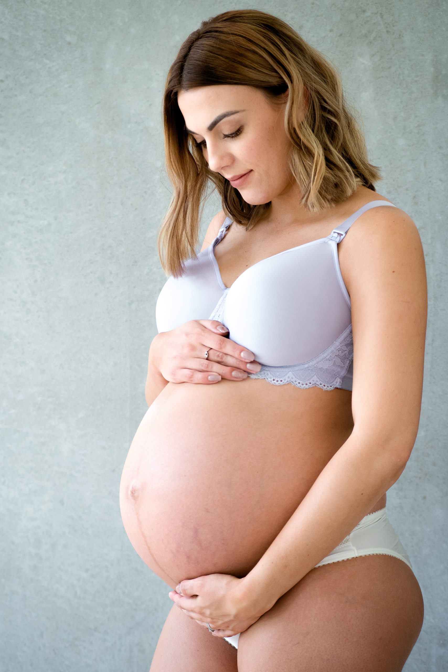 Spacer Schwangerschafts- und Still BH speziell für große Cups, der deiner Brust optimalen Support gibt. Dafür sorgen Flexibügel, die sich deiner Brust perfekt anpassen. Der Vollschalen-BH ist weich und glatt, er zeichnet sich unter deiner Kleidung nicht ab. Feminine Spitzendetails und ein Einsatz aus Powermesh auf der Rückseite verleihen dem BH einen zarten, femininen Look. Über Stillclips an den Trägern kannst du die Cups zum Stillen einzeln öffnen und herunterklappen. Farbe: eisblau