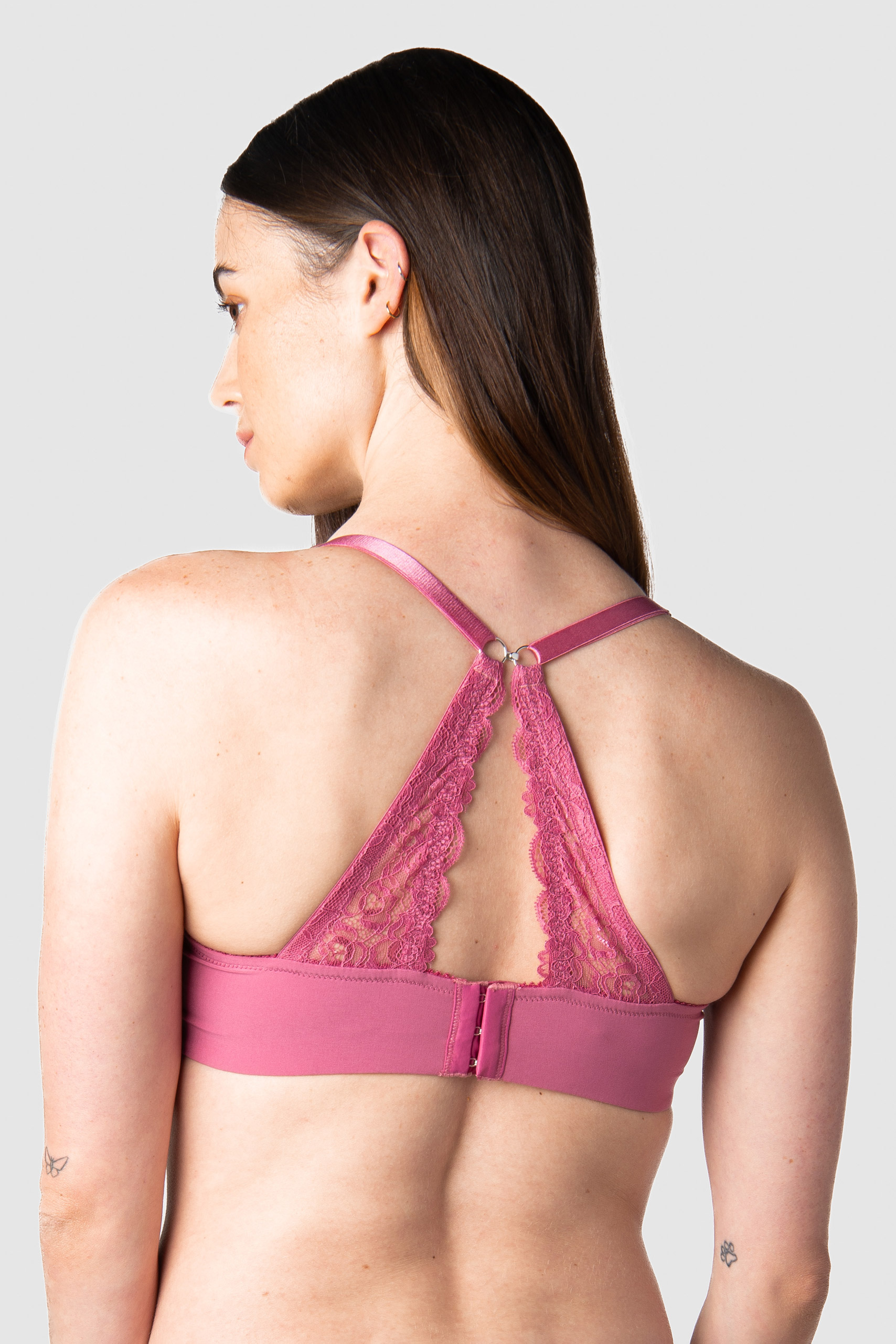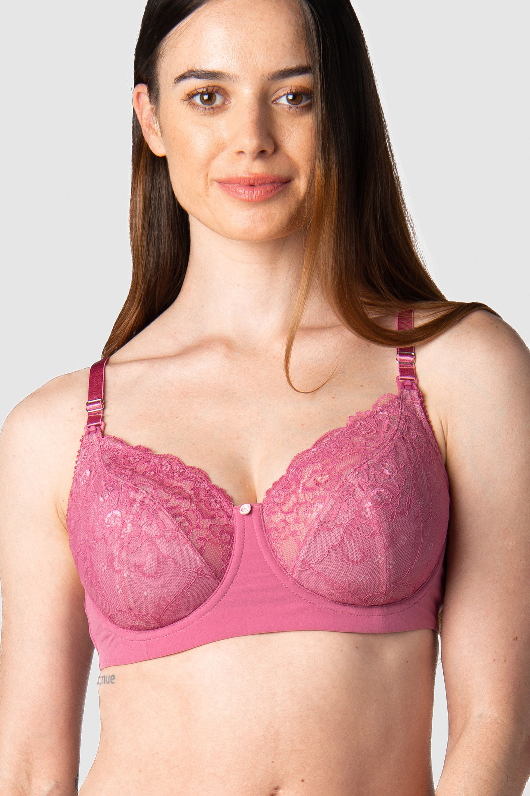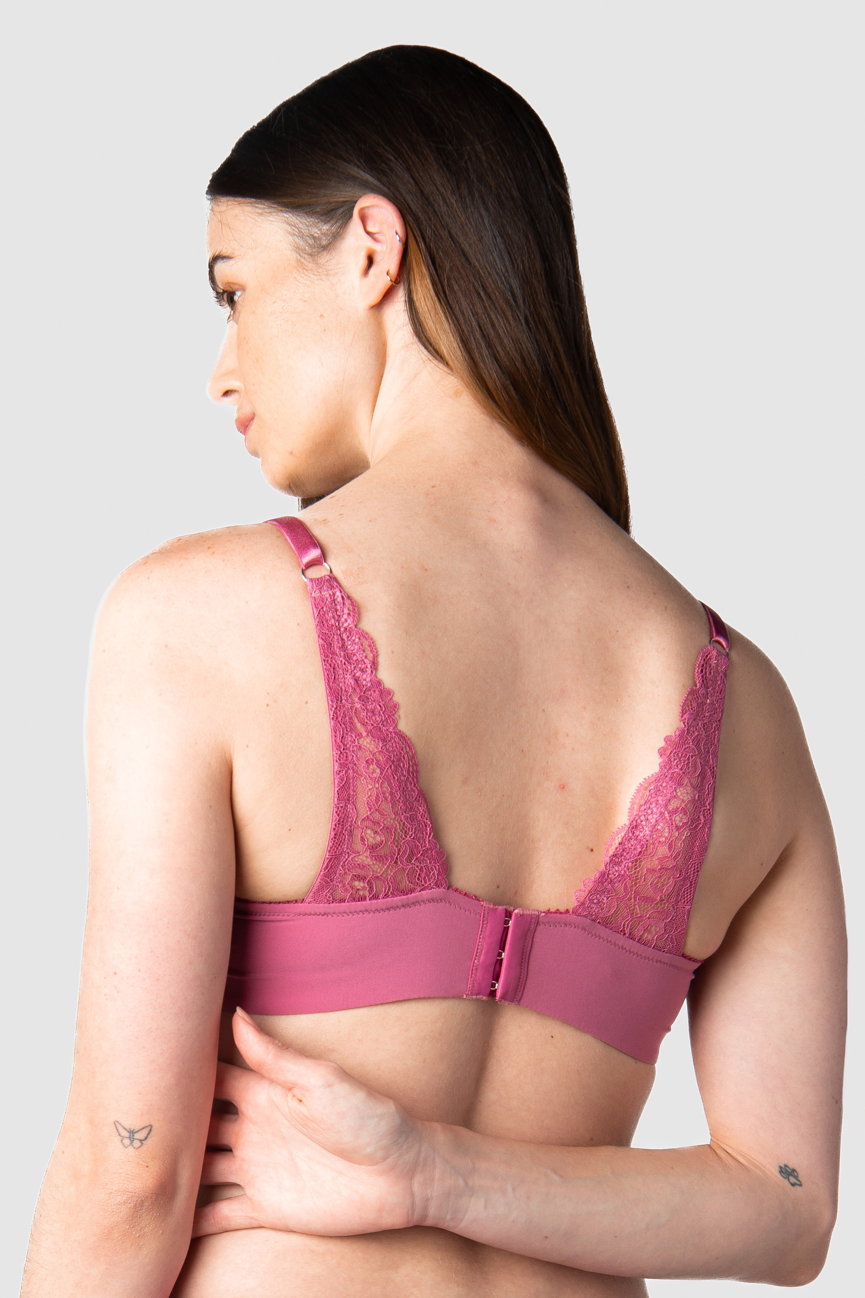 Full Cup Still BH mit hochwertiger Spitze, verstellbaren Trägern und verspieltem Rosendetail zwischen den Cups. Der breite Verschluss und das Unterbrustband bieten besonderen Tragekomfort und Halt. Die Träger können sowohl als Racerback als auch normal getragen werden und sind am Rücken aus verführerischer Spitze. Die praktischen Stillclips bieten einen einfachen Zugang zur Brust indem die Cups herunter geklappt werden können. Farbe: berry