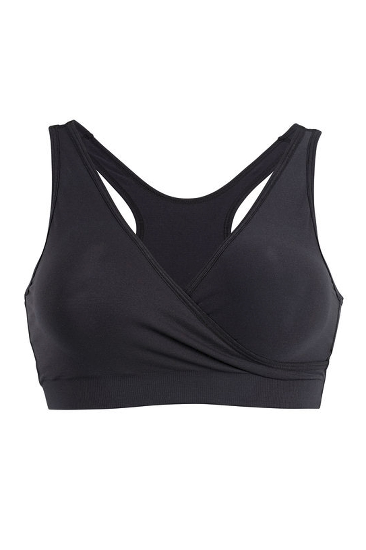 Schlaf- und Still Bustier aus weichem, atmungsaktivem Material mit gekreuztem Ausschnitt, Racerback und ohne störende Nähte. Das Still Bustier ist besonders angenehm zu tragen und wurde so konzipiert, dass die Stilleinlagen beim Schlafen nicht verrutschen. Ideal für einfaches und komfortables Stillen geeignet. Dank des hochwertigen Stretch-Materials passt sich der BH in der gesamten Schwangerschaft und Stillzeit an deinen Körper an. Farbe: schwarz