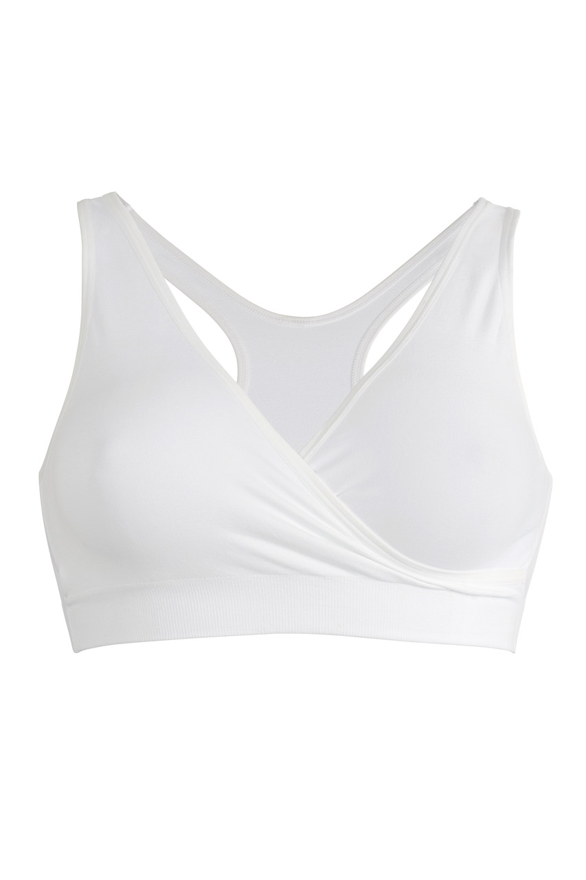 Schlaf und Still Bustier aus hochwertigem, atmungsaktivem Stretch-Material mit Racerback für hohen Tragekomfort und Halt. Der BH wurde so konzipiert, dass die Stilleinlagen beim Schlafen nicht verrutschen können und der Criss Cross Ausschnitt bietet dabei einen einfachen Stillzugang für die Nacht. Dank des weichen Materials ohne störende Nähte ist der Still BH besonders bequem und passt sich die gesamte Schwangerschaft und Stillzeit ideal an den Körper an. Farbe: weiß