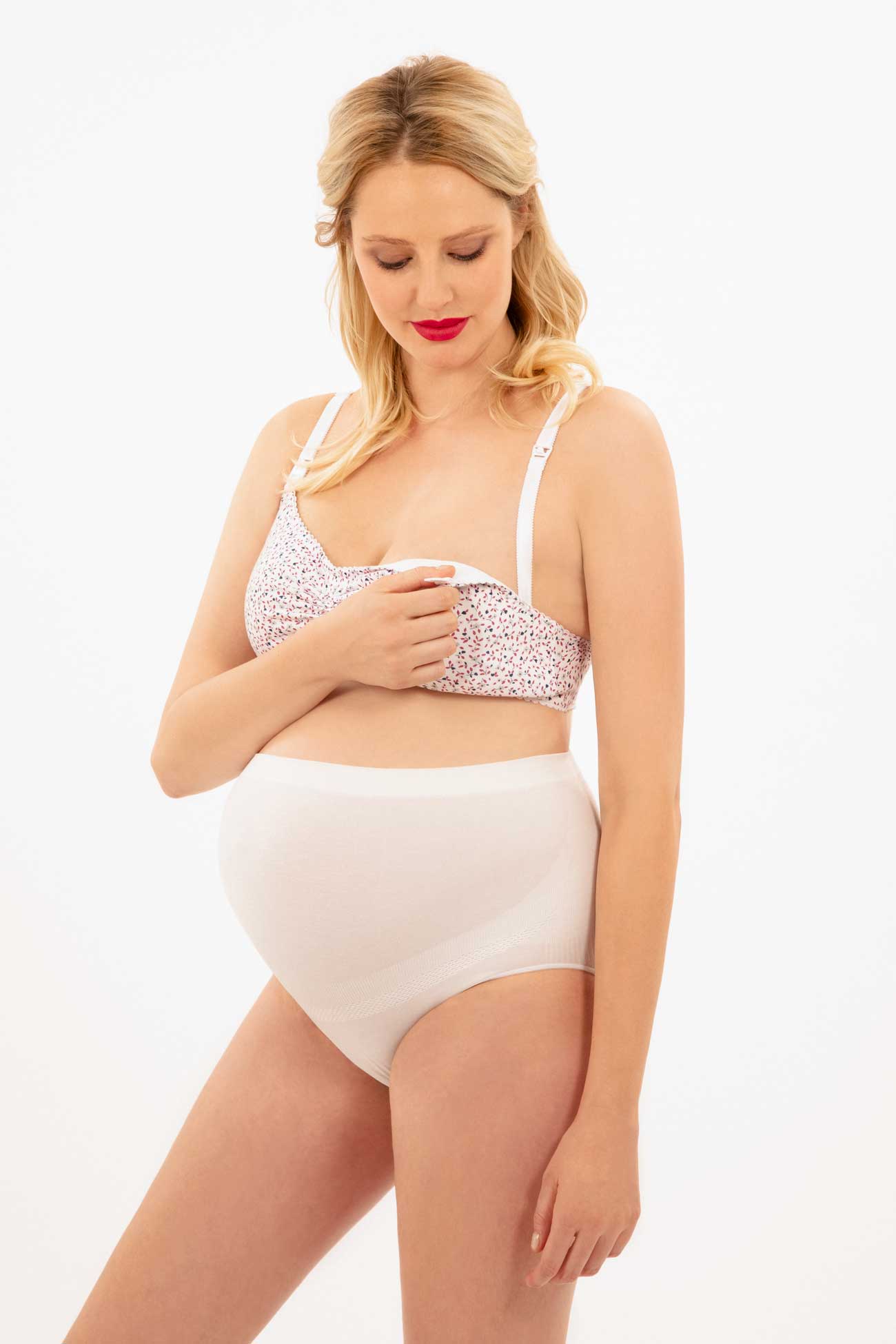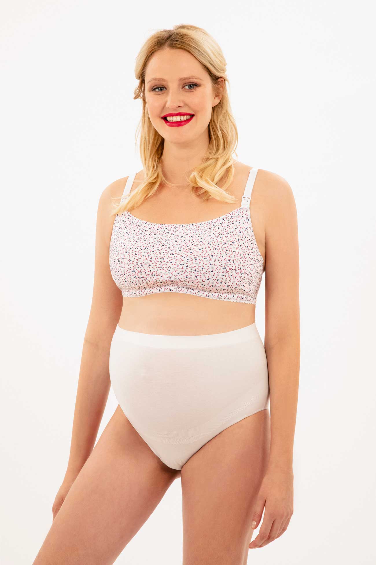 Unser blondes Model Shona Lee ist 179cm groß und auf den Fotos in der 31. SSW. Unser Model Yvette ist 181cm groß und auf den Fotos in der 26. SSW. Sie trägt den BH in Gr. 80C und den Slip in Gr. M.