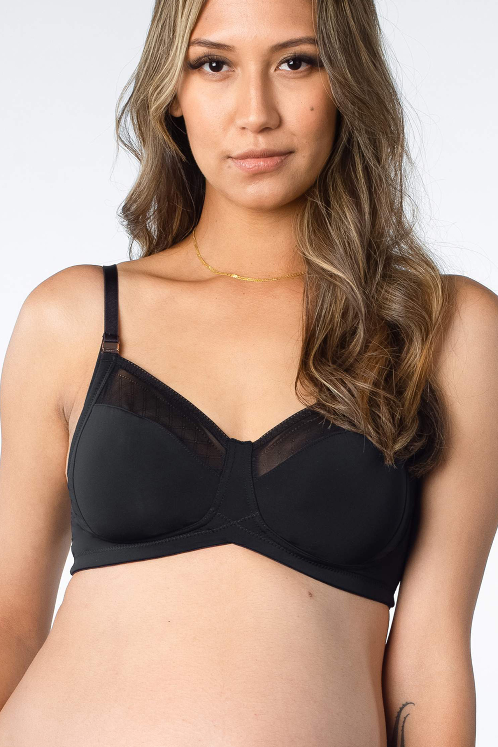 Full Cup Still BH ohne Bügel mit vorgeformten Cups und dekorativen Mesh-Einsätzen aus weicher Mikrofaser-Qualität. Das spezielle Design der Cups stützt, hebt und formt deine Brust. Magnetische Still-Clips machen das einhändige Öffnen und Schließen super easy. Farbe: schwarz.