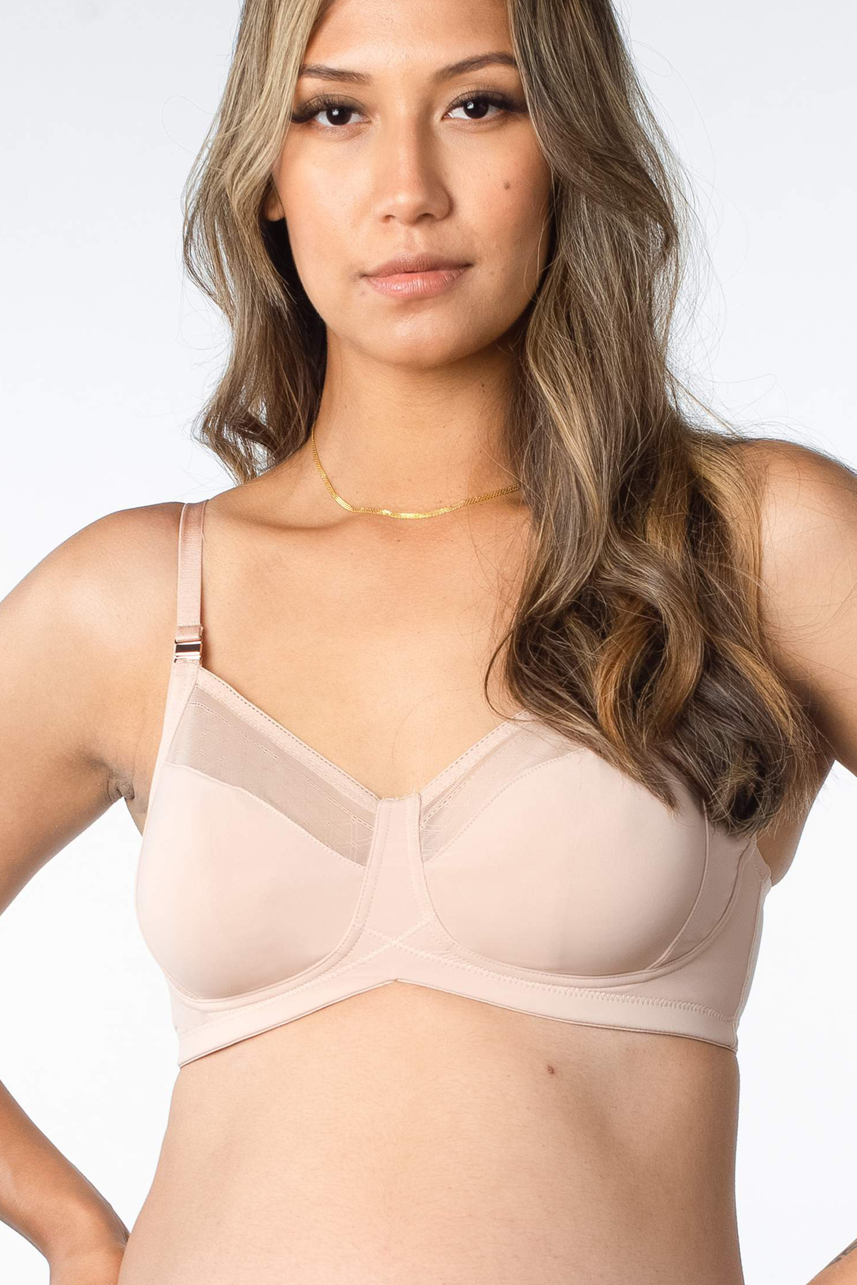 Full Cup Still BH ohne Bügel mit vorgeformten Cups und dekorativen Mesh-Einsätzen aus weicher Mikrofaser-Qualität. Das spezielle Design der Cups stützt, hebt und formt deine Brust. Magnetische Still-Clips machen das einhändige Öffnen und Schließen super easy. Farbe: haut.