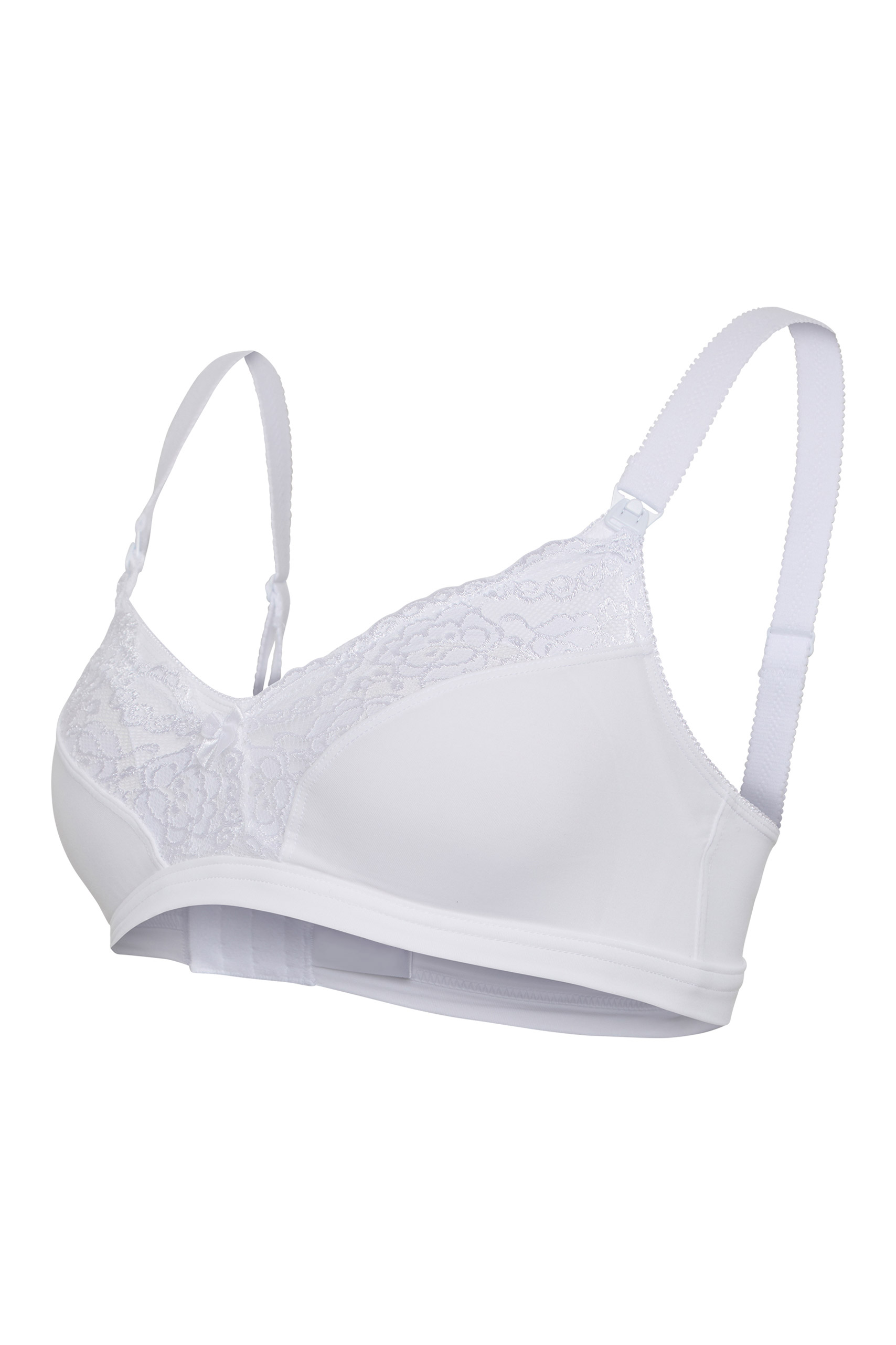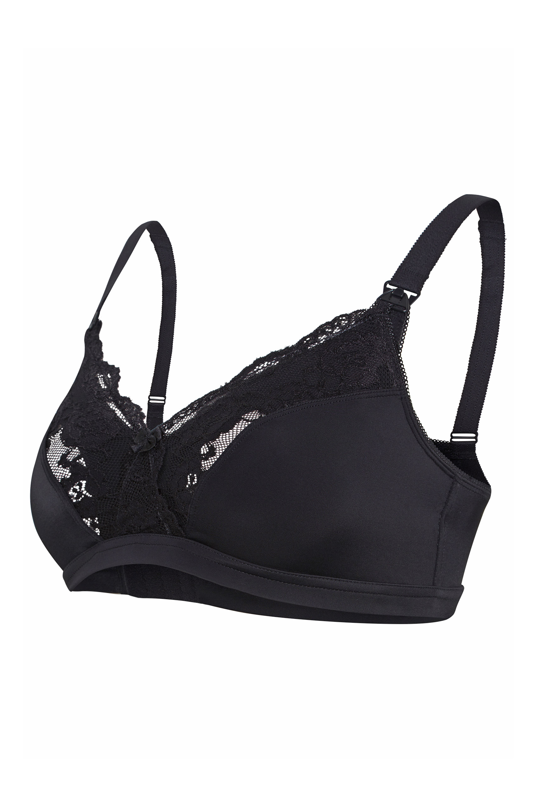 Still BH ohne Bügel im klassischen Design mit Spitze an den Cups und breitem Unterbrustband für mehr Komfort und Halt. Die Still-Clips können einhändig geöffnet werden.