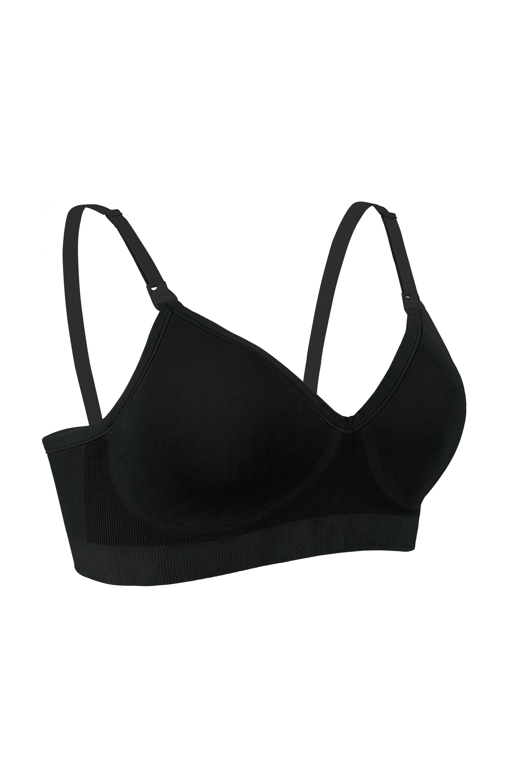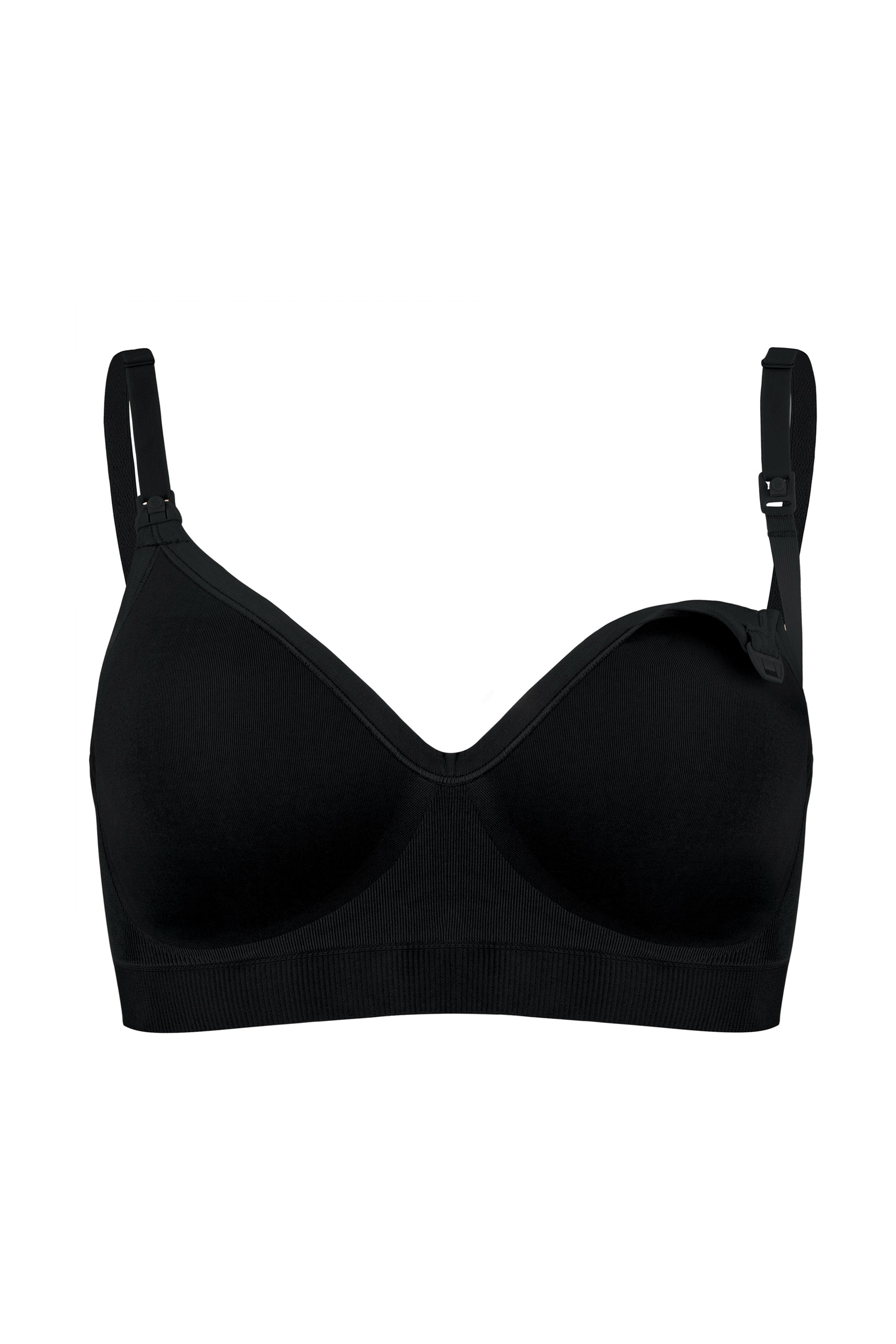 Der Eco Full Cup Plunge Still BH ohne Bügel wurde extra für ein größeres Brustvolumen (Cup G-J) designt. Der BH zaubert dank V-Ausschnitt und fest integrierter, gemoldeter Cups ein tolles Dekolleté und sorgt für angenehmen Halt. Der hochwertige, weiche, nahtlose 4-Wege Stretch passt sich deinem Körper perfekt an während der gesamten Schwangerschaft und Stillzeit und sorgt für einen hohen Tragekomfort. Zum Stillen kannst du die praktischen Still-Clips ganz einfach mit einer Hand öffnen und den BH herunterklappen, wodurch du maximalen Hautkontakt mit deinem Baby erhältst. Der Still BH wurde nach dem Oeko-Tex® Standard 100 getestet und zertifiziert. Farbe: schwarz
