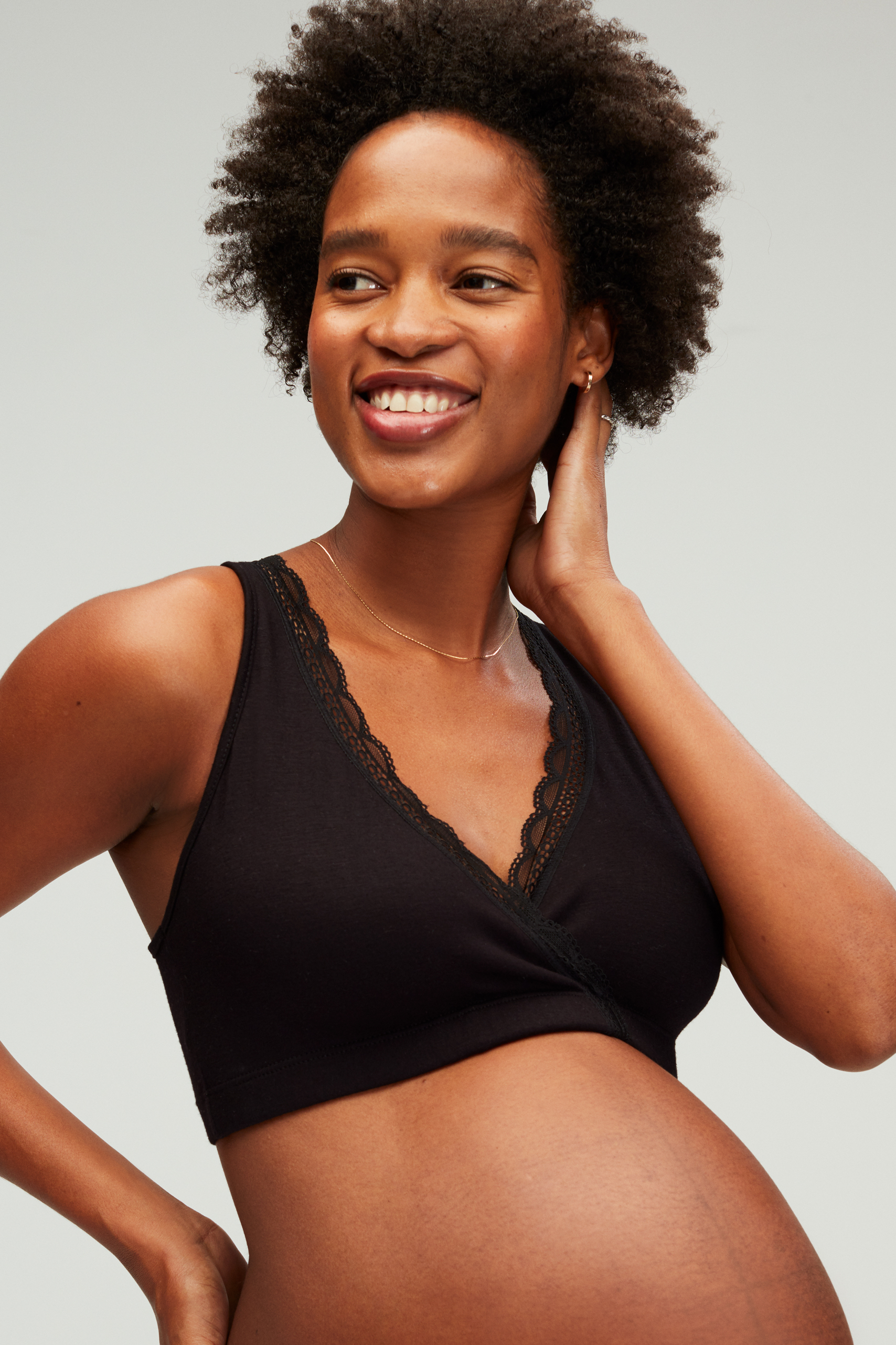 Schlaf Still BH ohne Bügel aus weicher Baumwolle, mit hübscher Spitzenborte am Cache-Coeur Auschnitt. Der verschlusslose Still BH passt sich deiner Brust auch schon während der Schwangerschaft optimal an und kann während der Stillzeit auch besonders gut nachts zum Stillen getragen werden. Dafür schiebst du ganz einfach die Cups im Cache-Coeur Design auseinander und erhälst einen einfachen und schnellen Stillzugang. Farbe: schwarz