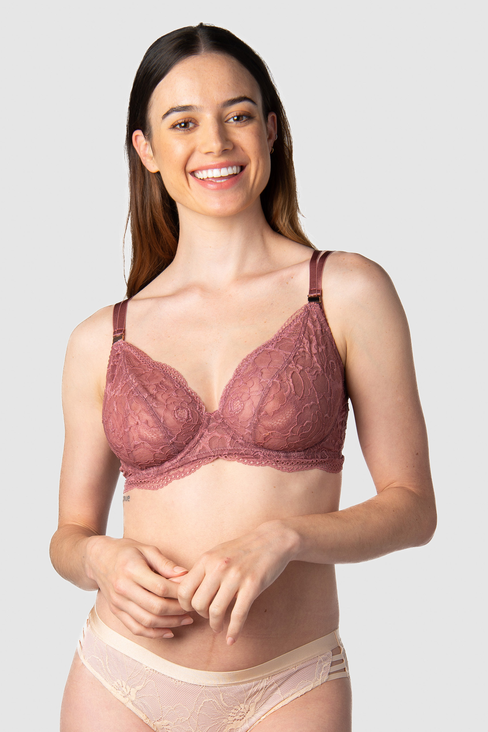 Plunge Schwangerschafts- und Still BH mit Flexibügeln, verführerischer Spitze und verstellbaren Doppelträgern. Das weiche Unterbrustband gibt deiner Brust optimalen Support. Der Still BH eignet sich perfekt unter tief ausgeschnittenen Tops und Kleidern. Roségoldene magnetische Still-Clips bieten dir während der Stillzeit einen unkomplizierten Zugang zur Brust. Farbe: berry