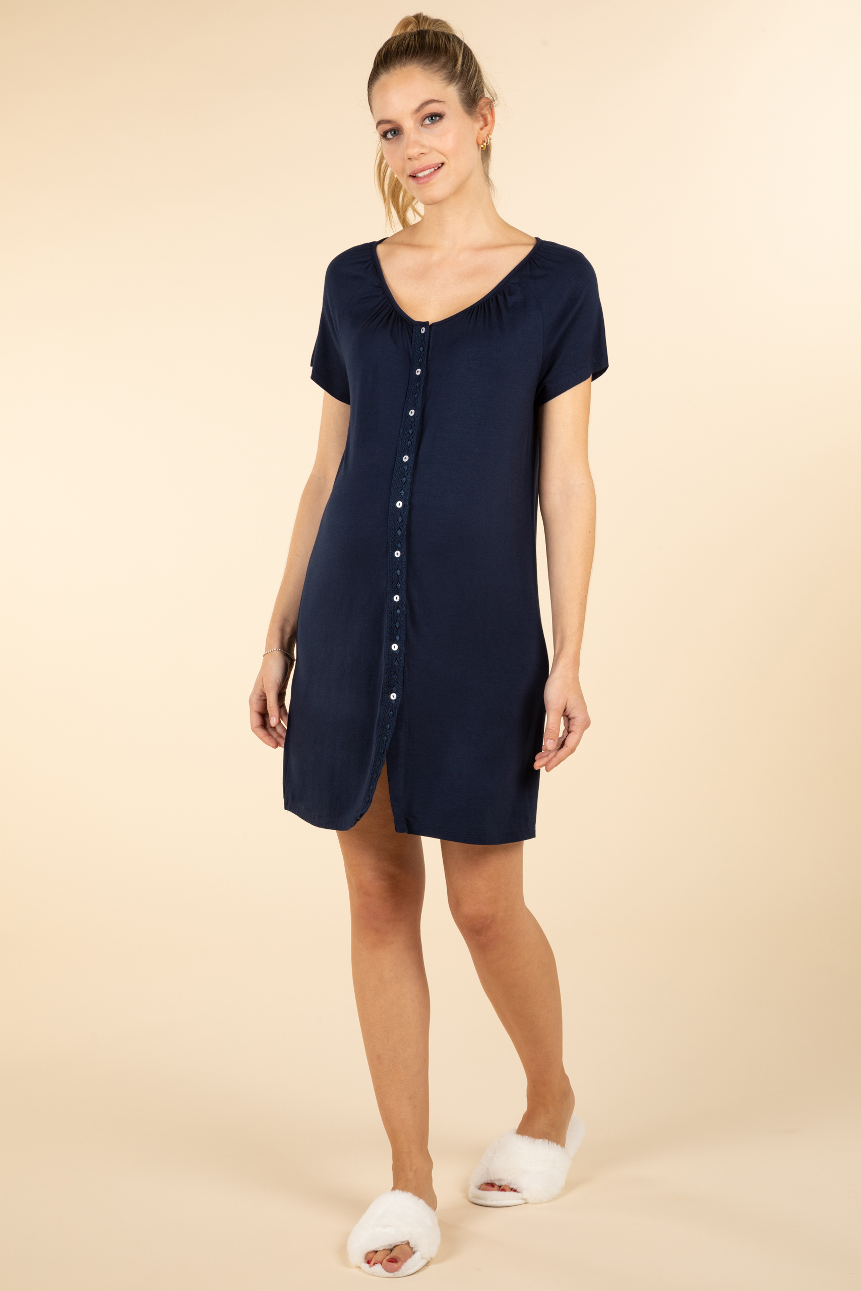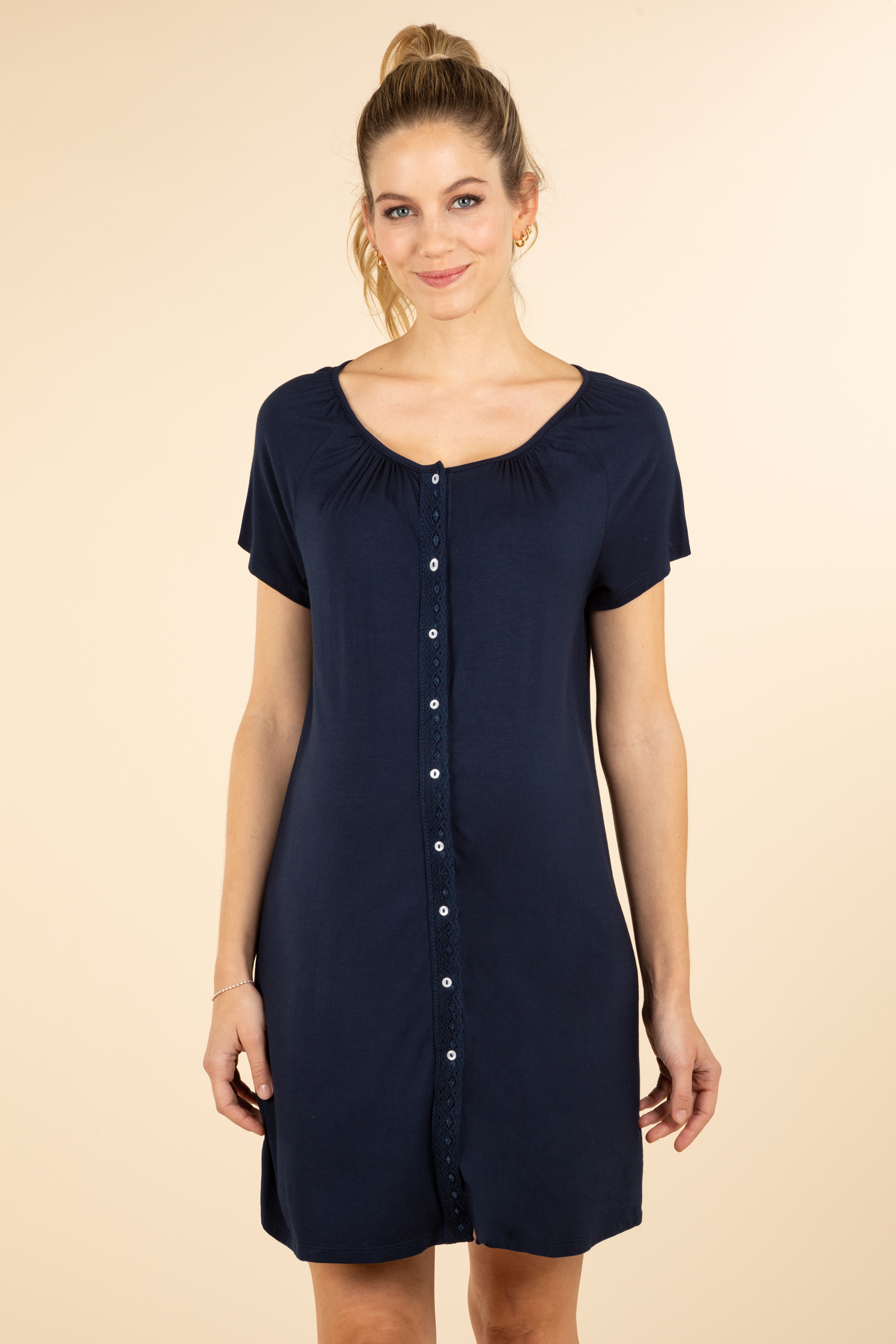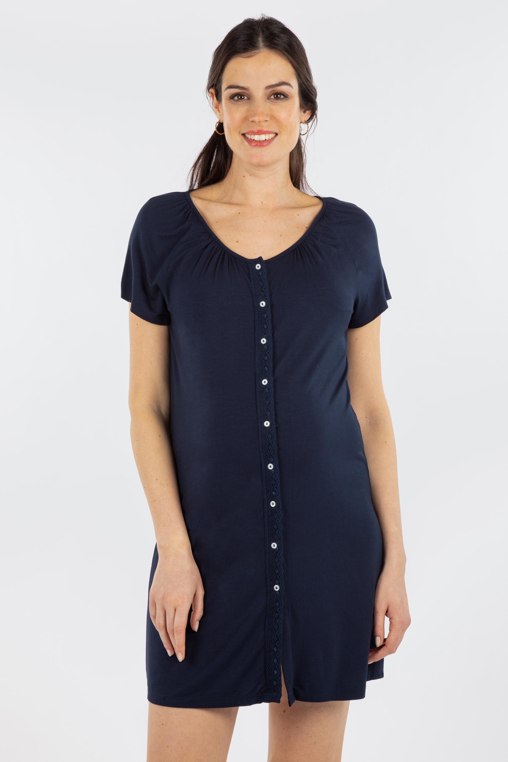 Eco Viskose Umstands- und Stillnachthemd zum Knöpfen navy