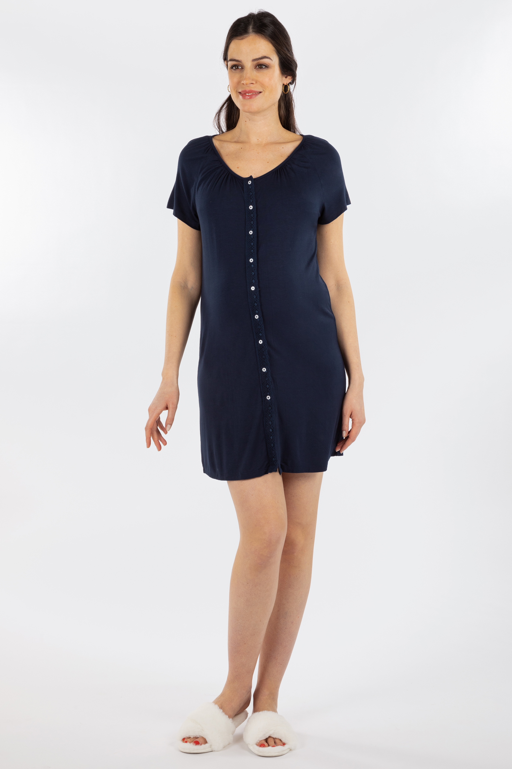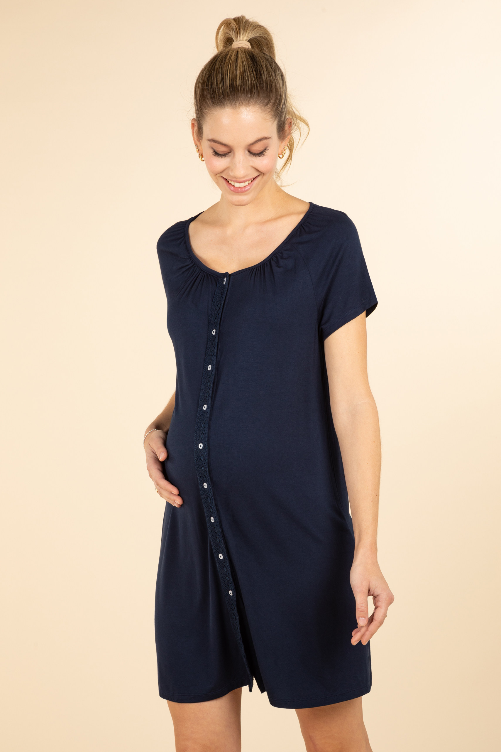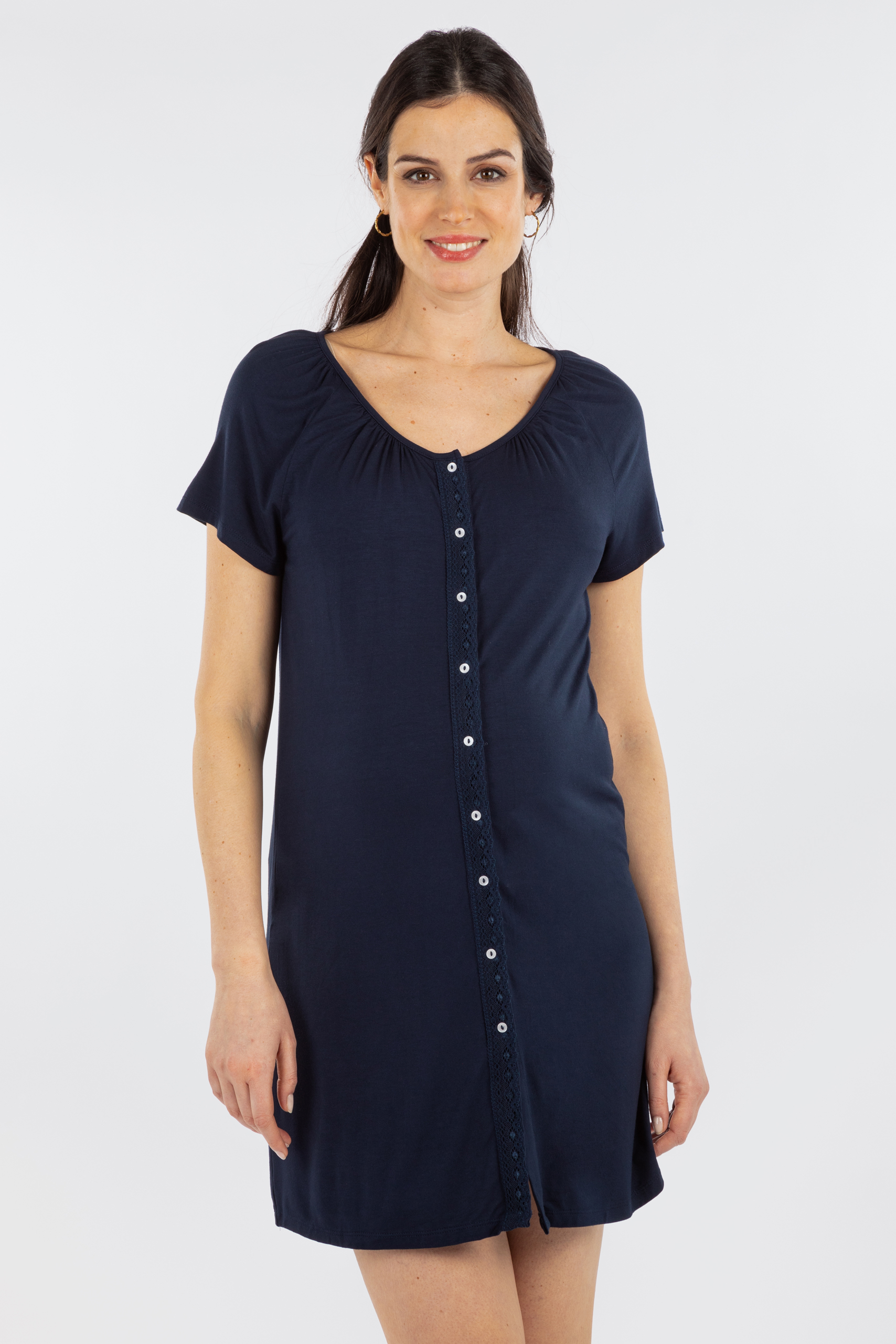 Eco Viskose Umstands- und Stillnachthemd zum Knöpfen navy