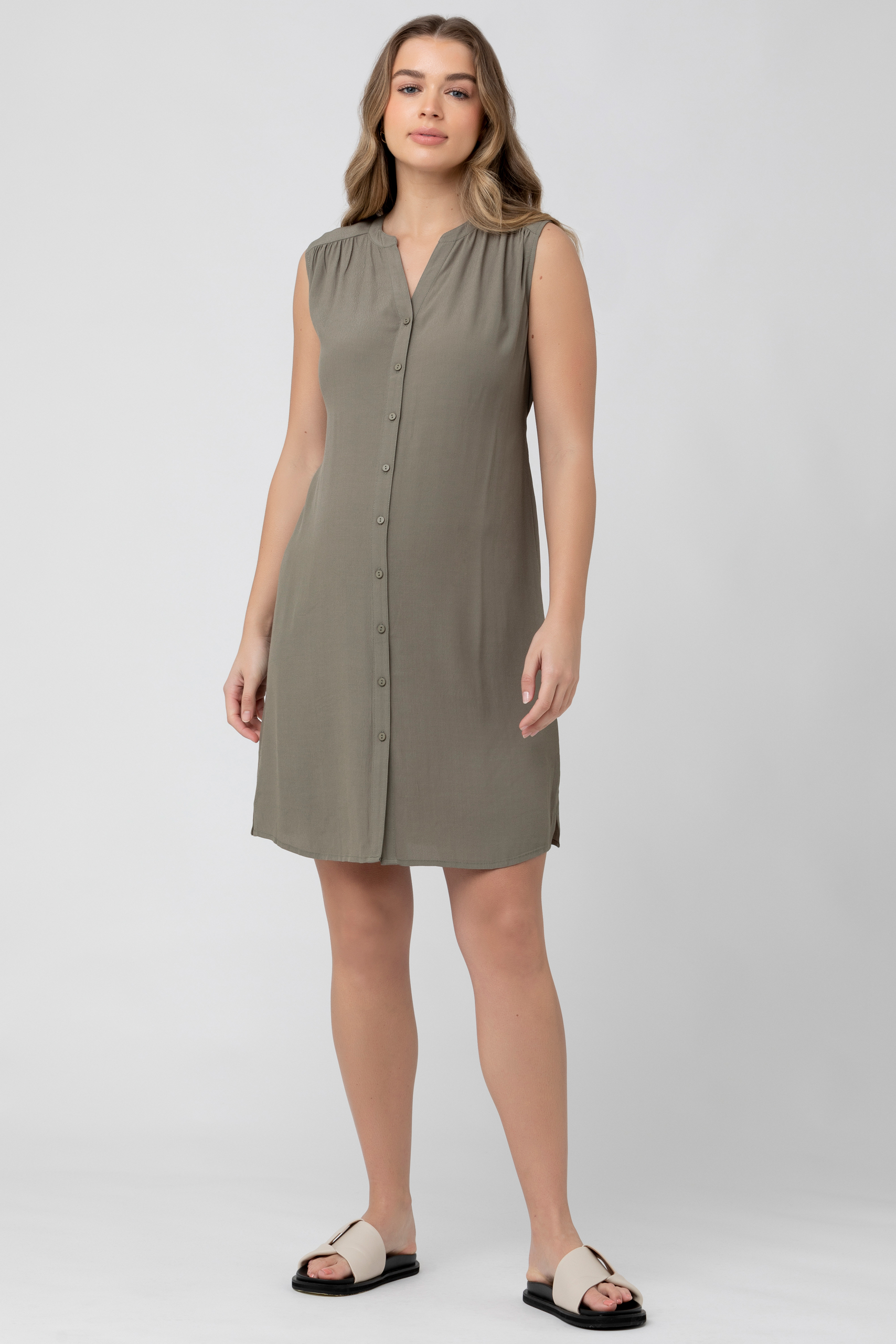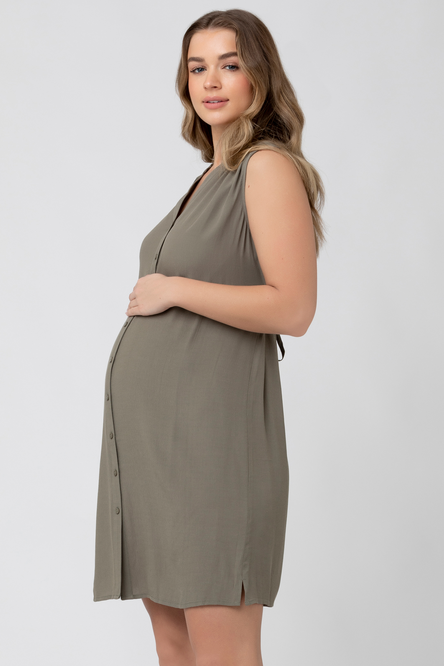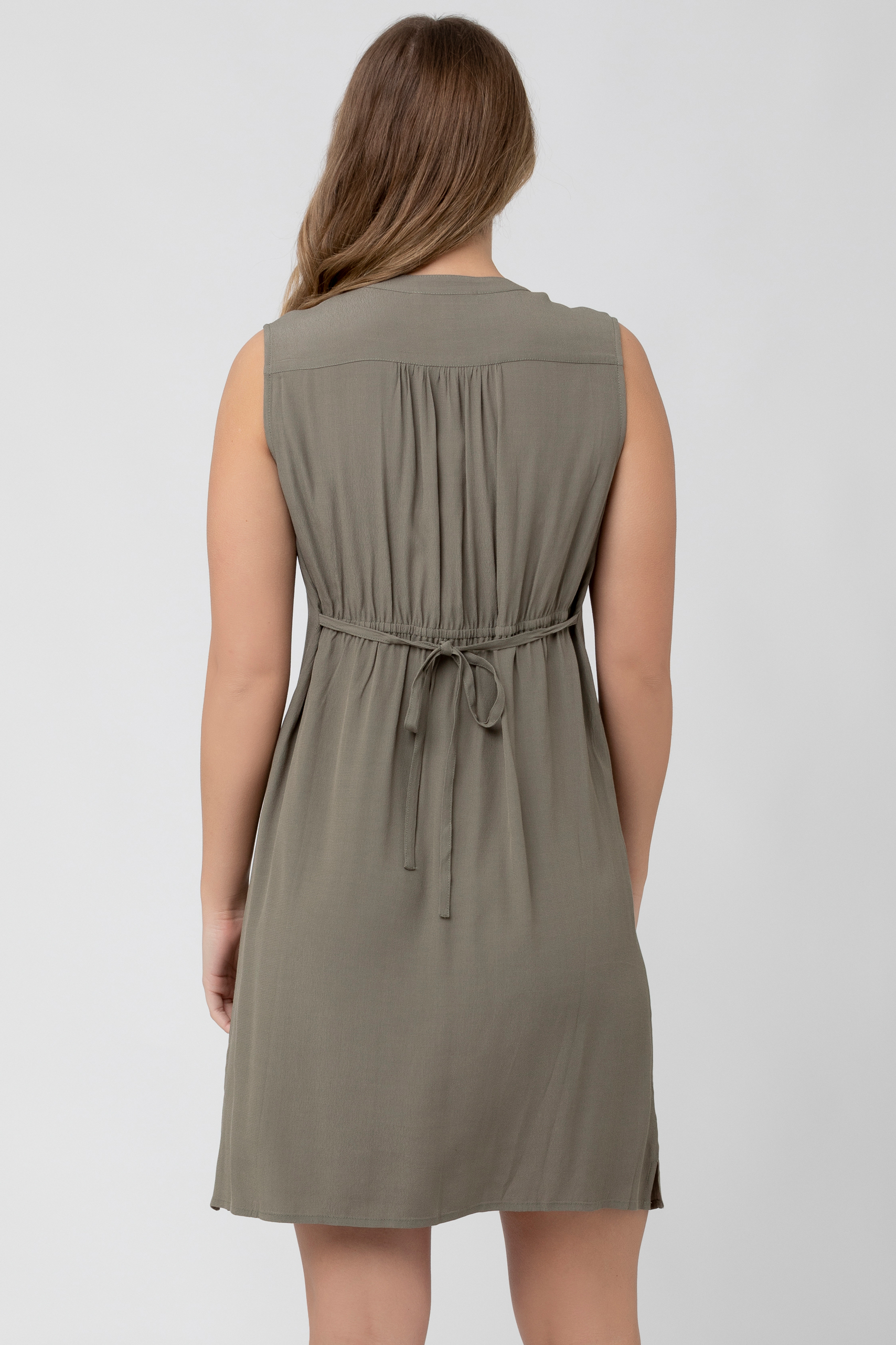Umstands- und Still-Tunikakleid in entspannter Passform ohne Ärmel und mit abgerundetem Saum. Durch den integrierten Bindegürtel kannst du das Kleid flexibel an deine Silhouette anpassen. Dank der durchgehenden Knopfleiste kannst du dein Baby nach der Geburt jederzeit ganz unkompliziert stillen. Farbe: khaki