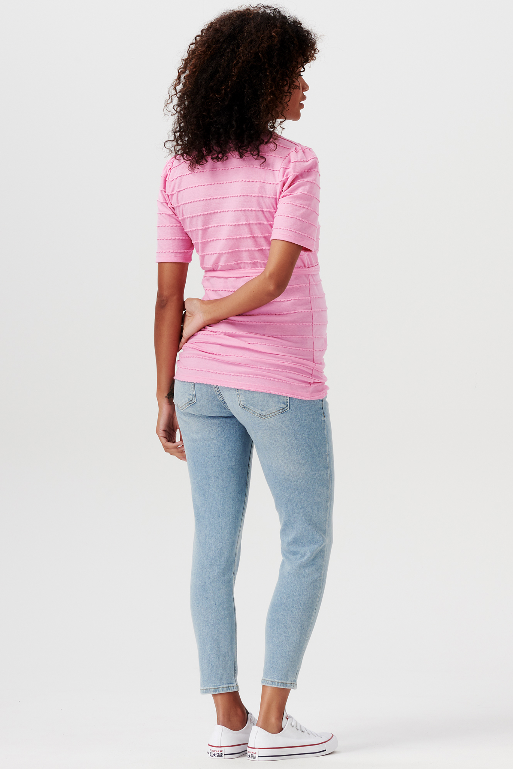 Umstands- und Stillshirt in Wickeloptik aus weichem Jersey-Stoff mit niedlichen Zierleisten. Den Bindegürtel unter der Brust kannst du beliebig anpassen, sodass deine Empire-Linie betont wird. Später kannst du dein Baby über den Cache-Coeur Ausschnitt ganz einfach stillen. Farbe: berry