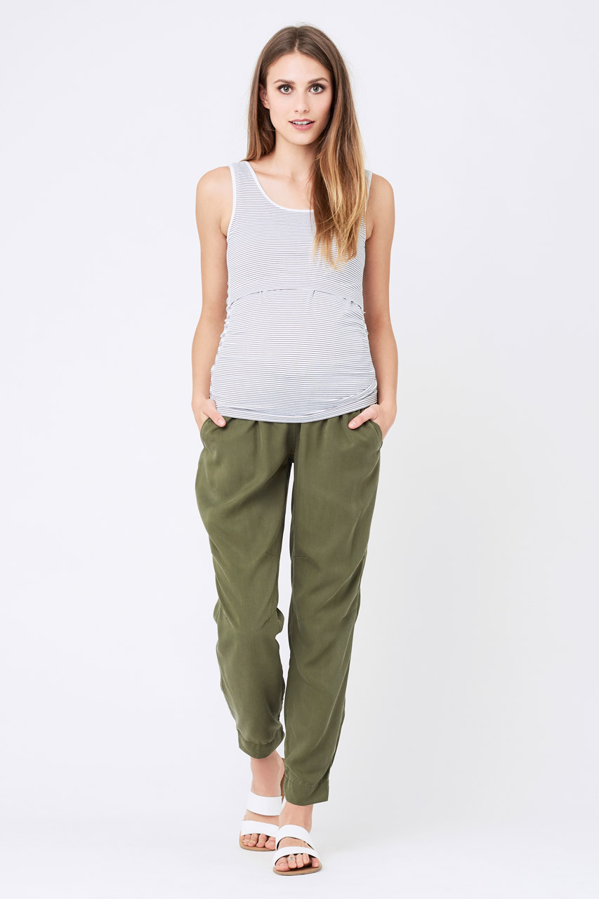 Umstands- und Still Tank-Top im Layered Look mit feinem Streifen-Muster und kontrastfarbenem Saum am Ausschnitt. Unter der oberen Stofflage verbirgt sich ein diskreter Stillzugang, so dass du das Top nach der Schwangerschaft noch lange weitertragen kannst. Farbe: grau/weiß