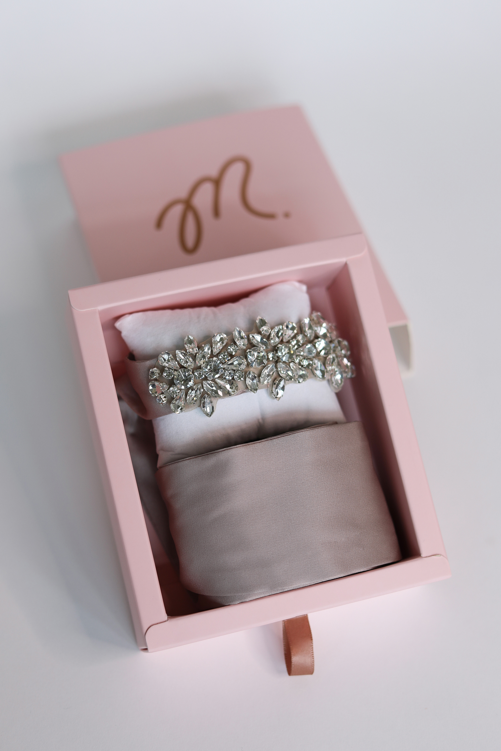 Schärpe mit Blumenmuster Verzierung die in Kombination mit deinem Brautkleid perfekt zur Geltung kommt. Das edele Assesoire mit bestickenten Schmucksteinen lässt dich strahlen an deinem großen Tag. Farbe: champagner