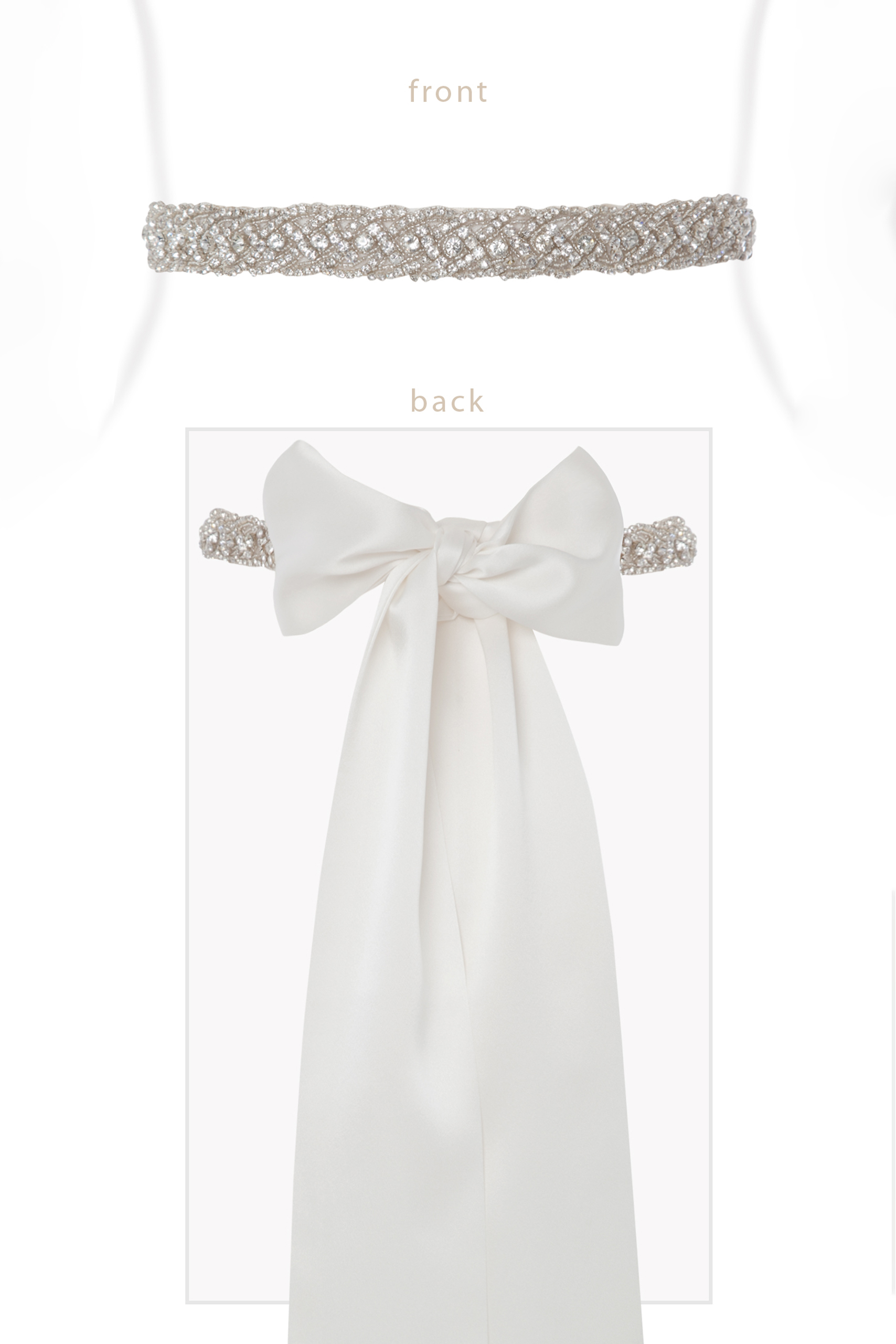 Schärpe zur glamourösen Betonung deiner Empire Linie für dein festliches Umstandskleid oder Brautkleid. Sie wurde aufwändig mit vielen, schimmernden Schmucksteinen bestickt. Maße: ca. 103cm x 2.5cm, Größe der Stickerei: 52.5 x 7cm (Mitte). Länge der Stickerei: 48cm. Farbe: silber