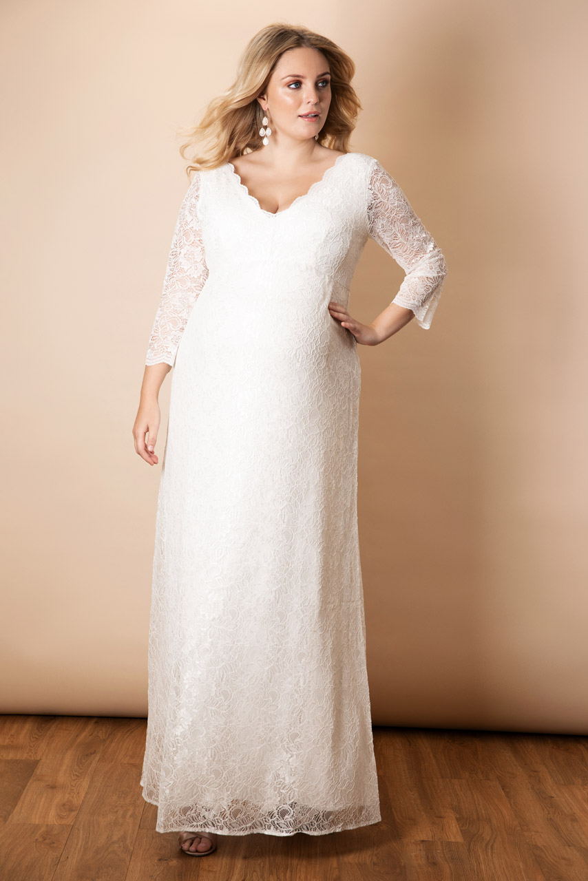 Plus Size Umstandsbrautkleid mit Spitzenärmeln lang