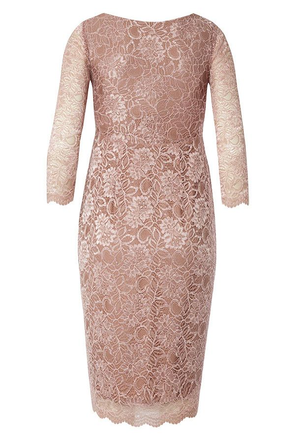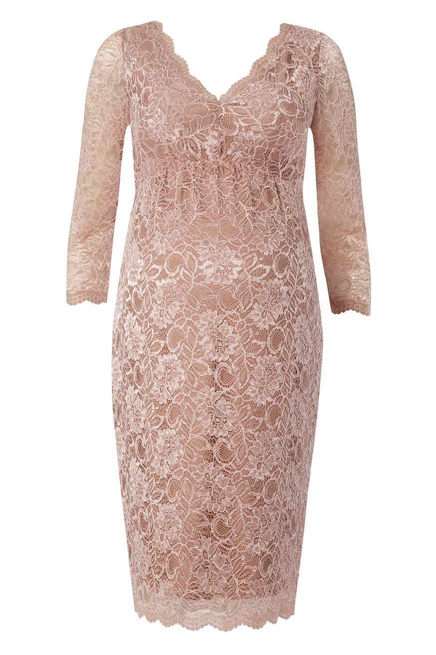 Kleid mit 3/4-Ärmeln aus hochwertiger Spitze. Das Unterkleid und die Spitze sind extra stretchig und sorgen für einen perfekten Sitz bei jeder Bauchgröße ohne aufzutragen. Der V-Ausschnitt ist besonders schön eingefasst, streckt optisch und betont dein schönes Schwangerschafts-Dekolletee. Kann an der Empire Linie mit einer unserer Schärpen (separat erhältlich) noch festlicher gestylt werden. Farbe: rose