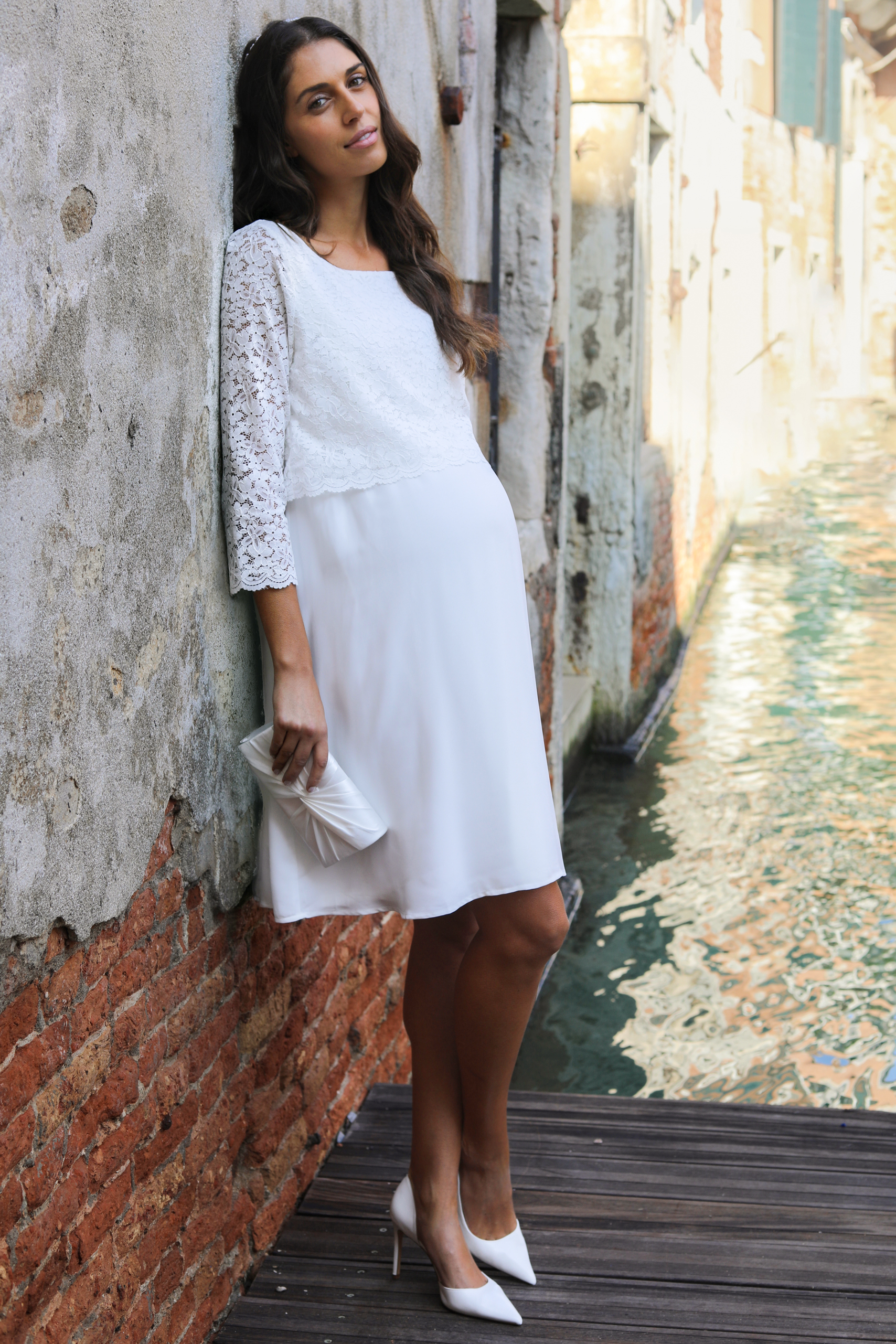 Umstands- und Stillbrautkleid mit 3/4 Ärmeln elfenbein