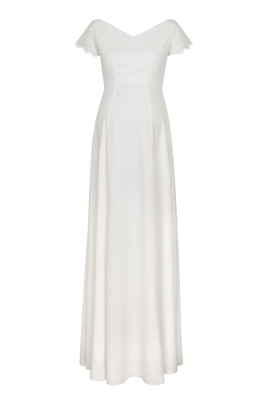 Umstandsbrautkleid mit Spitzenoberteil lang