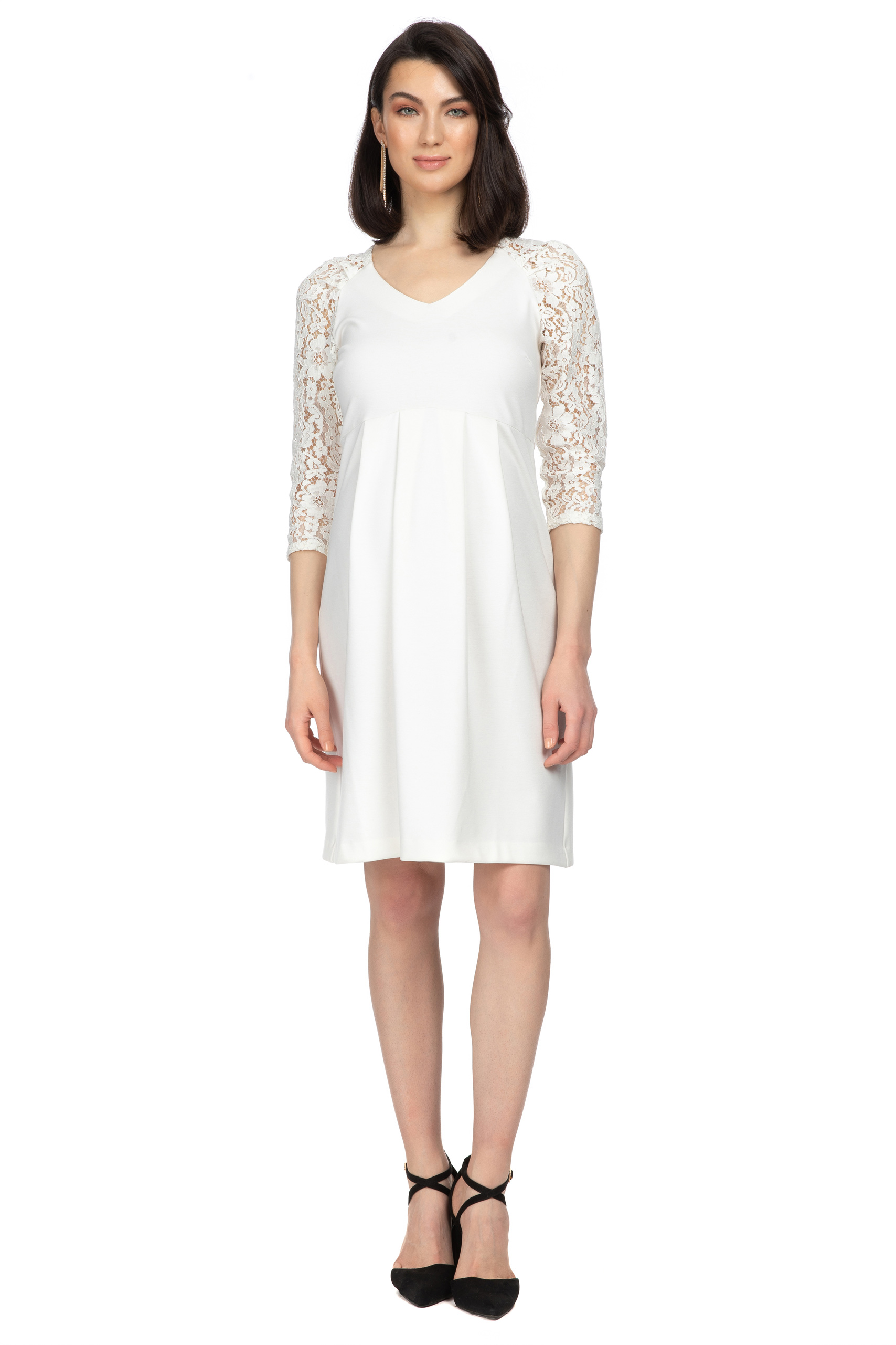 Kurzes Umstandsbrautkleid mit Spitzenärmeln elfenbein