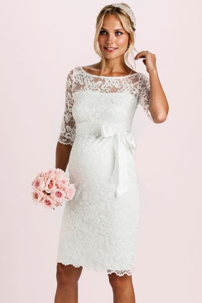 Bist du ein Fan von kurzen Brautkleidern? Mit unseren kurz geschnittenen Umstandskleidern aus floraler Spitze oder mit femininem Spitzenbustier lässt sich ebenfalls ein romantischer Vintage-Look kreieren. Über unseren klassischen Modellen aus weichem, fließenden Stoff kannst du als Kontrast ein locker sitzendes Spitzencape tragen. Zu einem kurzen Hochzeitskleid mit Spitze passen aufwändige Flechtfrisuren und Blumenkränze oder voluminöses, offenes Haar mit Vintage Spange. Antike Ohrringe in Weiß oder Rosé sind tolle Hingucker!