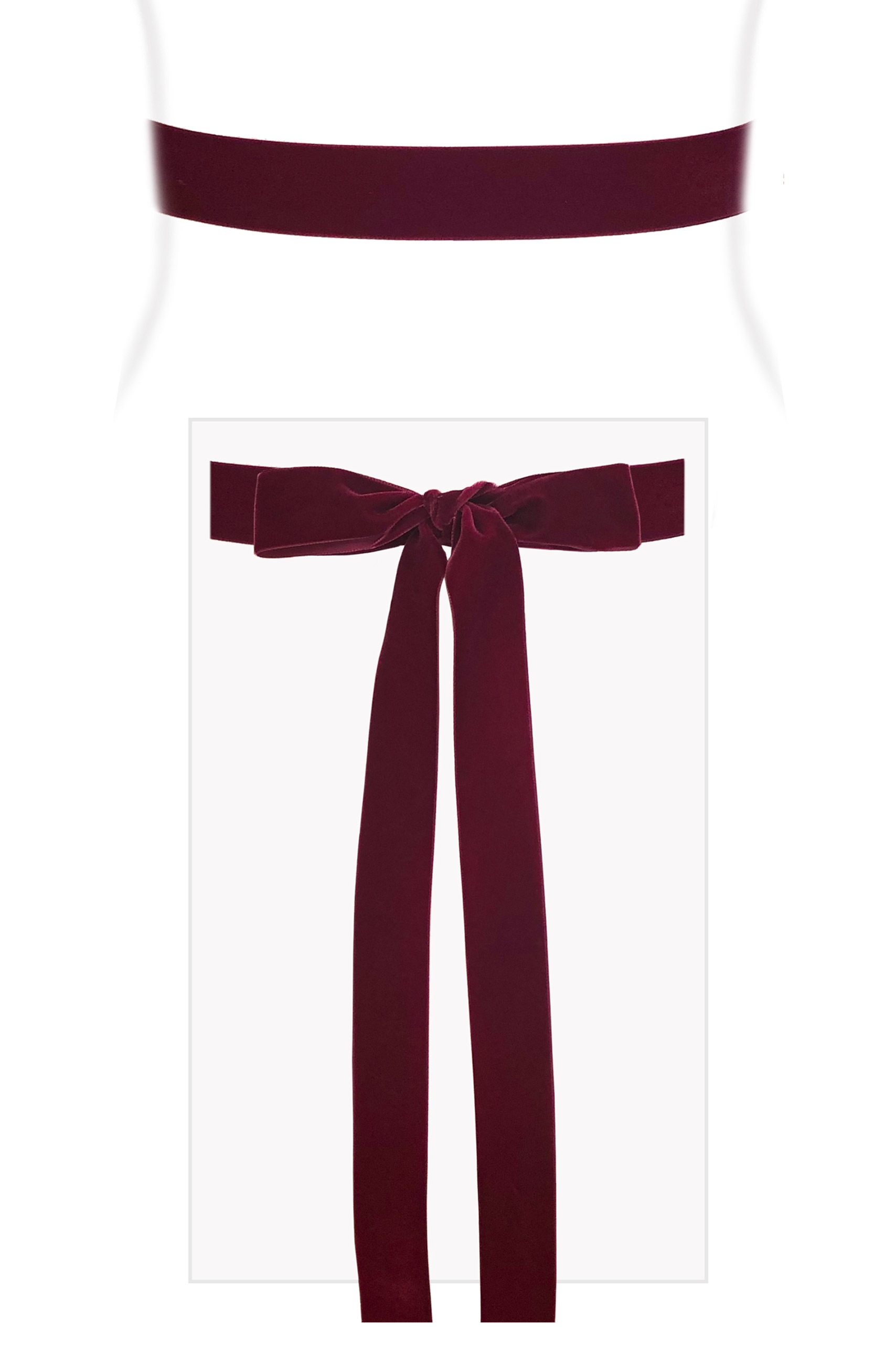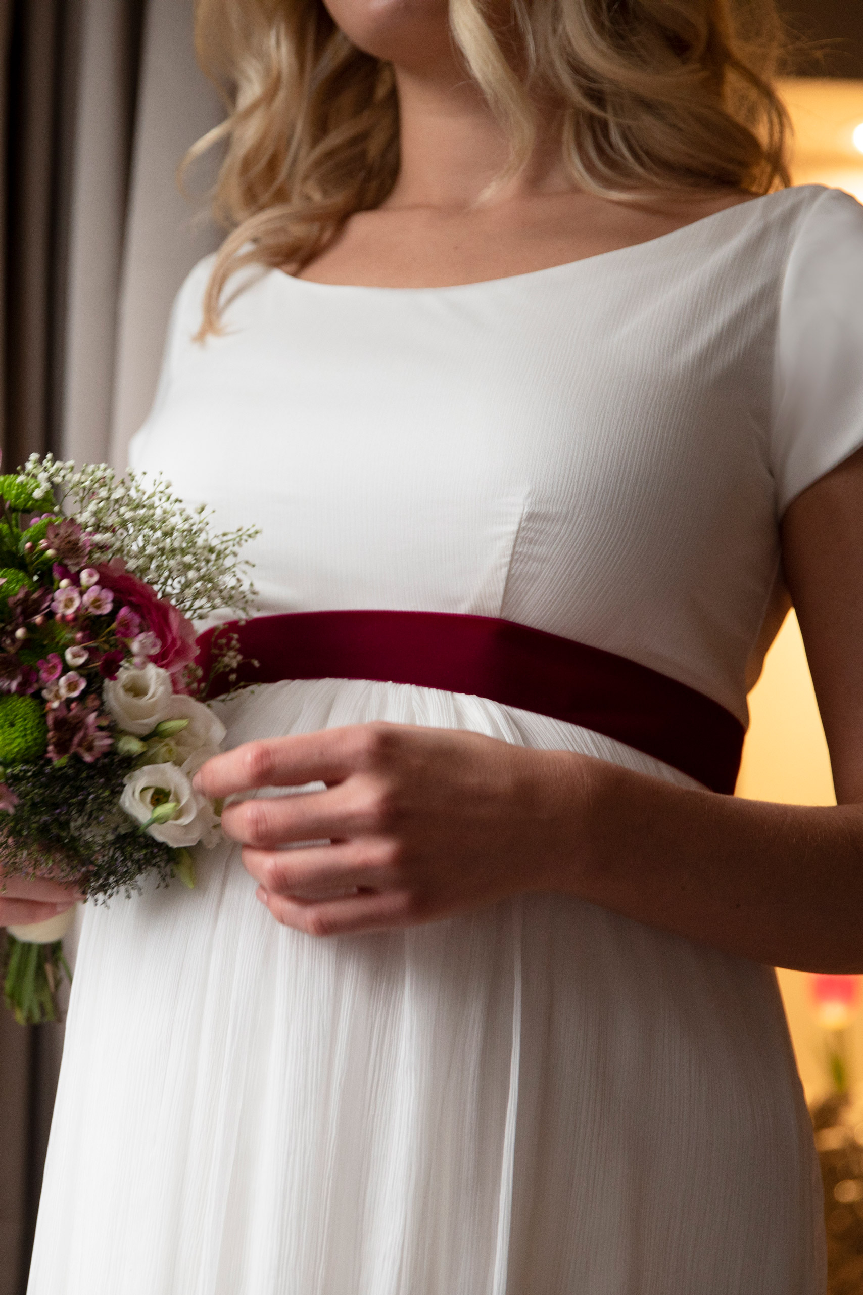 Schärpe aus weichem Samt zur Betonung der Empire Linie. Die ideale Ergänzung zu unseren festlichen Umstandskleidern und Brautumstandskleidern. Maße: ca. 180cmx3.6cm. Farbe: burgund