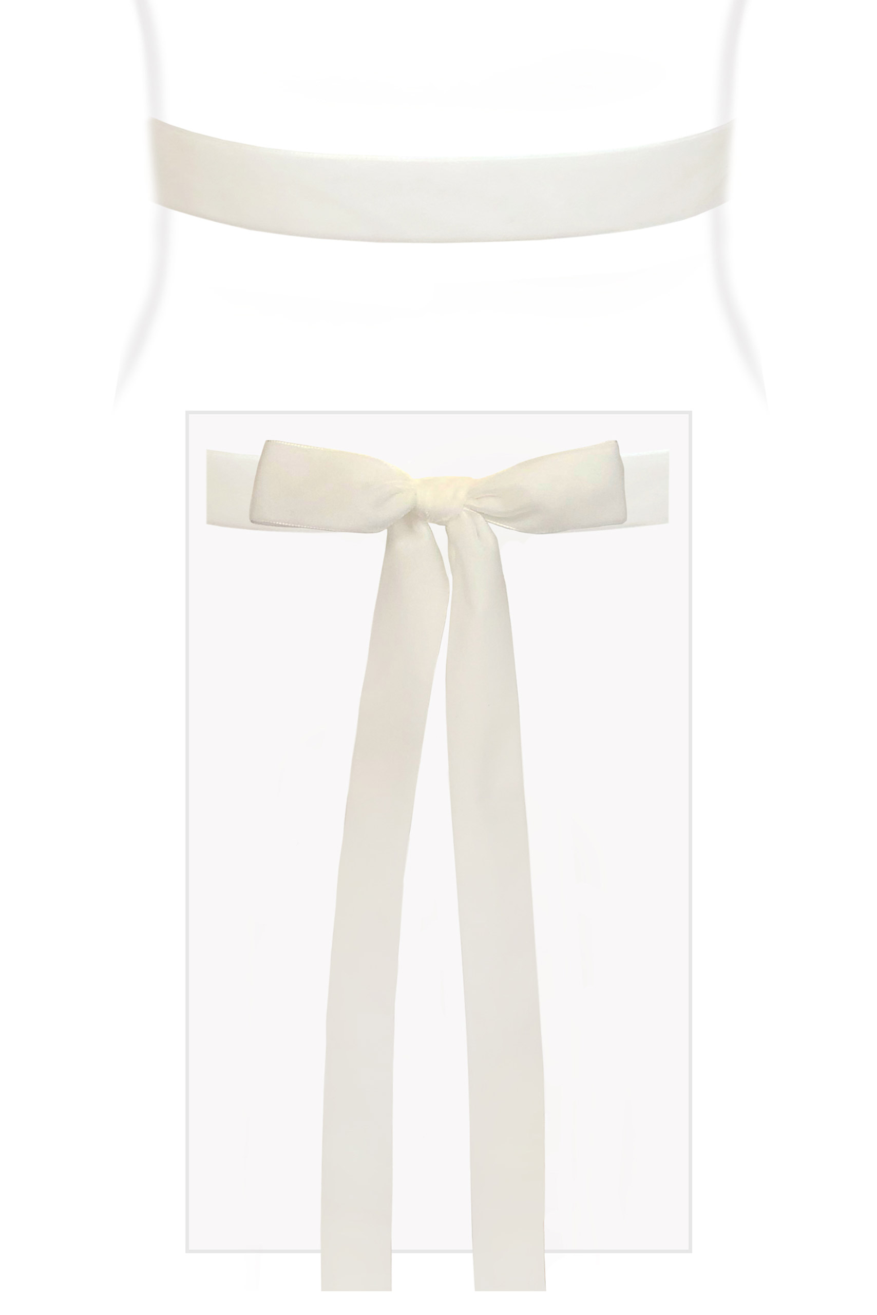 Schärpe aus weichem Samt zur Betonung der Empire Linie. Die ideale Ergänzung zu unseren festlichen Umstandskleidern und Brautumstandskleidern. Maße: ca. 180cm x 3.6cm. Farbe: weiß