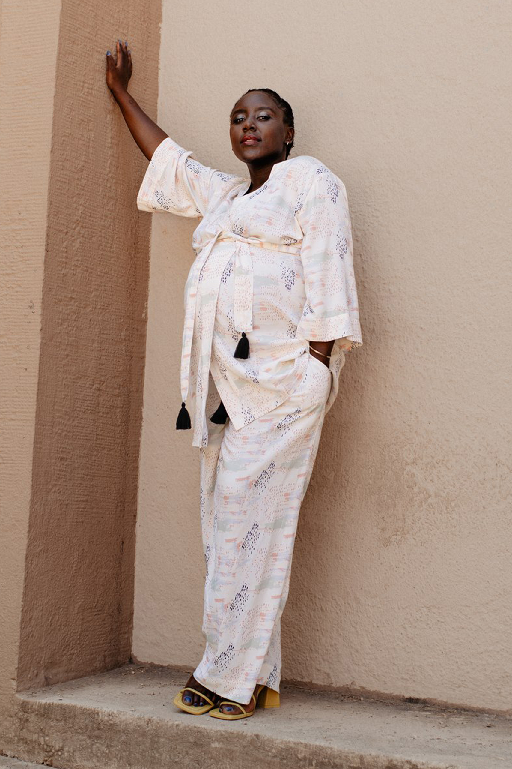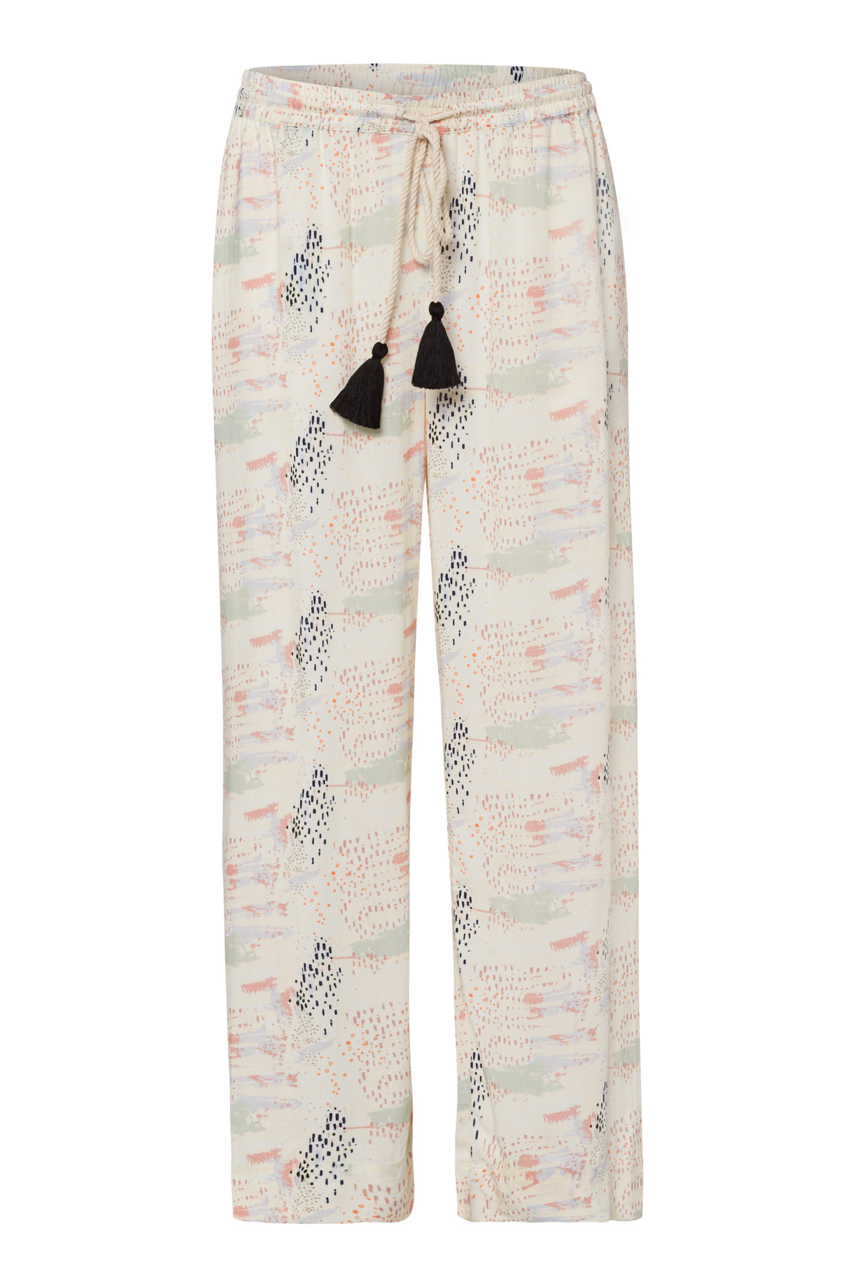 Umstandshose mit Quastengürtel aus weicher Viskose. Durch den luftigen Schnitt der Hose, ist sie angenehm zu tragen. Dank des integrierten Gürtels kannst du die Hose so eng tragen, wie du sie möchtest. Farbe: print
