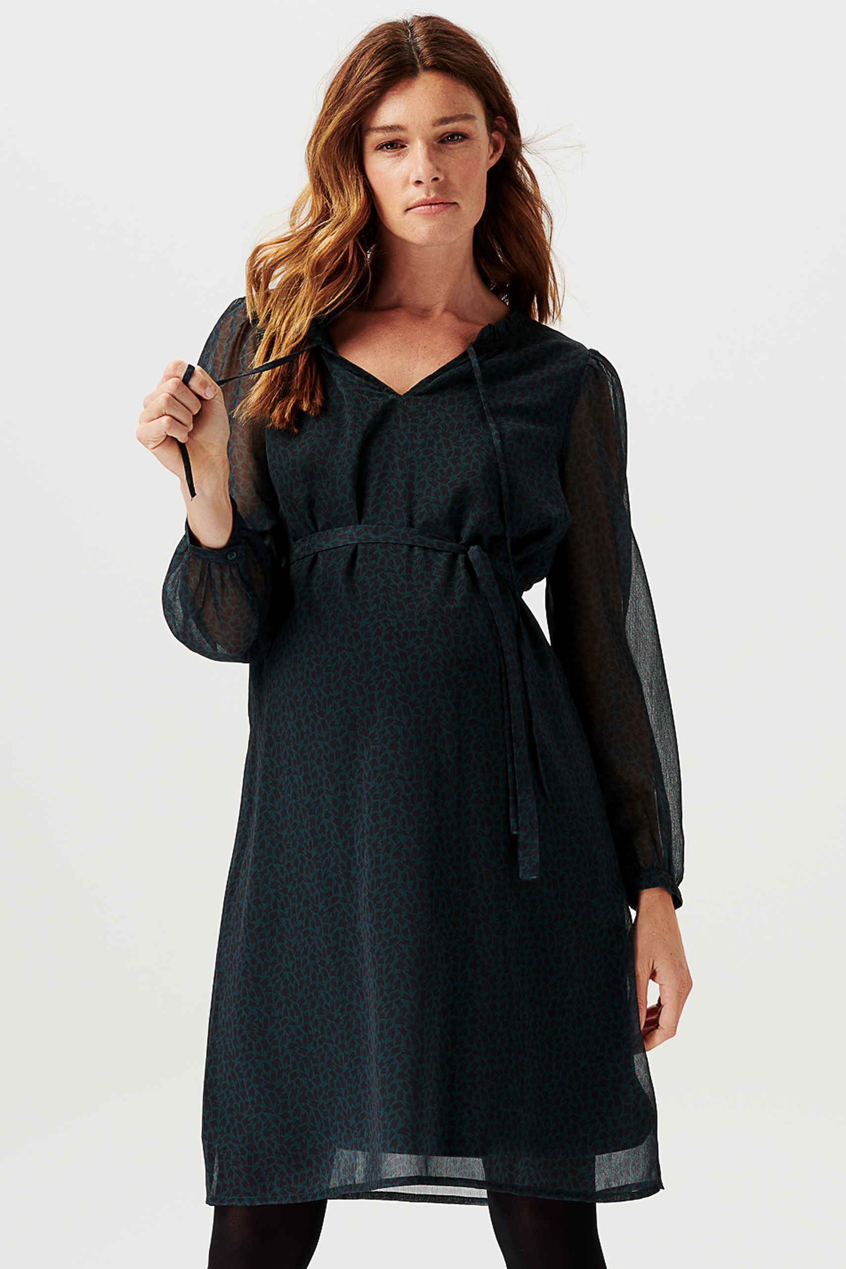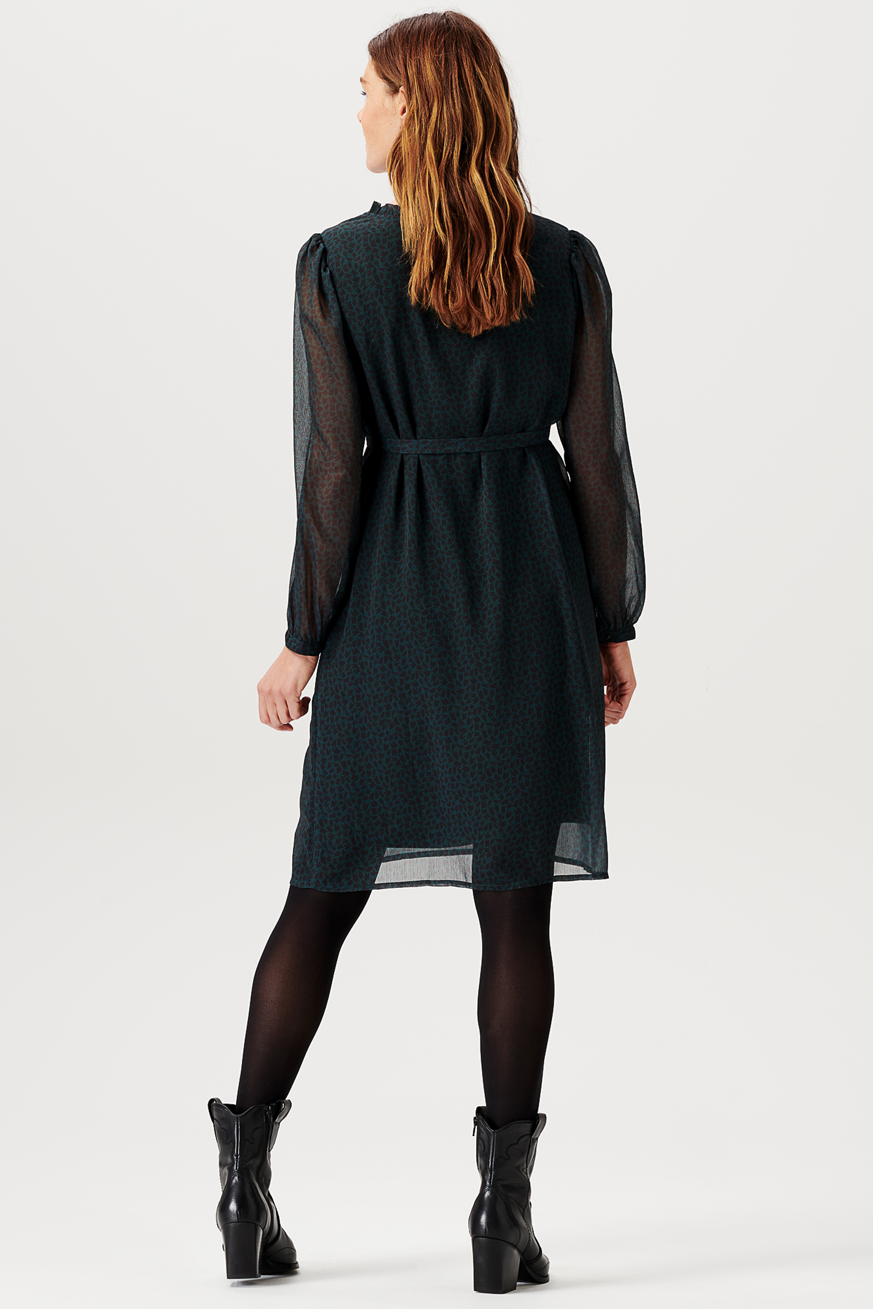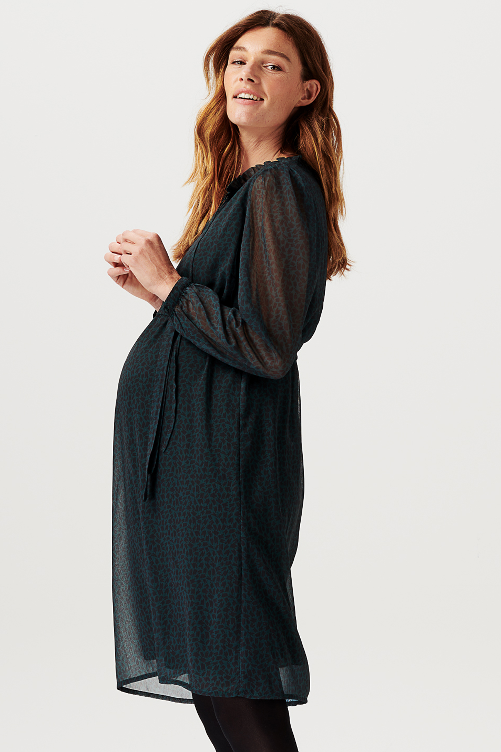 Eco Langarm Umstandskleid mit transparenten Puffärmeln und Bindegürtel aus recyceltem Material. Der transparente Stoff, welcher sich im Design durchgängig wiederfindet, macht das Kleid zu einem einzigartigen Eye-Catcher. Unterhalb der Brust befindet sich ein Bindegürtel, welcher vorne über deinem Babybauch oder hinten am Rücken gebunden werden kann. Dadurch erhältst du in deiner gesamten Schwangerschaft eine charmante Silhouette. Durch die modernen Details kannst du das Kleid nicht nur lässig, sondern auch charmant für schicke Anlässe kombinieren. Farbe: grün