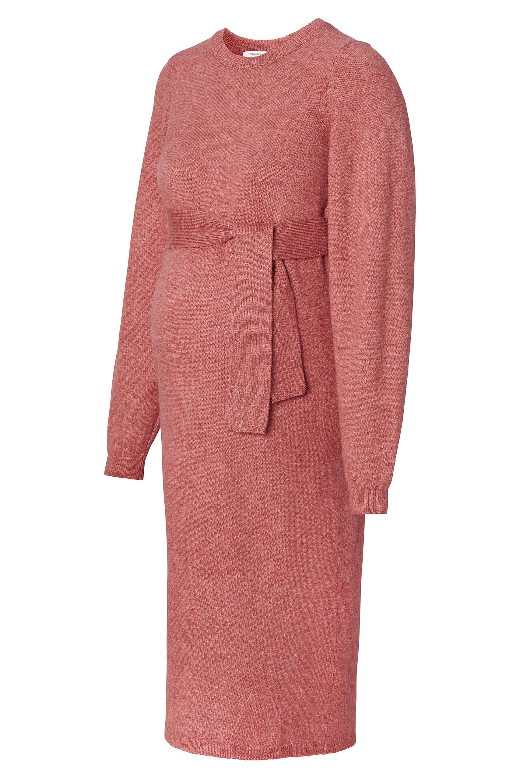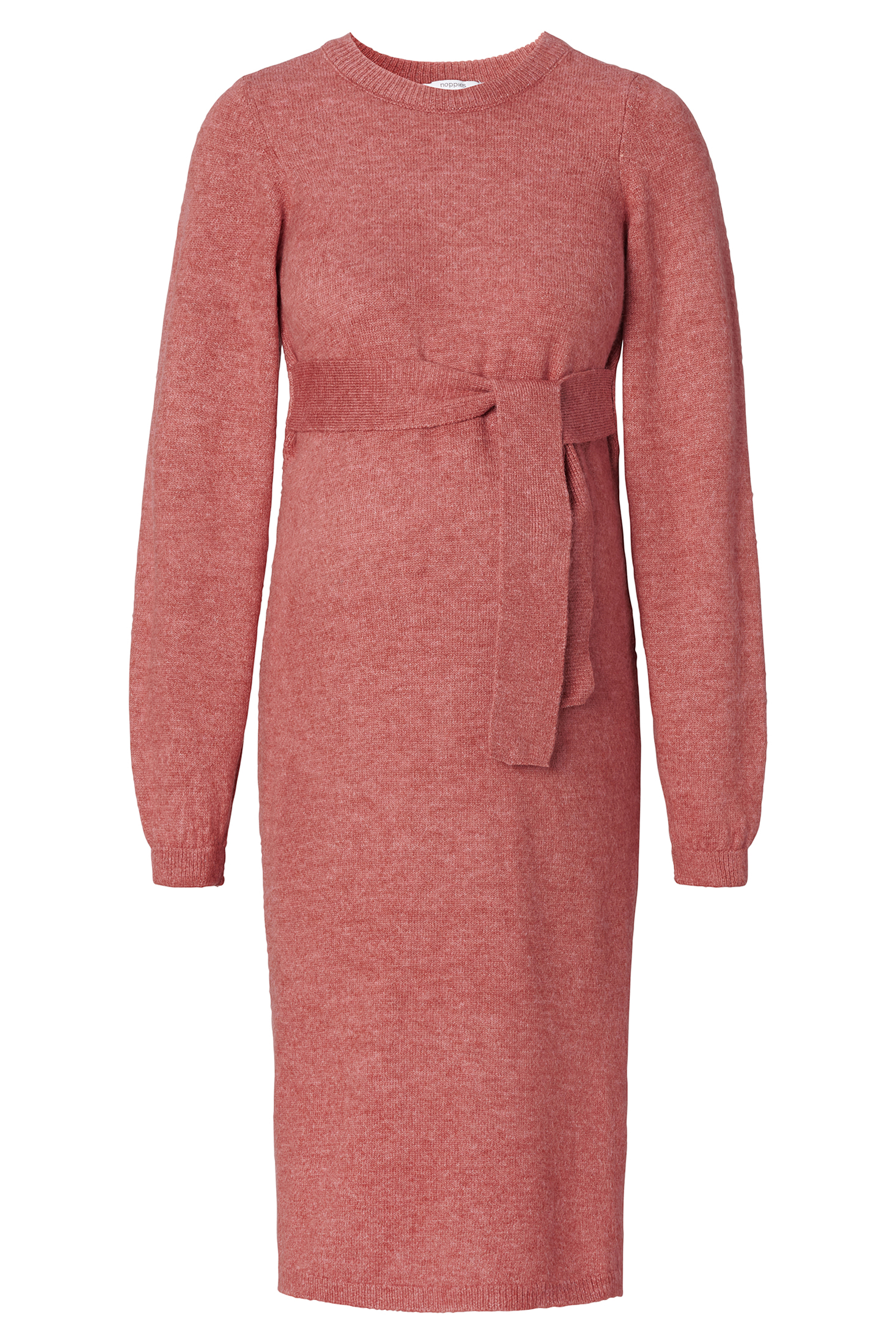 Eco Umstandsstrickkleid mit Bindegürtel aus ultra softem Material. Das Kleid trägt sich angenehm weich auf der Haut und schmiegt sich wunderbar leicht an deinen wachsenden Babybauch an. Der eingenähte Gürtel kann vorn unter der Brust oder hinten am Rücken gebunden werden und sorgt in jeder Phase der Schwangerschaft für eine tolle Silhouette. Kombiniere das Kleid mit Sneakern oder Stiefeln für einen bequemen Alltagslook bei jedem Wetter. Farbe: terracotta