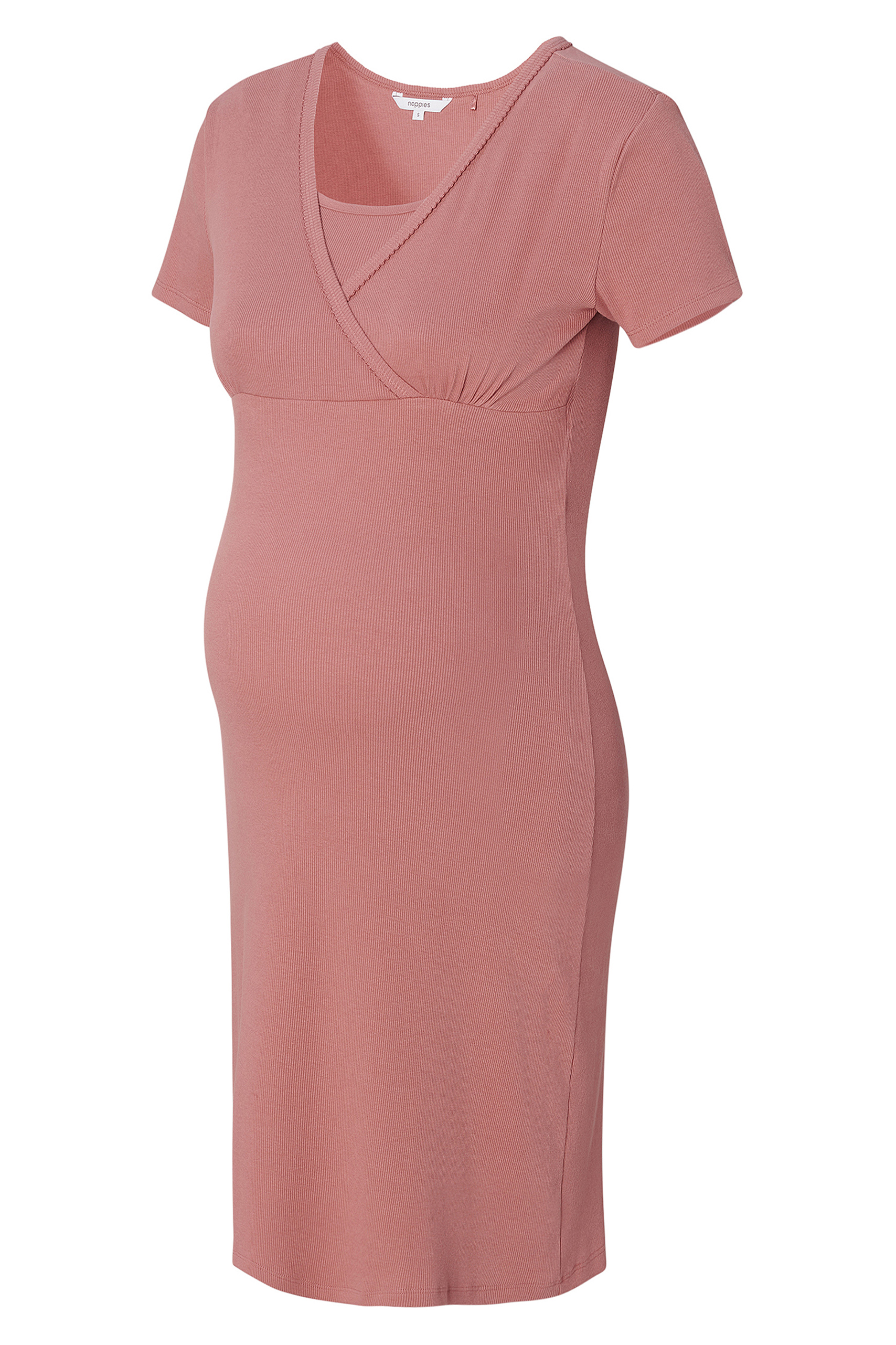 Organic Ripp Umstands- und Stillnachthemd kurzarm light terracotta