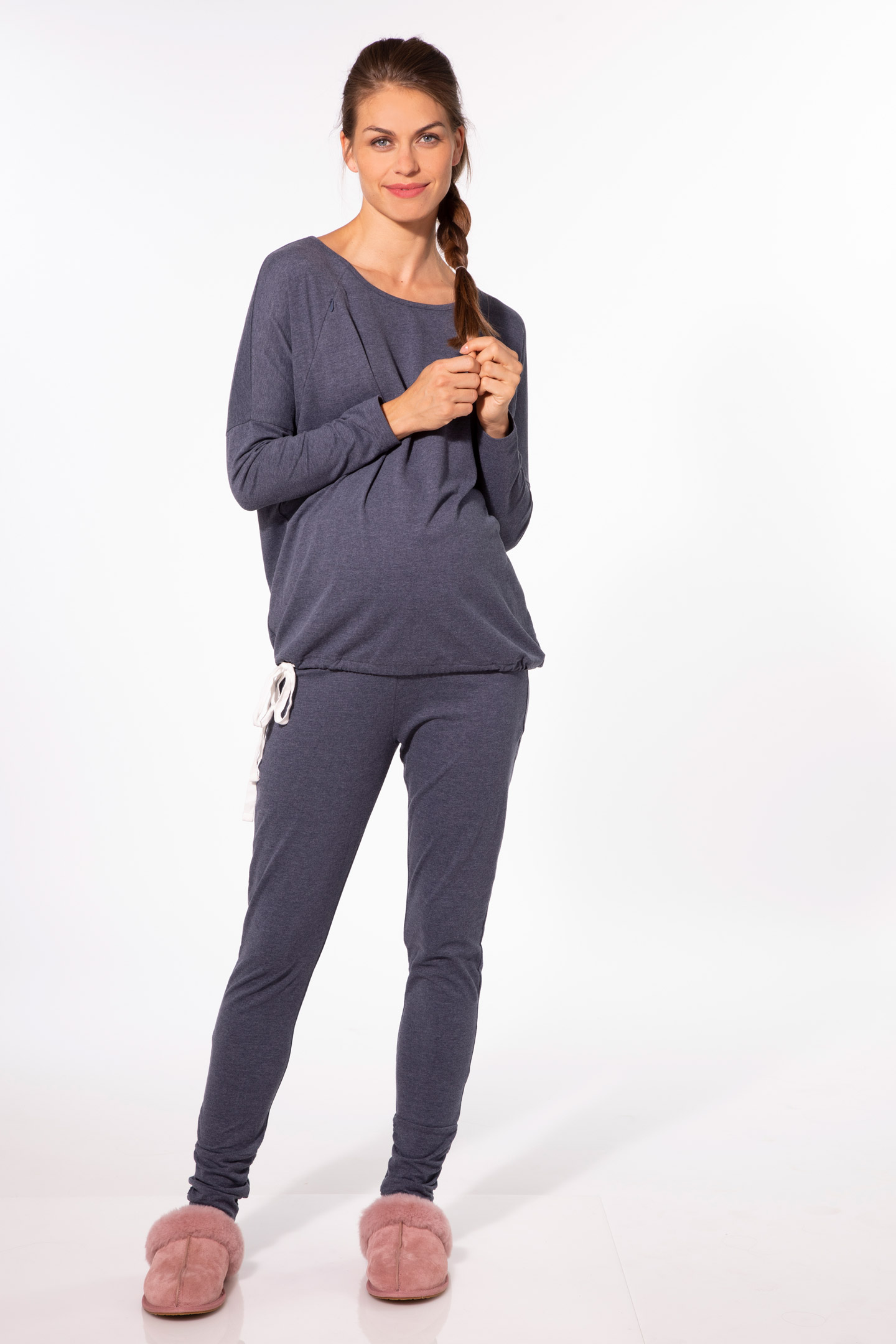 Hier findest du das passende Umstandsshirt: Lounge- und Pyjama-Shirt mit Still-Öffnung blau melange >>
