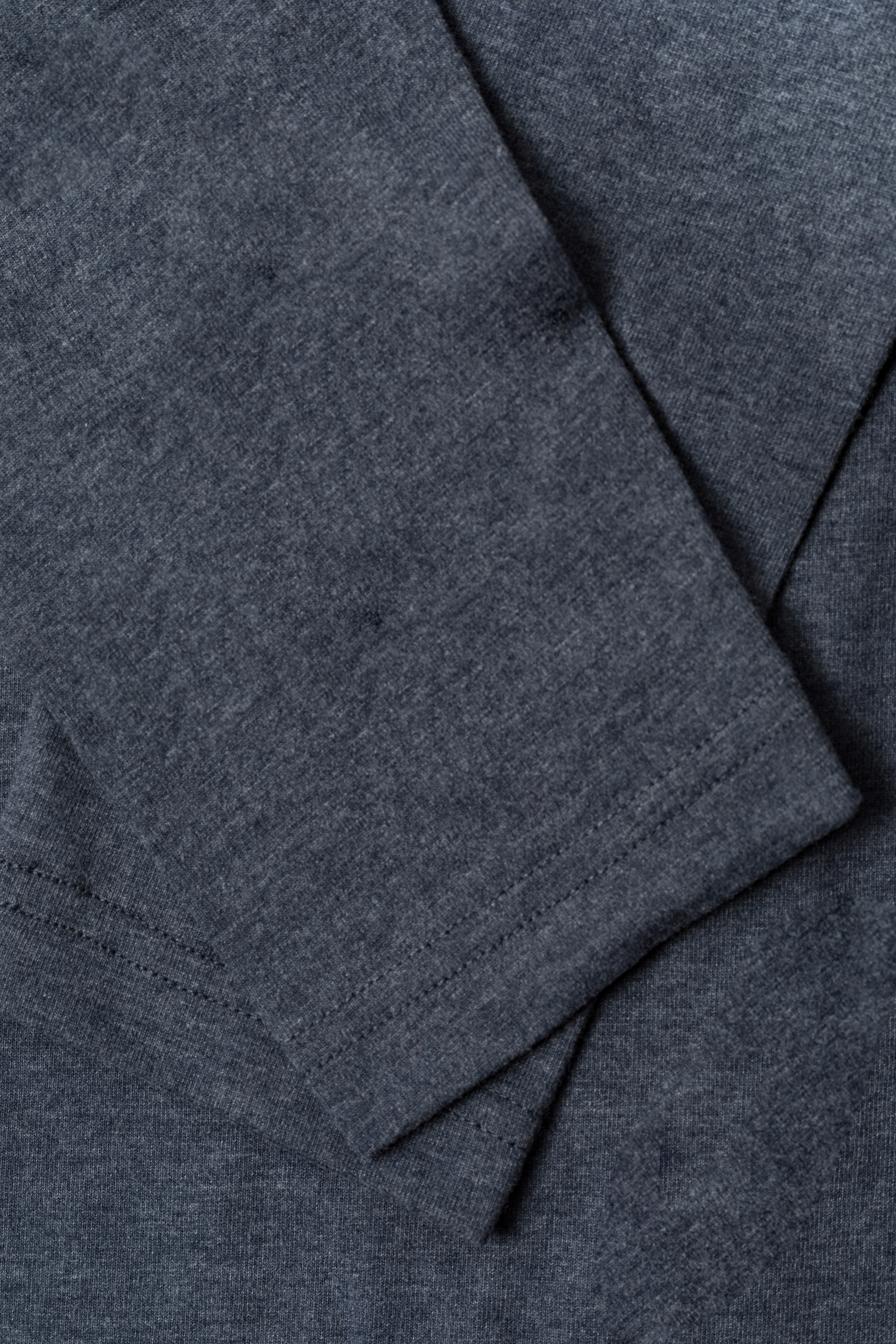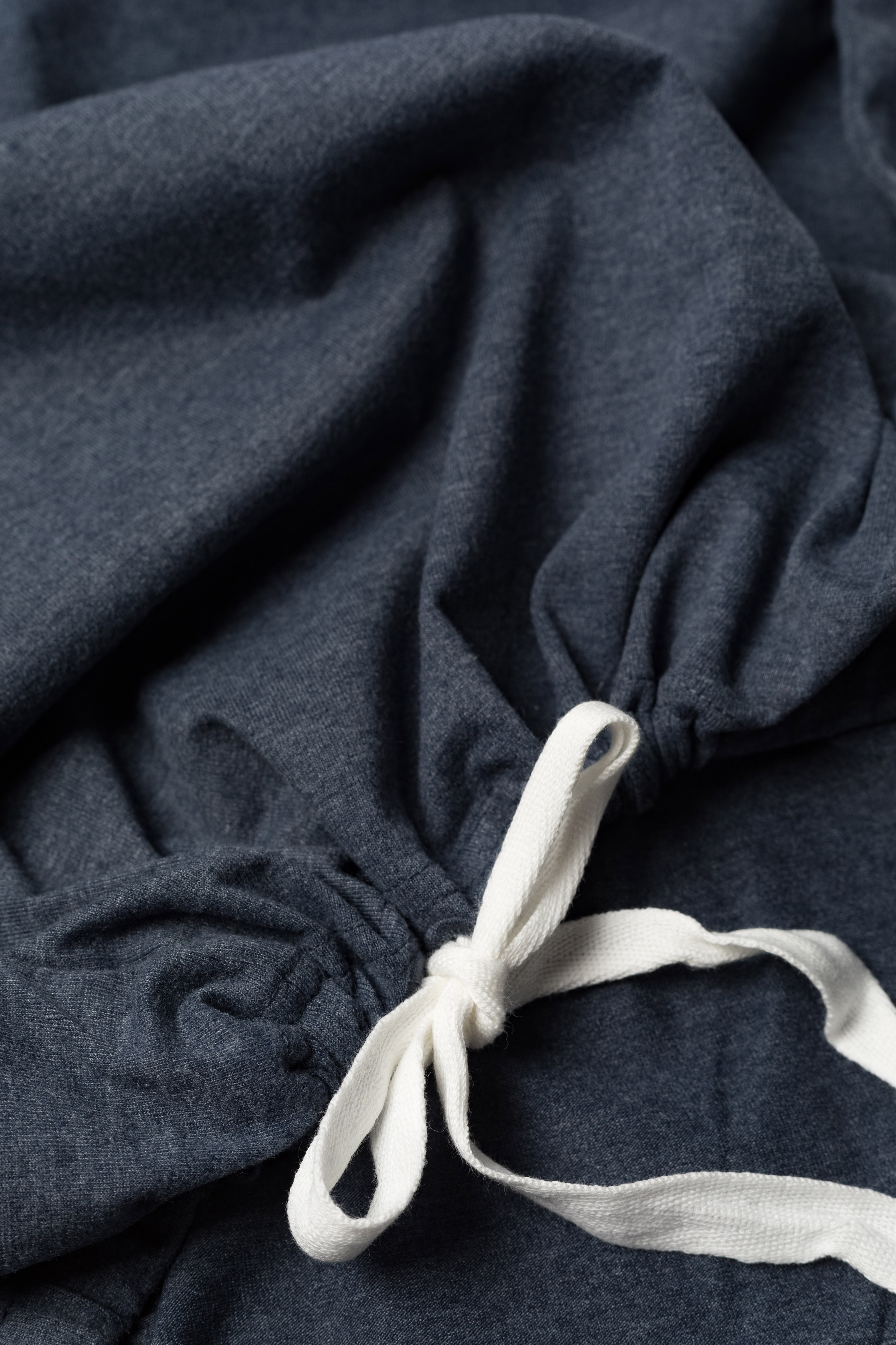 Lounge- und Pyjama Umstandsshirt mit Tunnelzug, Rundhalsausschnitt und langen Batwing-Ärmeln. Die Reißverschlüsse ermöglichen dir nach der Schwangerschaft einen Stillzugang. Über den Tunnelzug kannst du die Weite des Tops regulieren. Farbe: blau melange