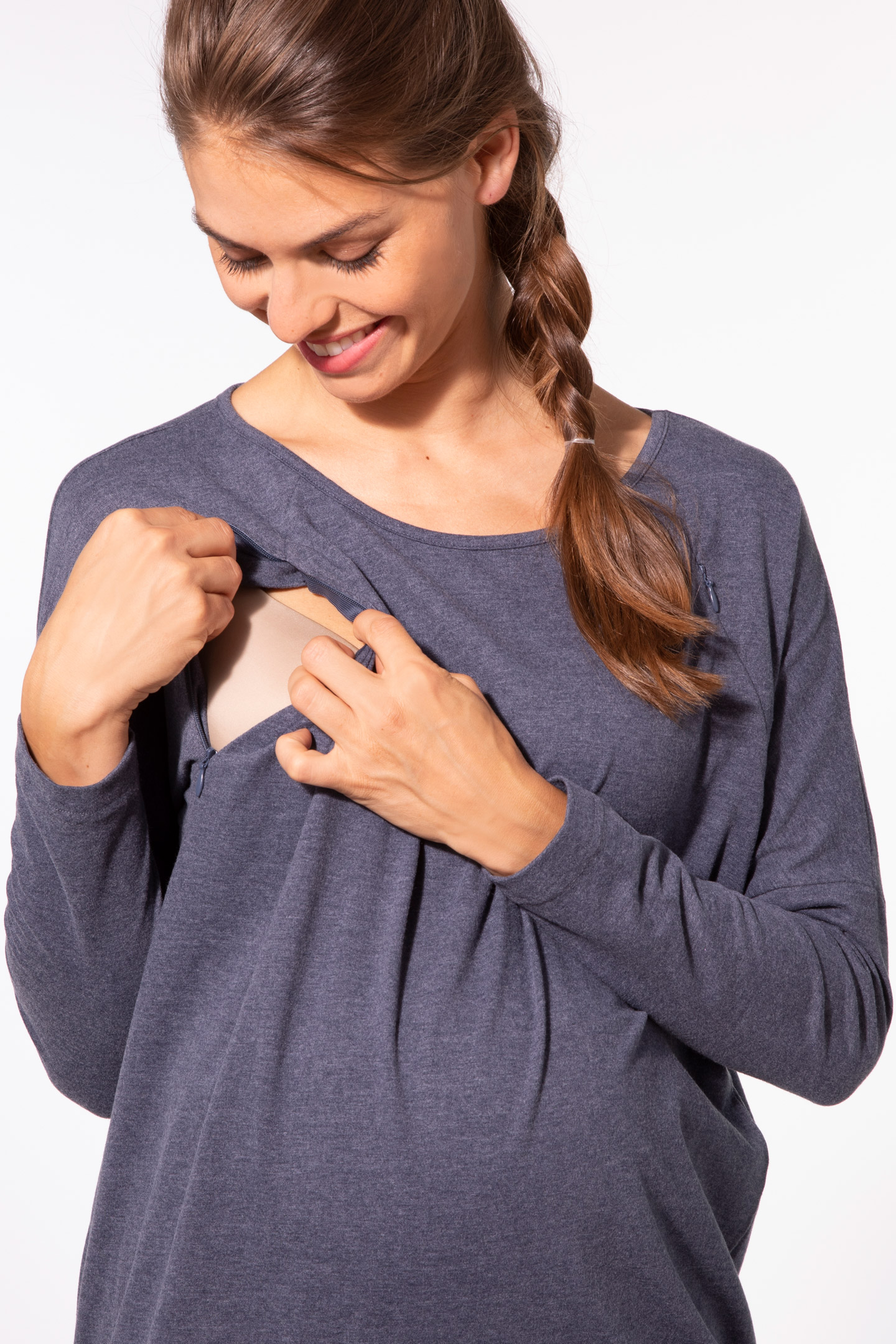Lounge- und Pyjama Umstandsshirt mit Stillöffnung blau melange