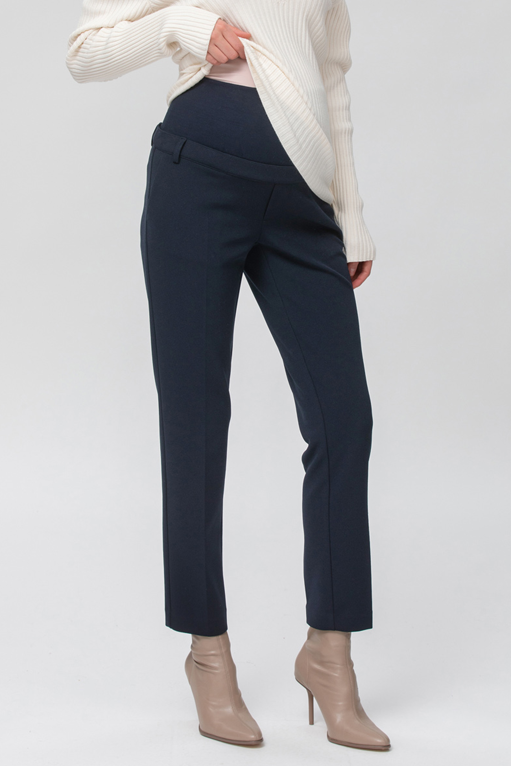 Umstandshose im Business-Look mit schmalem Schnitt, klassischer Bügelfalte und Eingrifftaschen sowie angedeuteten Taschen auf der Rückseite. Dank des elastischen Materials und dem weichen Bauchband kann dein Bauch problemlos darin wachsen und du erhältst den gesamten Tag über die perfekte Unterstützung. Farbe: dunkelblau