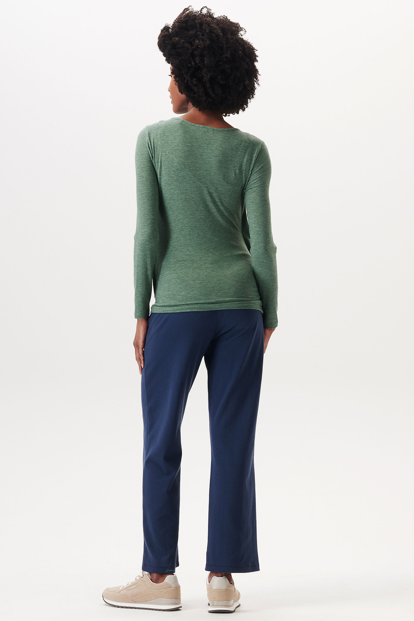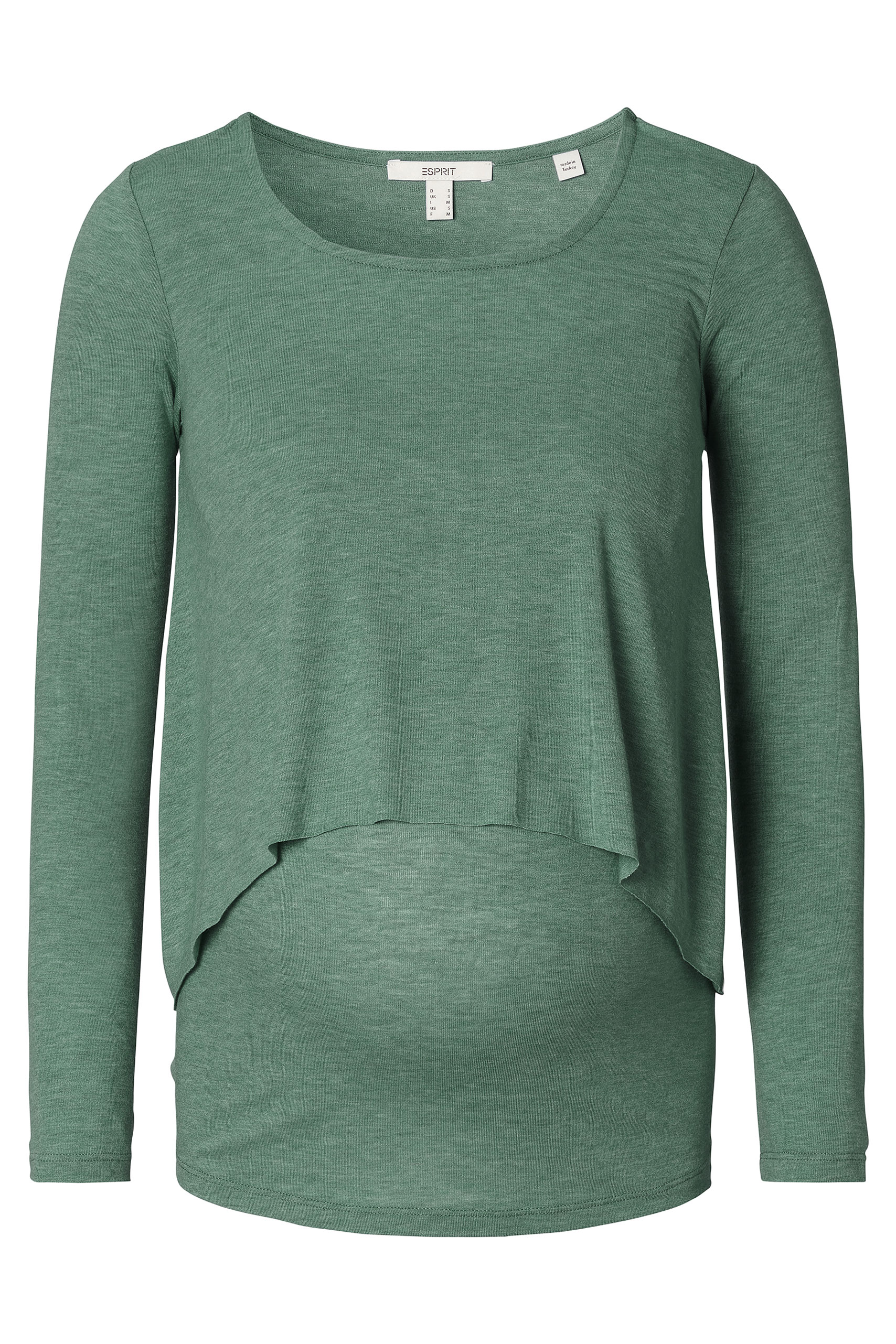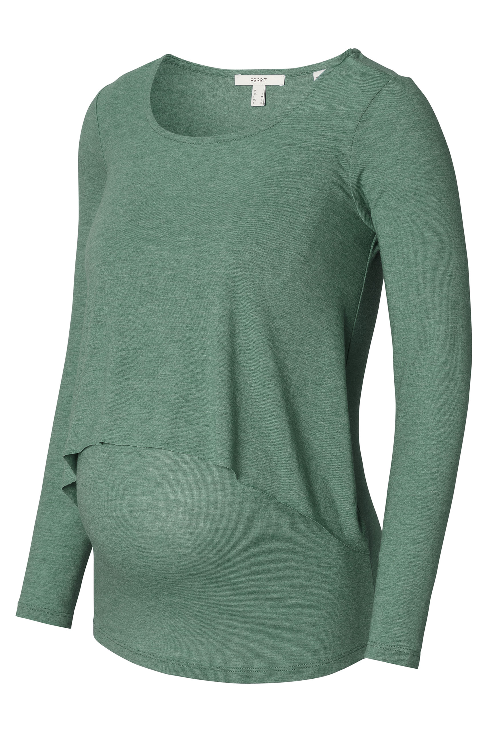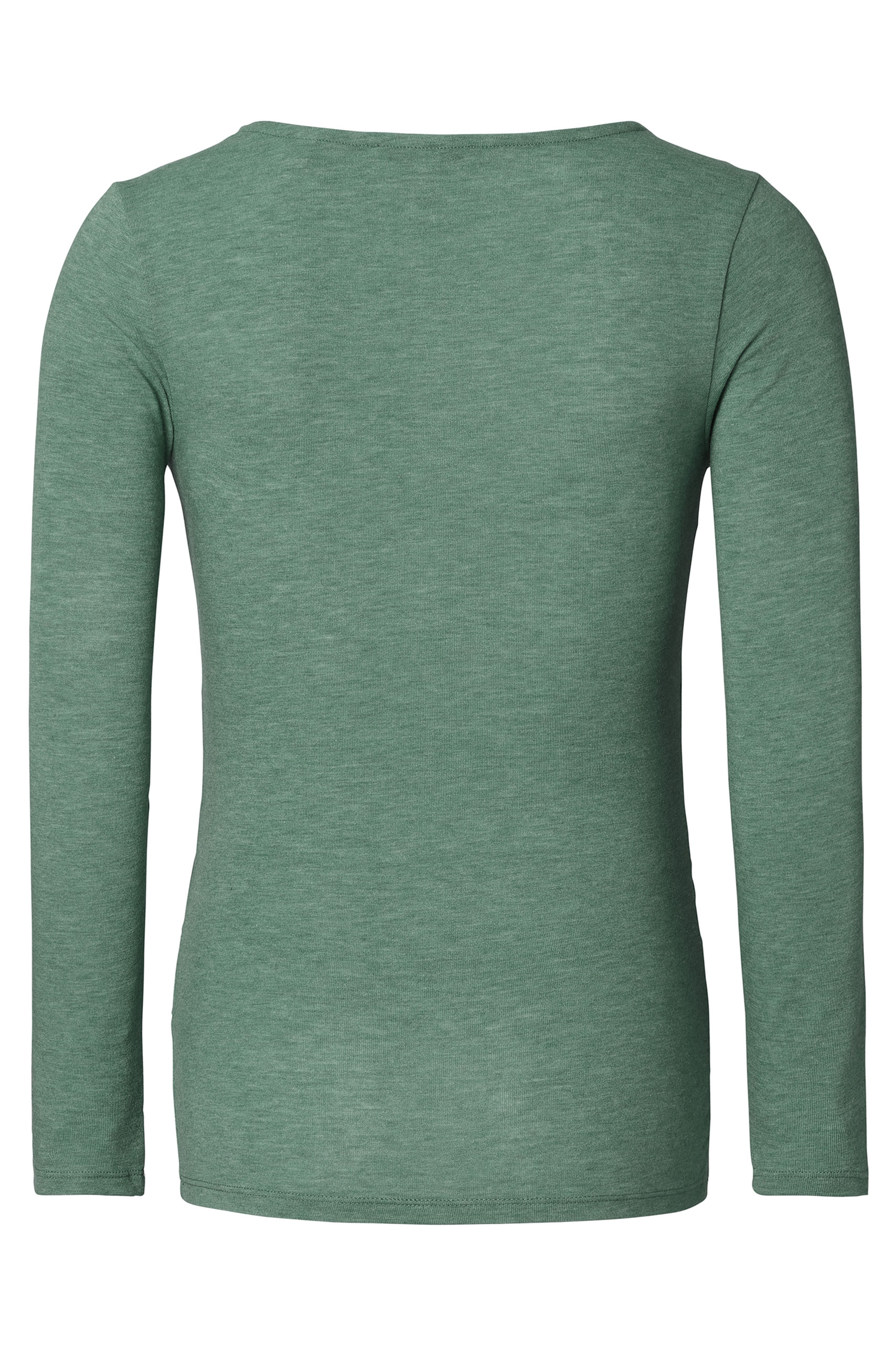 Eco Double Layer Umstands- und Stillshirt aus schönem Melange-Garn aus recyceltem Polyester. Das Shirt eignet sich perfekt für deine casual Looks während der Schwangerschaft und Stillzeit. Nach der Geburt kannst du dein Baby schnell und einfach stillen, indem du die obere Stofflage nach oben schiebst. Farbe: salbei