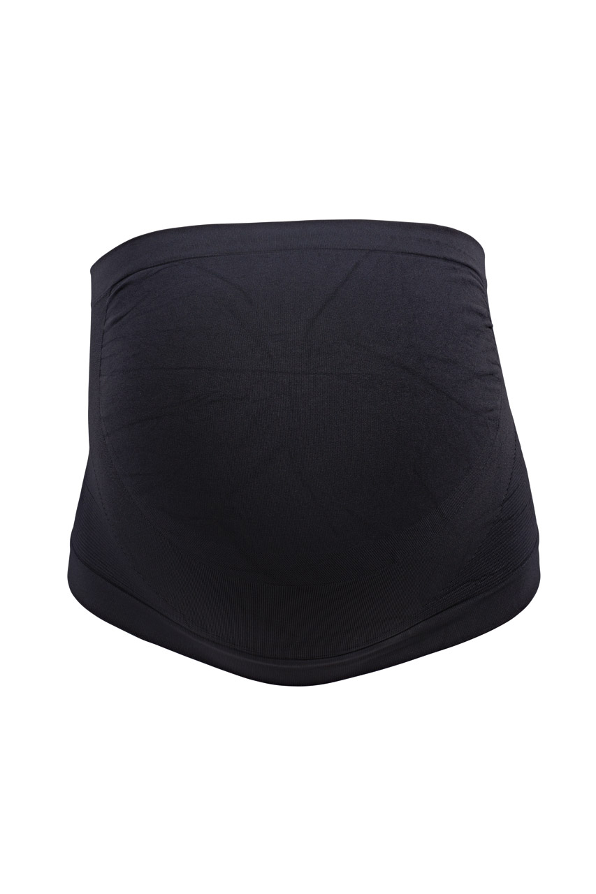 Bauchband ohne störende Nähte aus atmungsaktivem, weichem Material, das mit dem Bauch mitwächst. Verstärkte Einsätze am unteren Rücken und dem Unterbauch unterstützt und entlastet diese Bereiche gezielt. Farbe: schwarz